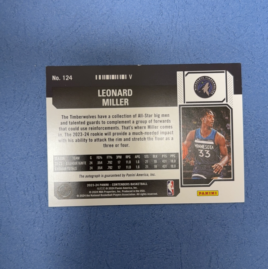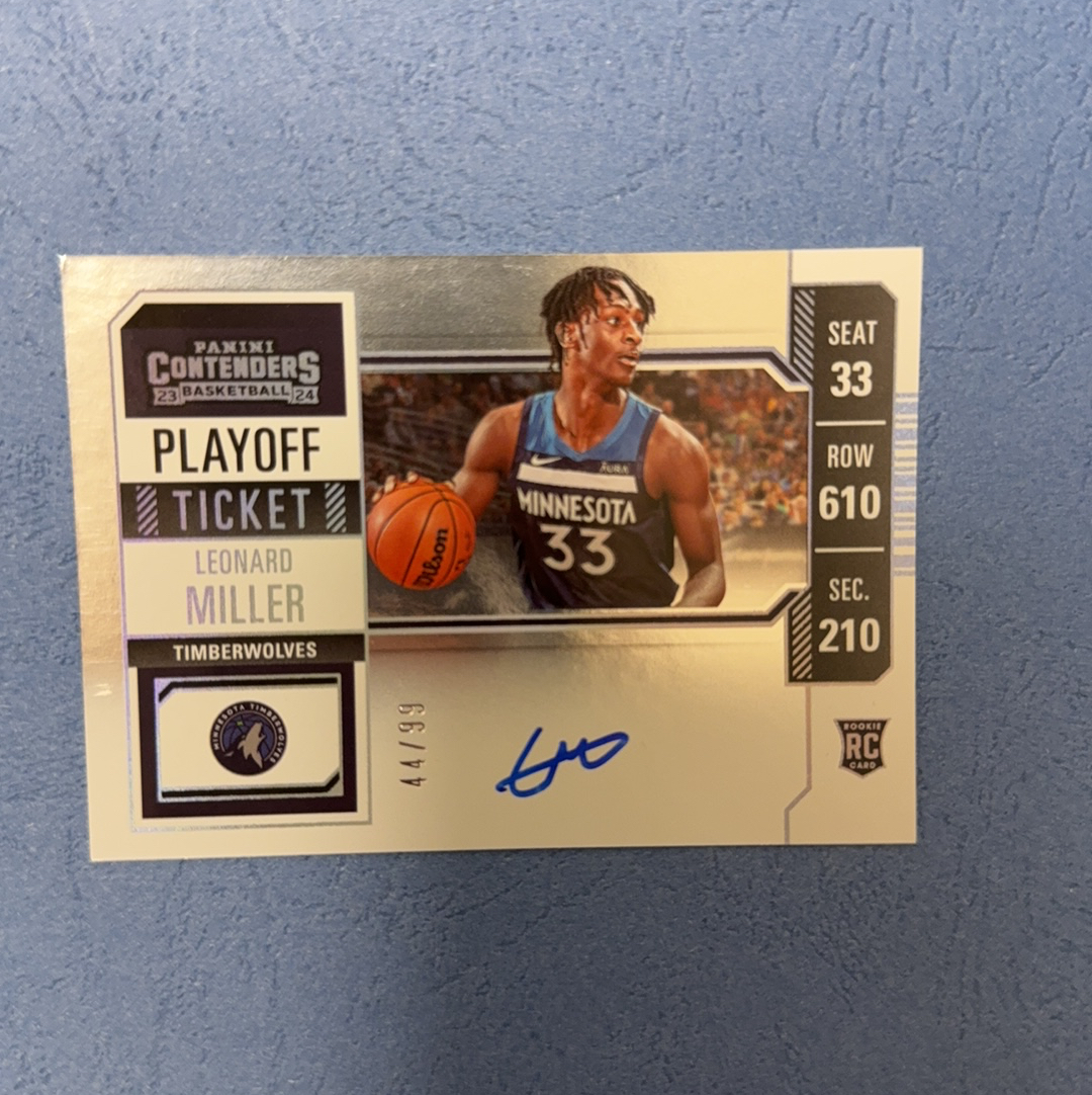 2023-24 Panini Contenders Leonard Miller RC 球票系列 新秀RC 伦纳德 米勒 森林狼 卡签 签字 新秀签 变化版 99编