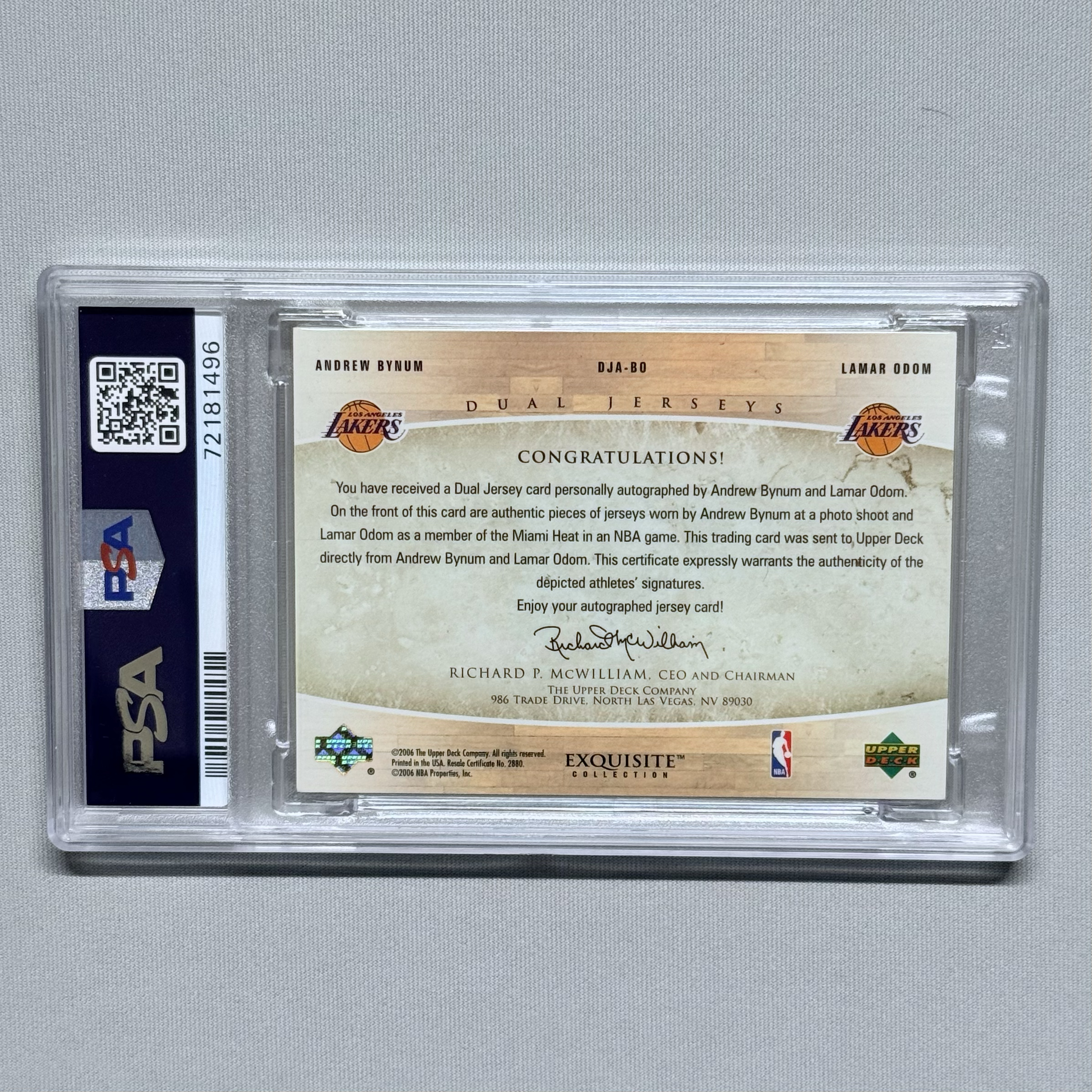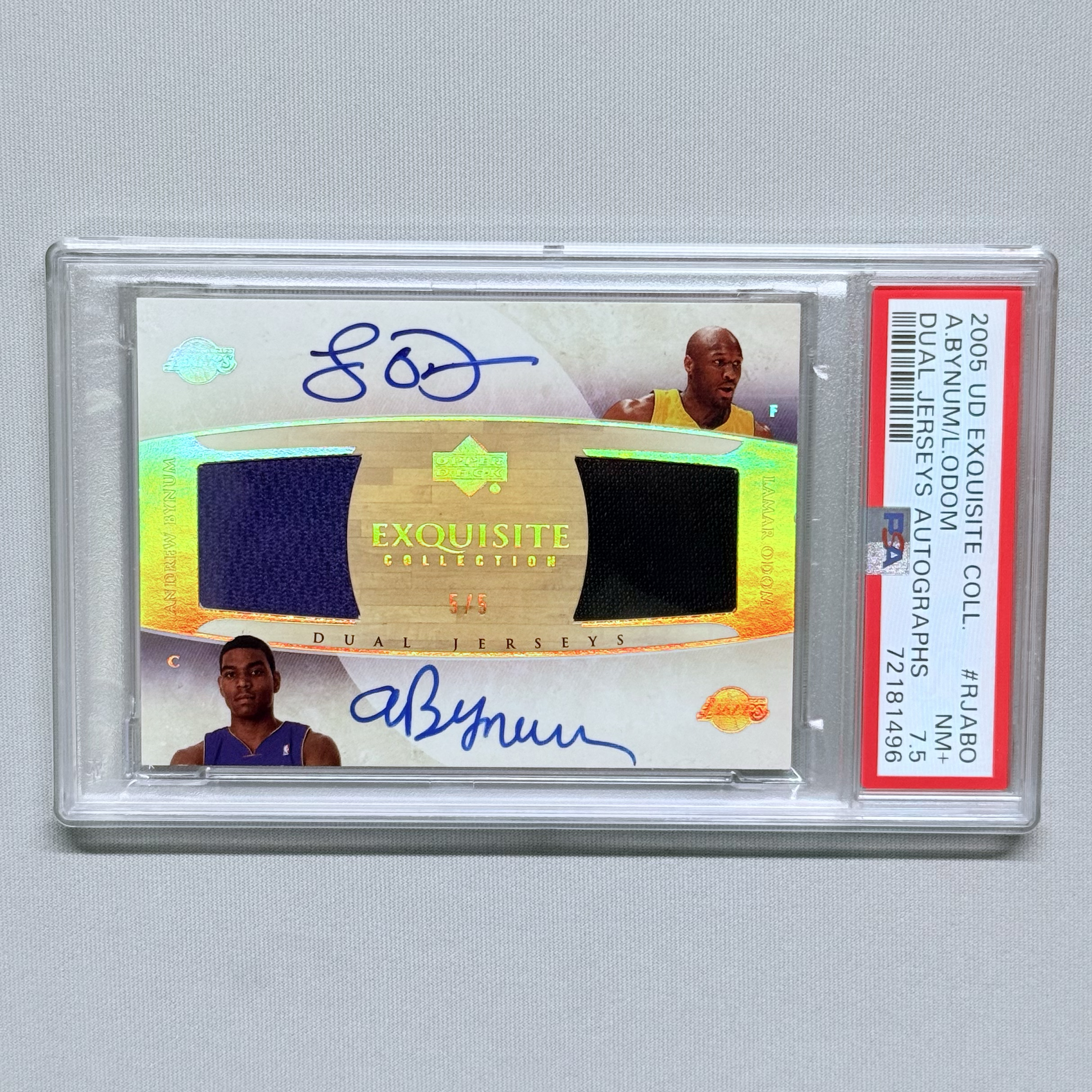 2005-06 Upper Deck Exquisite Lamar Odom RC 奥多姆 拜纳姆 新秀RC 湖人 木盒 双球衣签字 卡签 5/5尾编超低编 超闪 可遇不可求 PSA7.5 科比队友