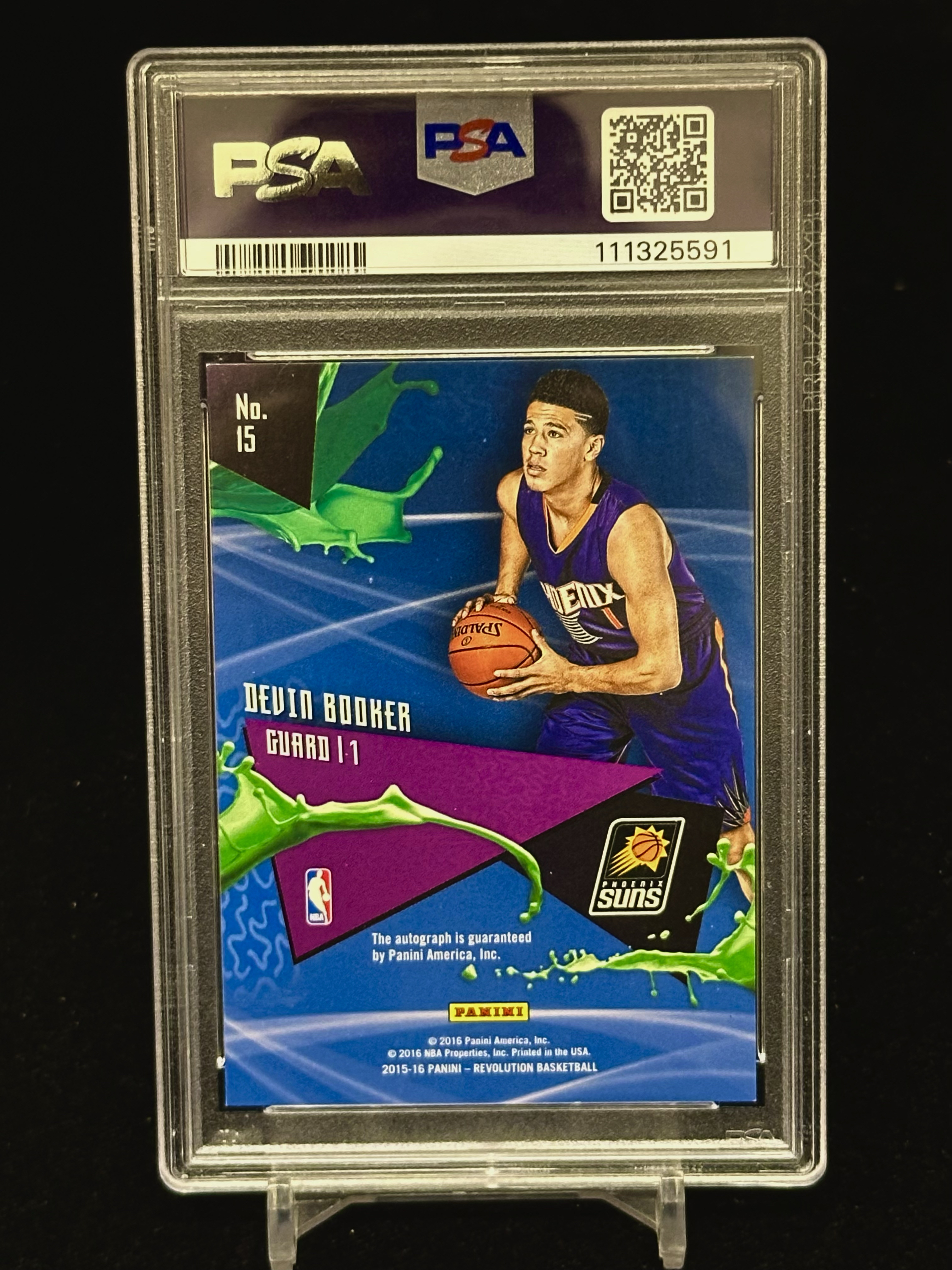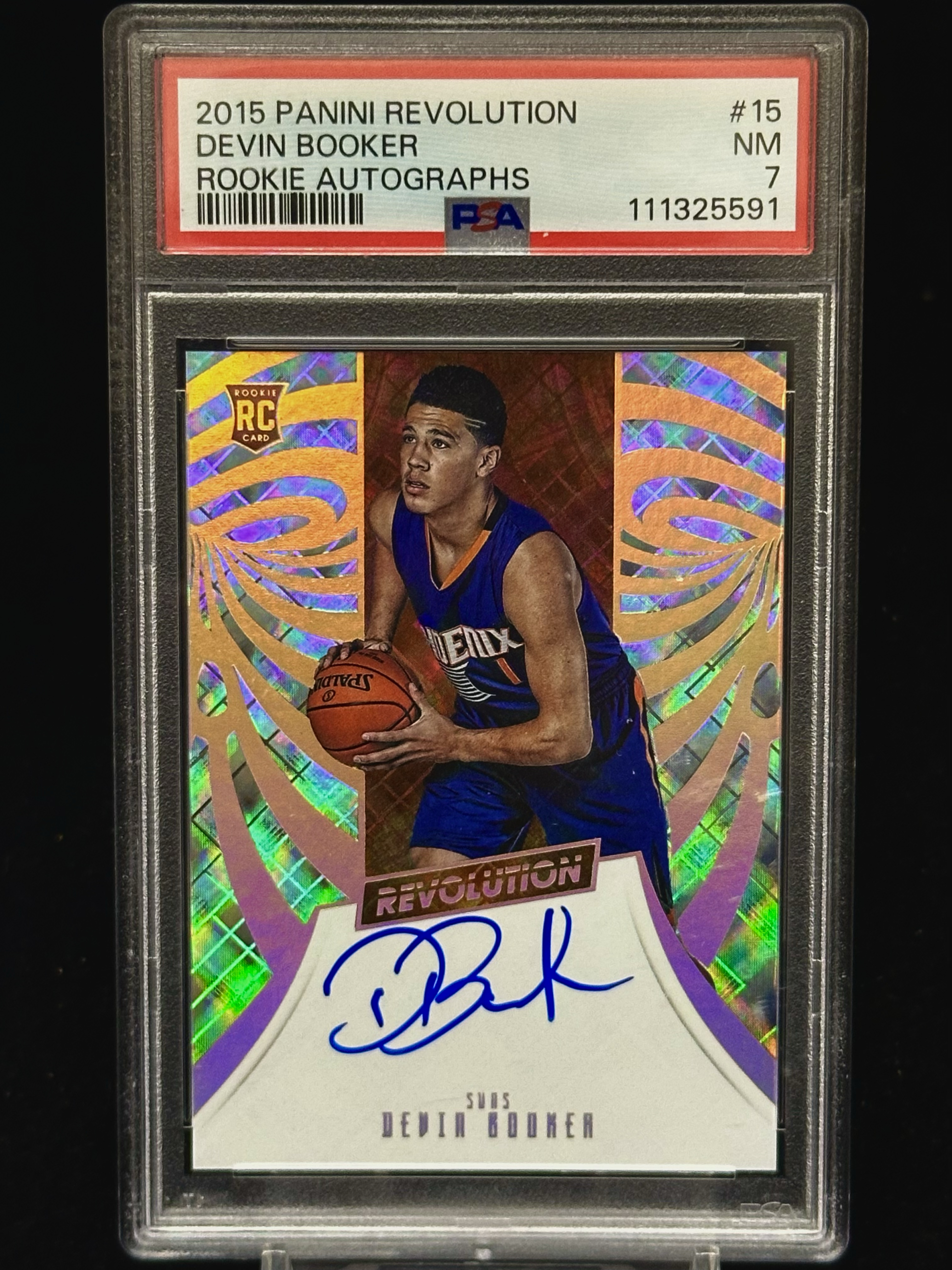 2015-16 revolution 革命元年 太阳超巨新秀 科比门徒 太阳神 德文布克 devin booker 正新秀RC签字 金折射卡签 一箱只有两张签字的系列 psa评级卡詹姆斯库里美国队先发