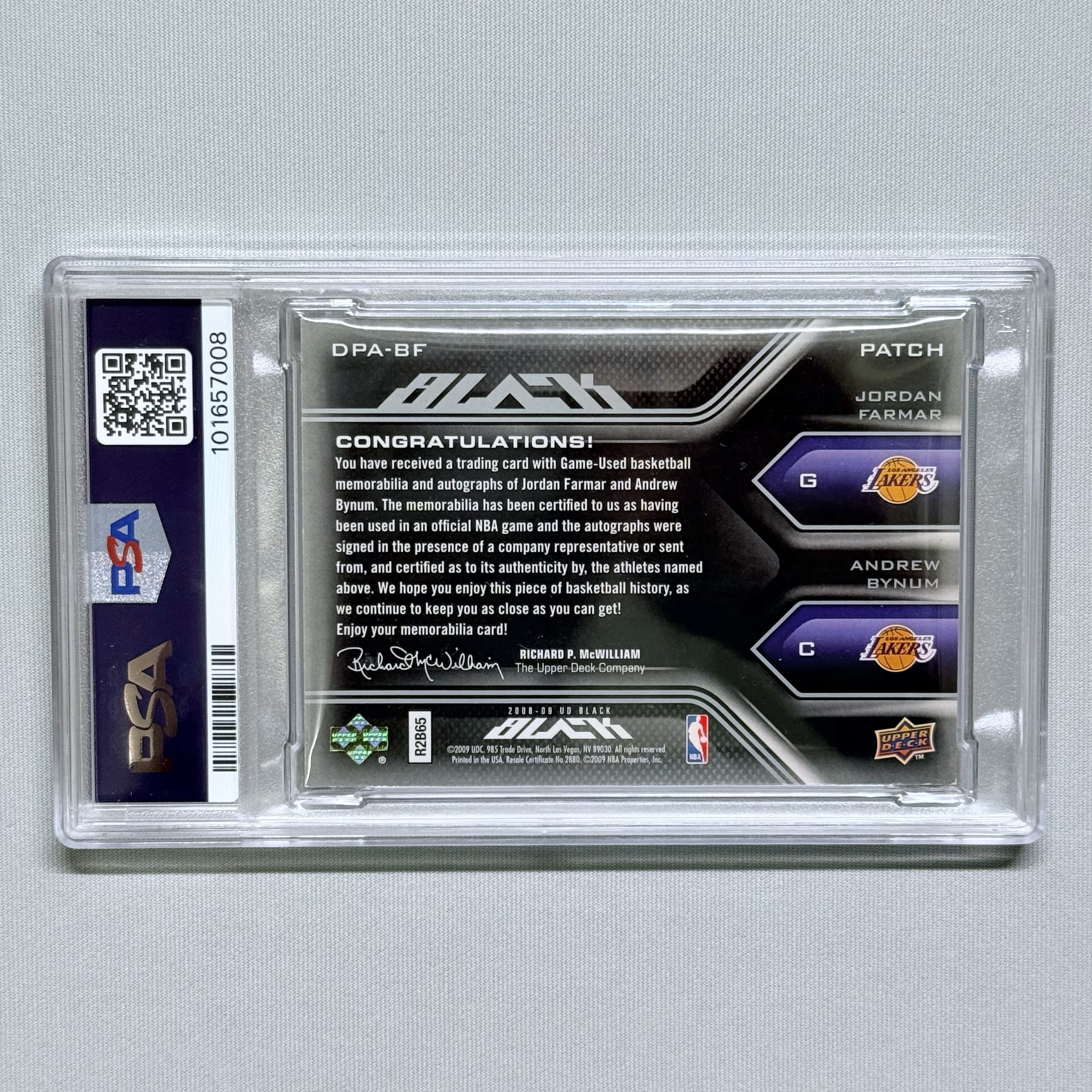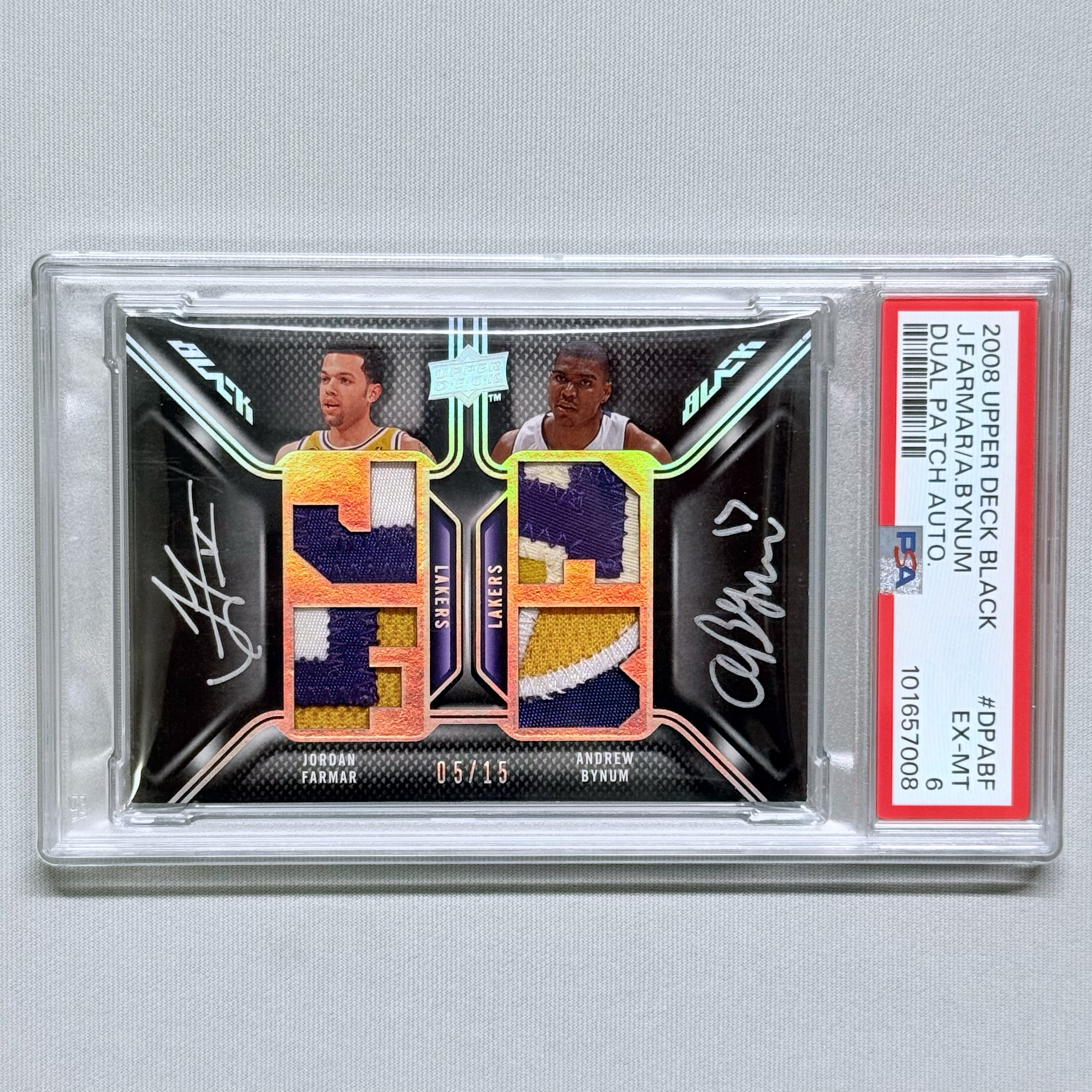 2008 Upper Deck Exquisite J.FARMAR/A.BYNUM 法玛尔 拜纳姆 湖人 UD Black双人Patch卡签 签字 切割超级暴力墨迹好15编 极少见PSA6 科比队友