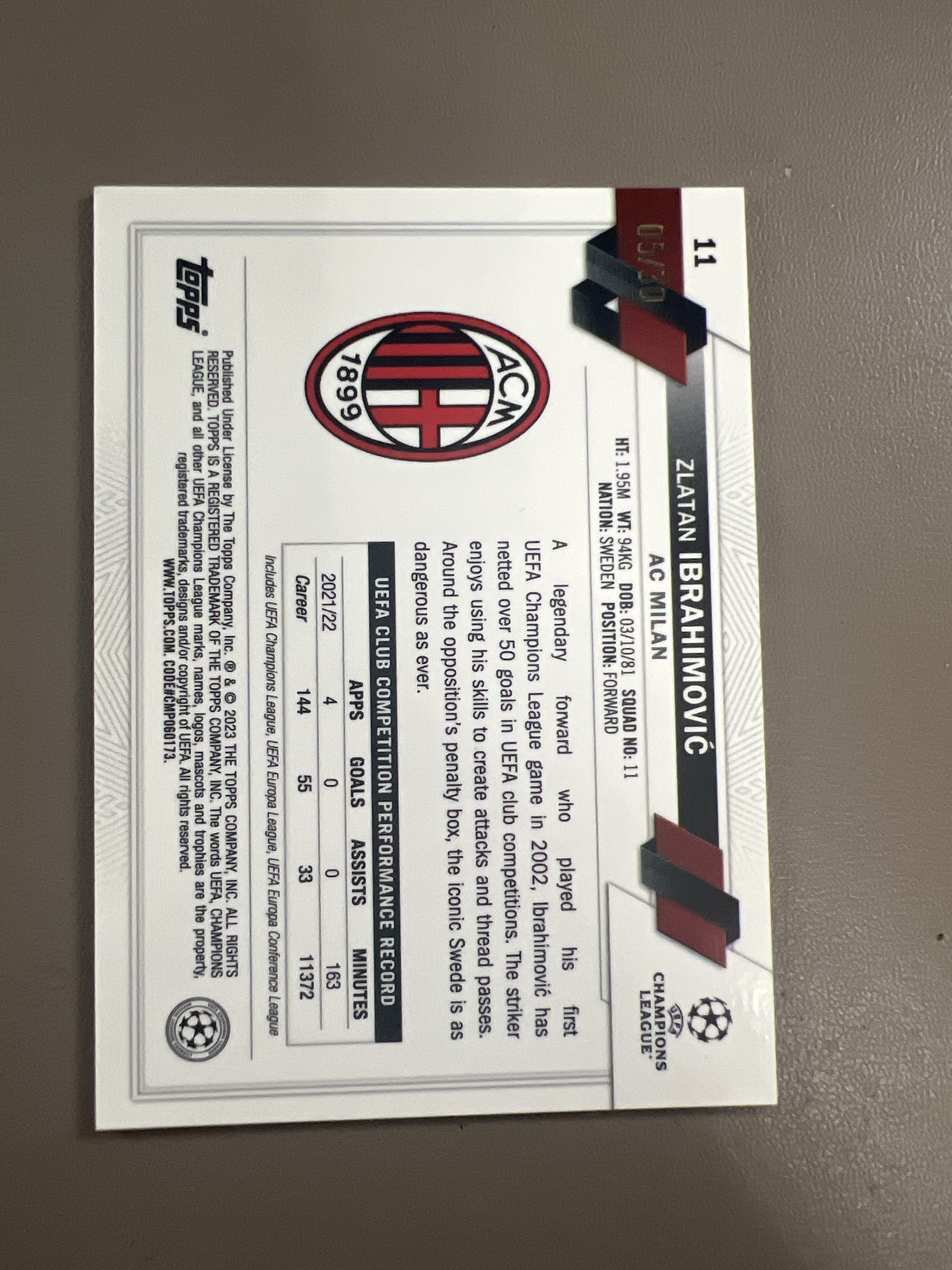 2022-23 Topps Chrome Zlatan Ibrahimovic 伊布拉希莫维奇 伊布 黑地震 特卡 大比例 折射 地震特卡 黑折 低编 05/30编 欧战 欧冠 米兰 巴萨 爆爆康6