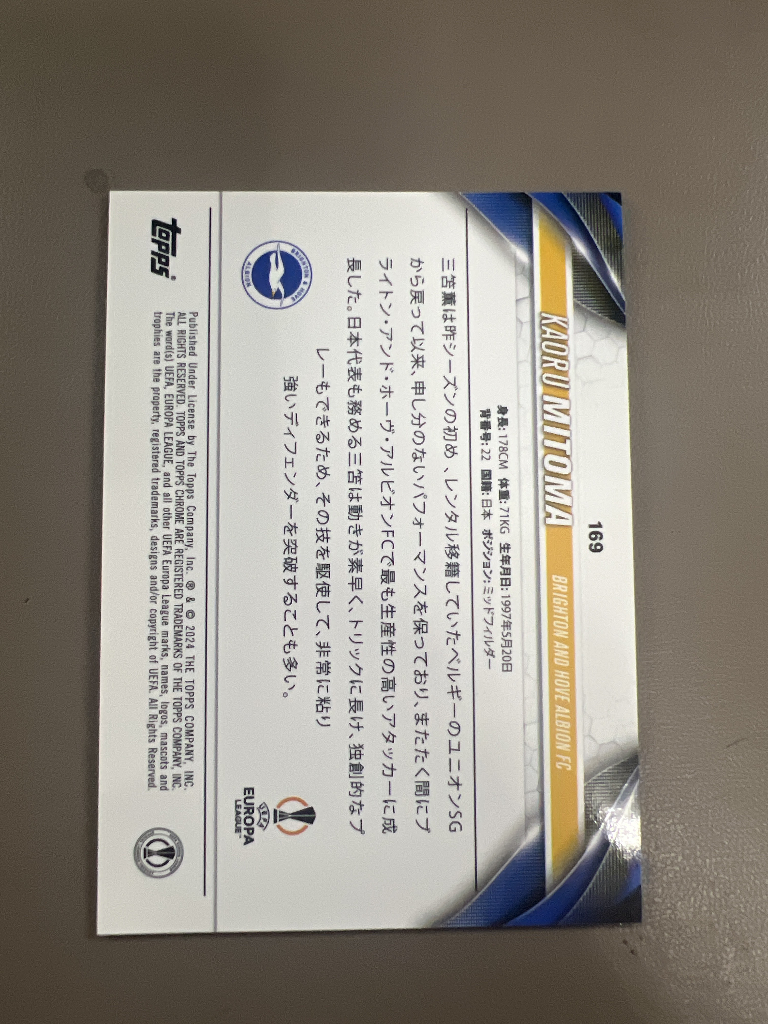 2023-24 Topps Chrome Kaoru Mitoma 三苫薰 欧战 金折 低编 02/50编 樱花 布莱顿 海鸥 日本 小日子 爆爆康7