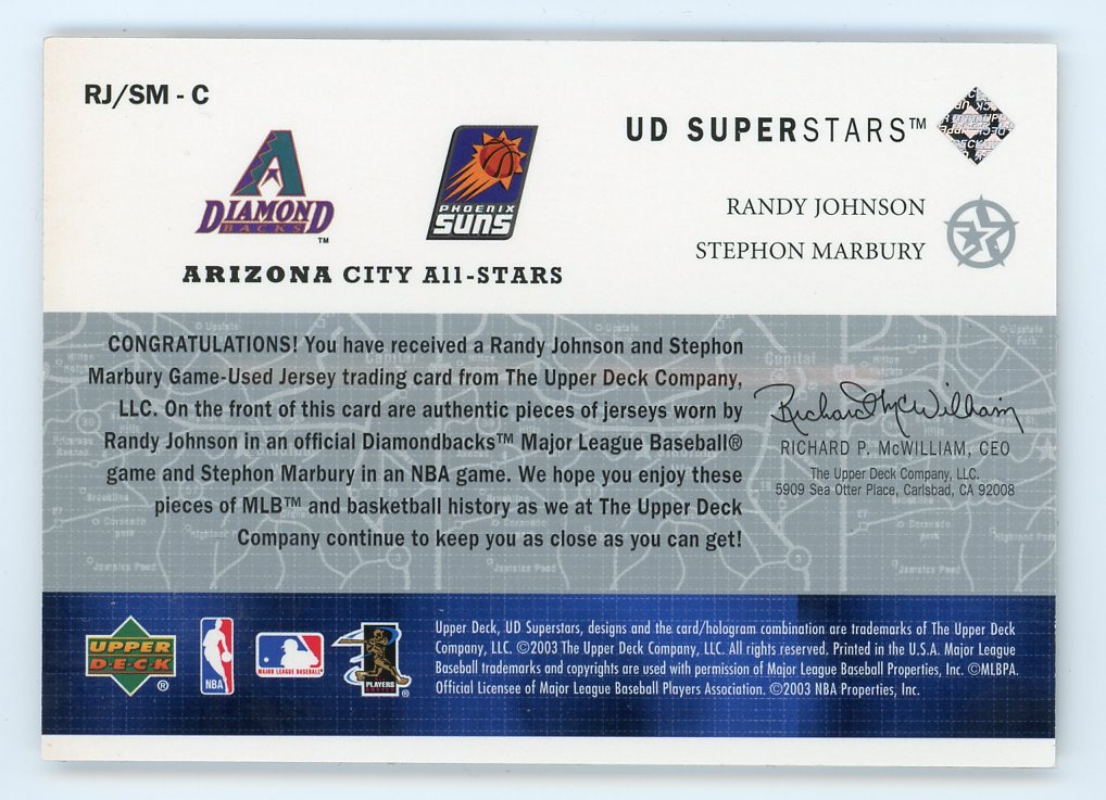 2003 Upper Deck Superstars Randy Johnson/Stephon Marbury City ALL-Stars Dual Jersey