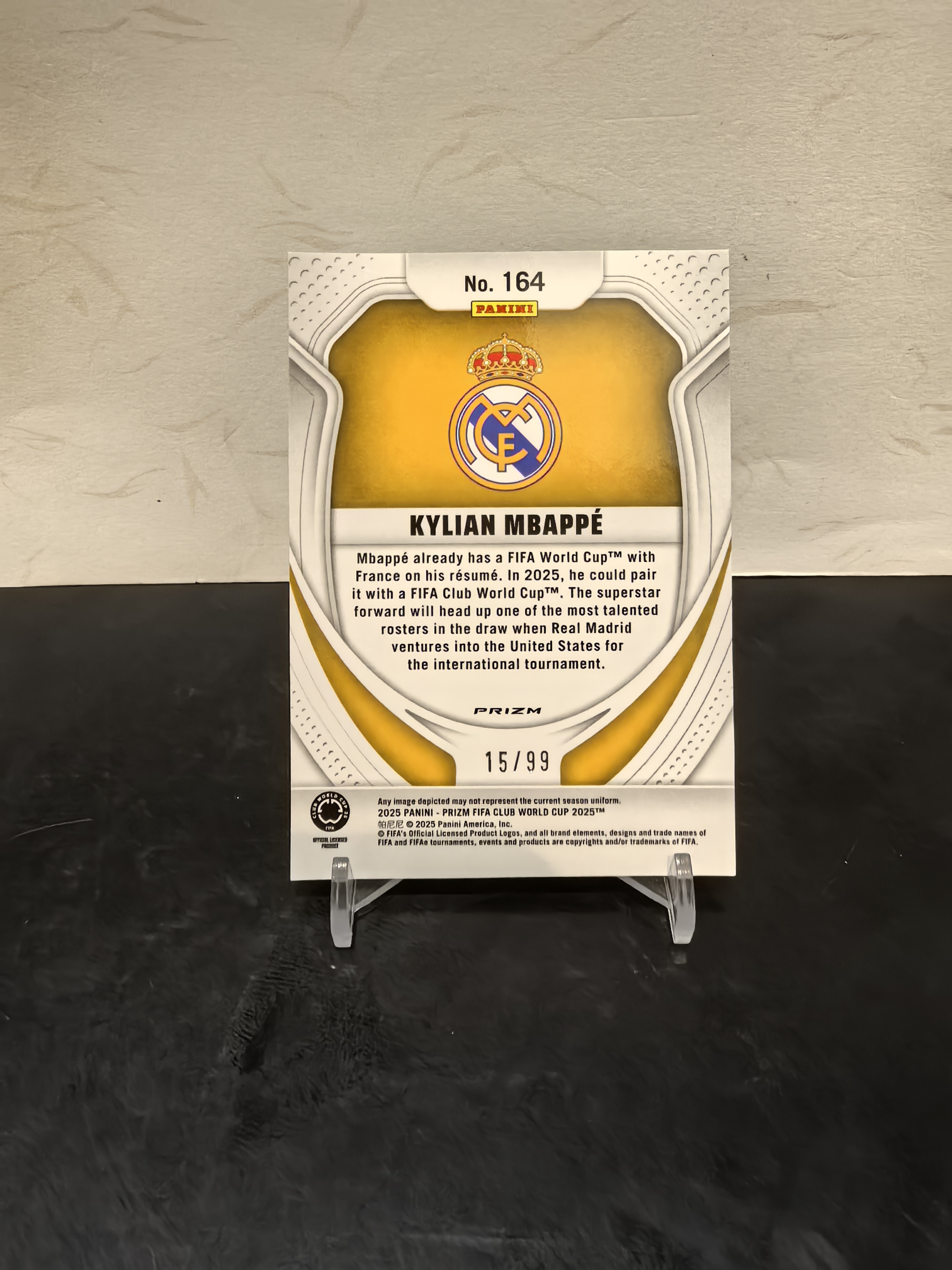 2025 Panini Prizm 元年世俱杯 Kylian Mbappe 皇马 皇家马德里 法国 大巴黎 基利安 姆巴佩 青绿折 15/99编 base 卡品如图 印刷线