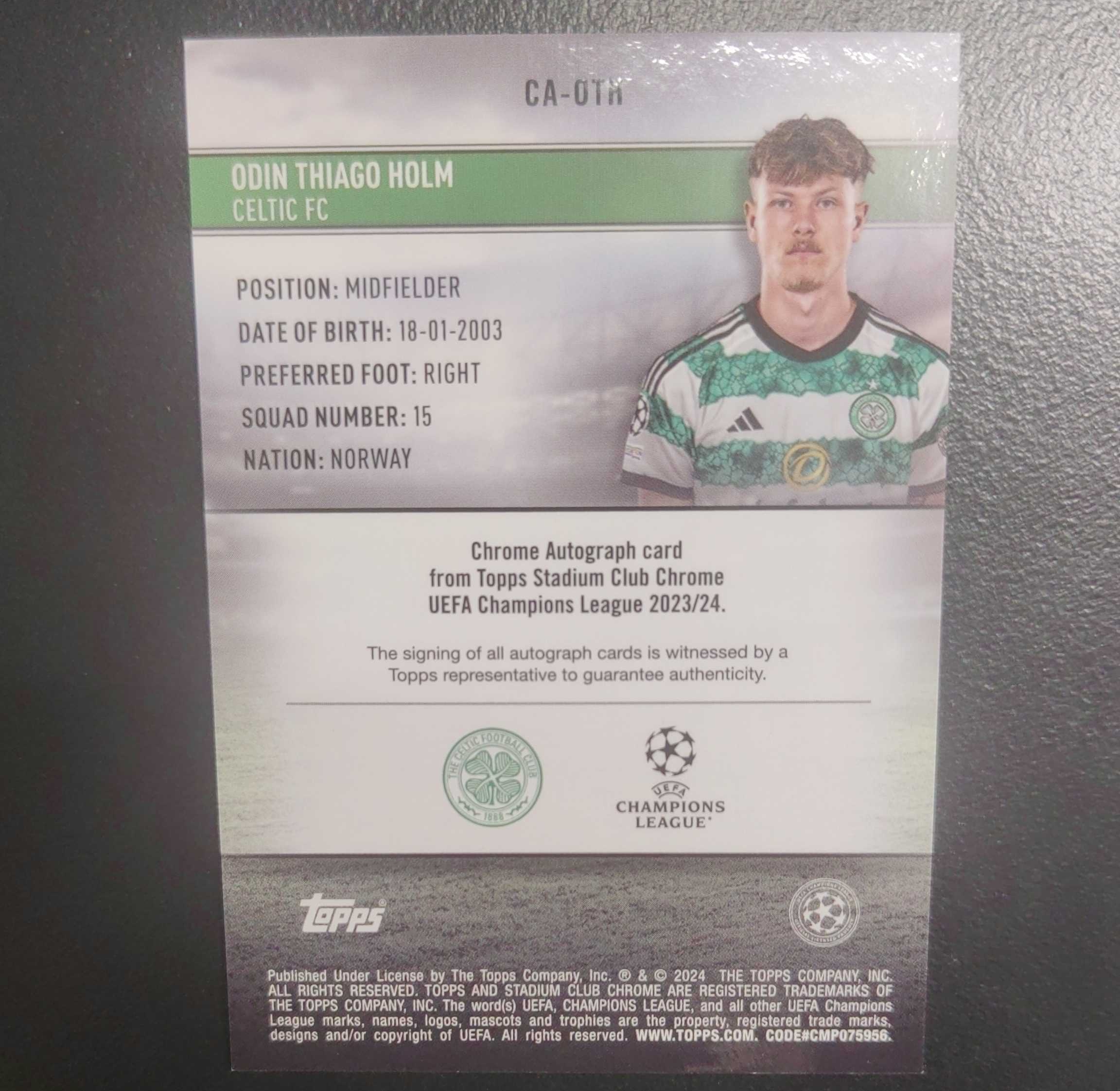 2024 Topps Stadium Club Chrome Odin Thiago Holn RC 竞技场 欧战 Holm霍尔姆 RC新秀 凯尔特人 挪威 签字完美签 银折 卡品如图