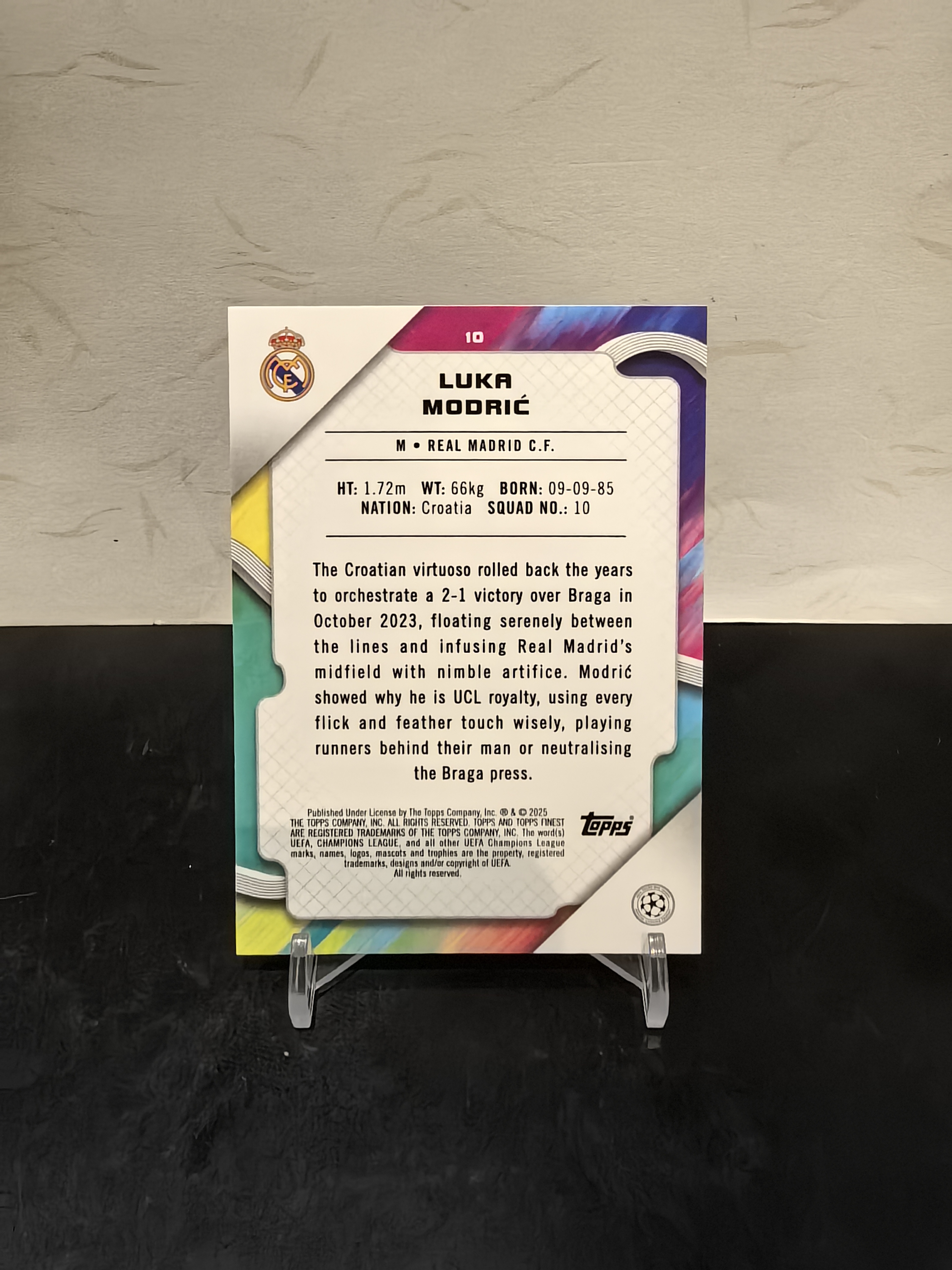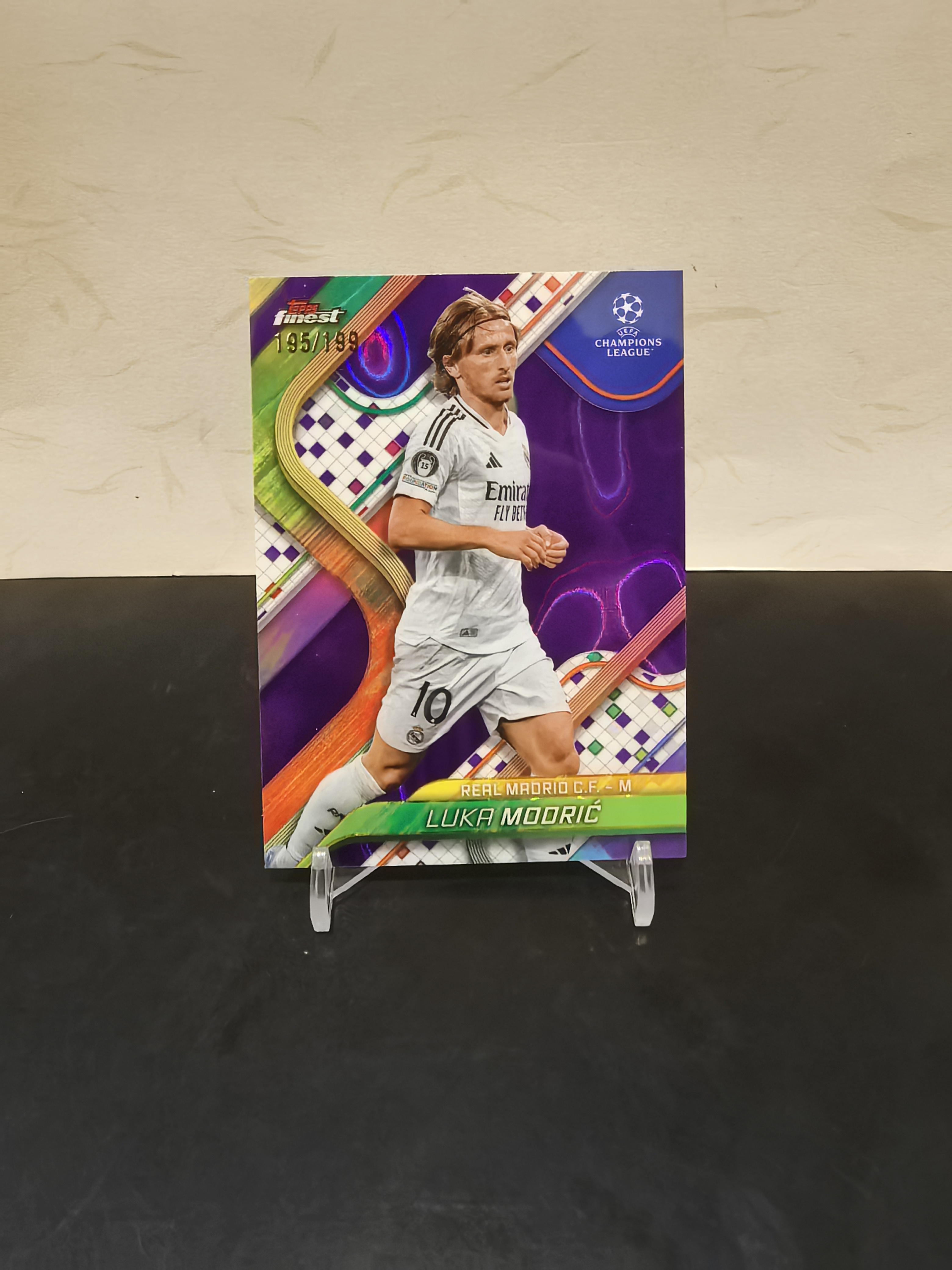 2025 Topps Finest Luka Modric 欧冠 克罗地亚 莫德里奇 皇马 皇家马德里 魔笛 195/199编 紫熔岩折 ac米兰 base 卡品如图 印刷线