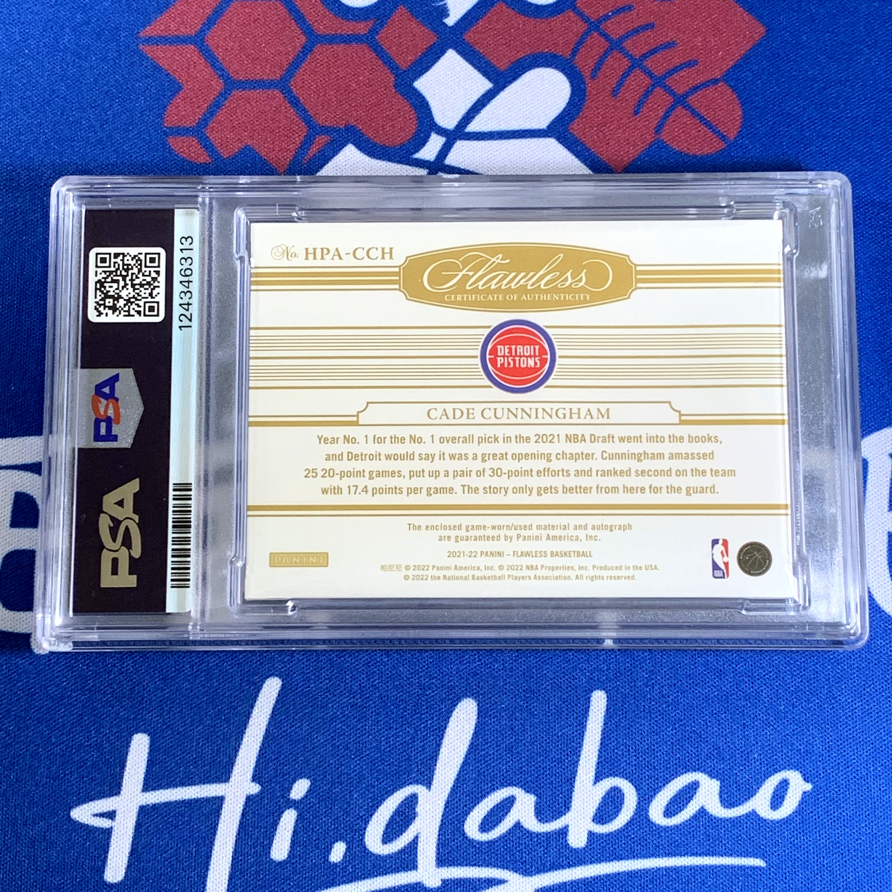 2021-22 Panini Flawless Cade Cunningham RC 【海宝】手提 活塞 新秀RC 坎宁安 CC 康宁汉姆 10编 金版 金折 HPA 暴力RPA卡签 签字PSA10分