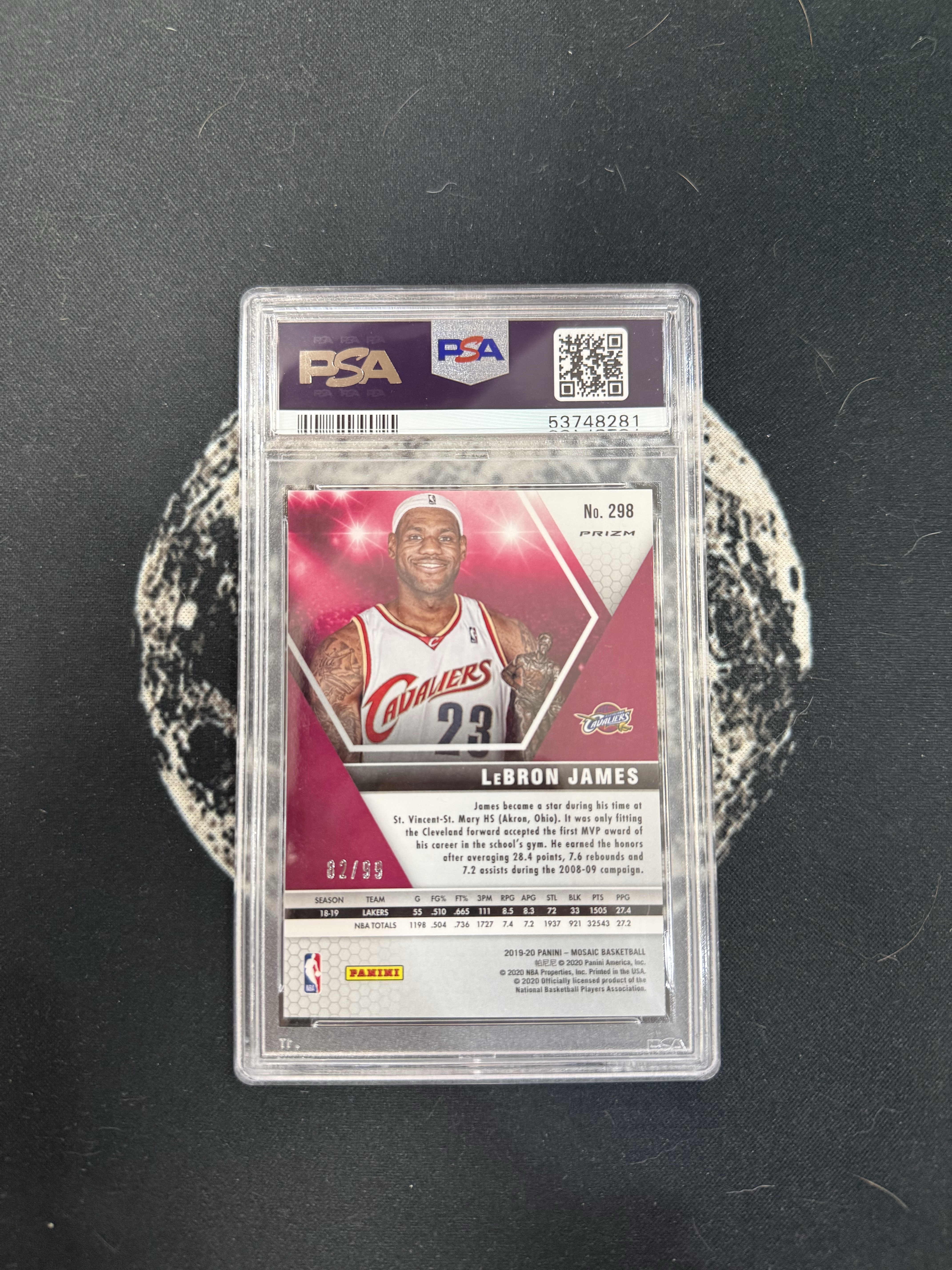 2019 Panini Mosaic LeBron James 元年 篮球 马赛克 骑士 热火 湖人 小皇帝 勒布朗 詹姆斯 MVP 特卡 奖杯 蓝折 折射 psa9 POP12