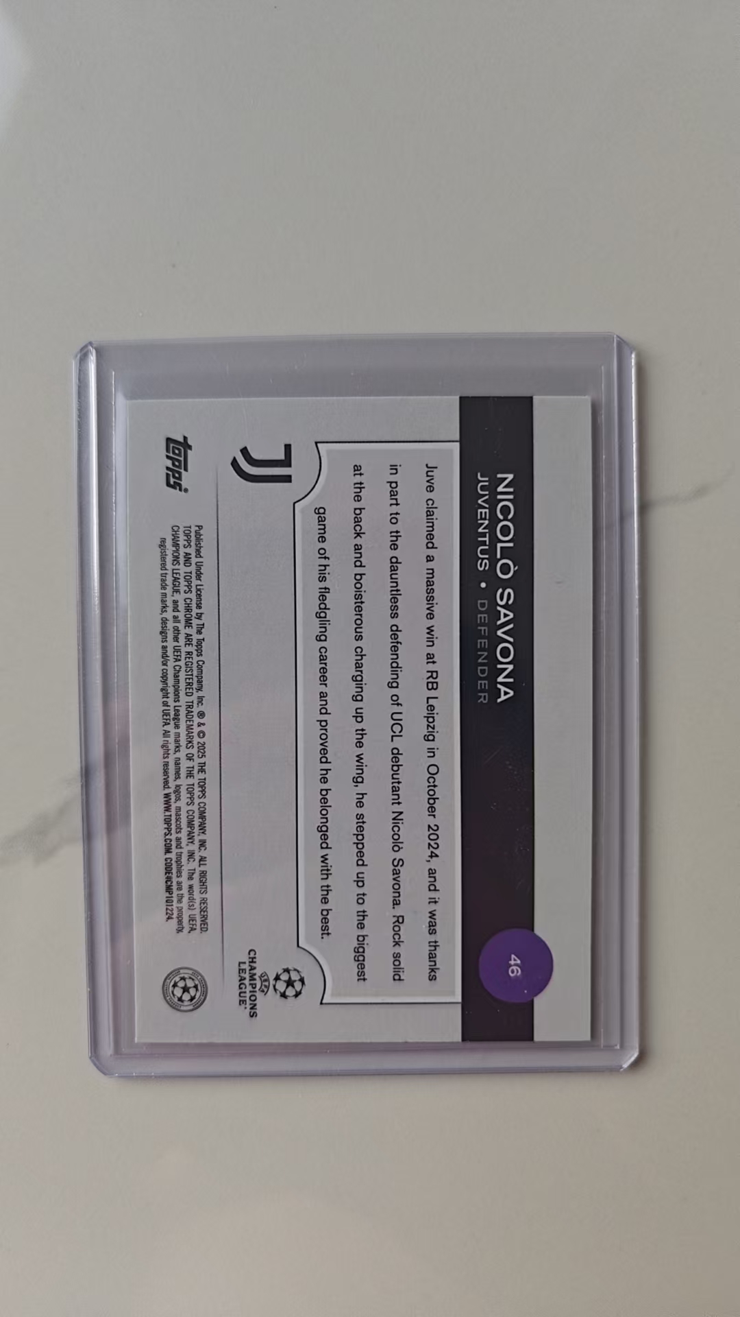 2024-25 Topps Chrome Nicolo Savona RC 尼科洛·萨沃纳 尤文图斯 意大利 新秀 285/299 紫罗兰折 欧战TC正系列 诺丁汉森林