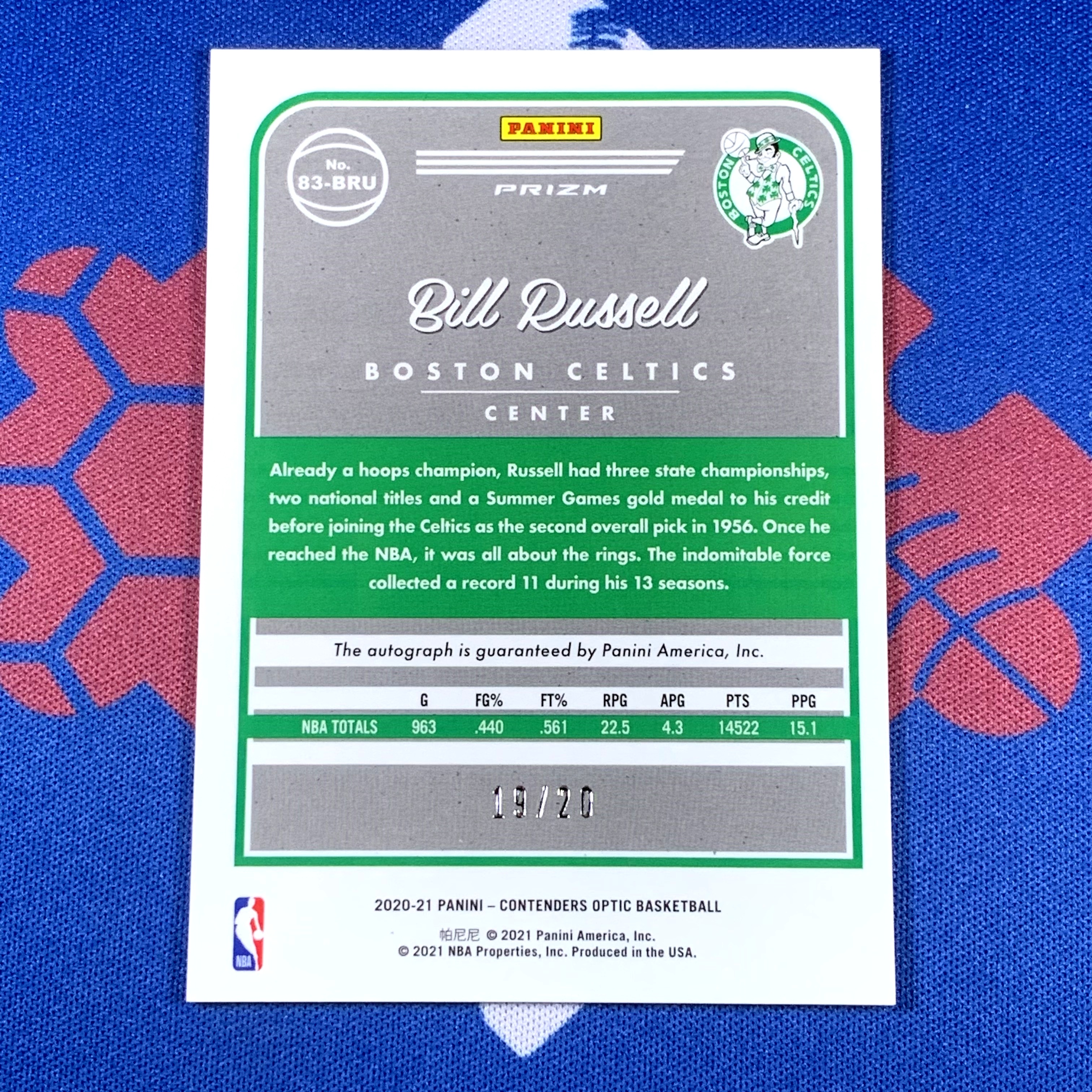 2020-21 Panini Contenders Optic Bill Russell 【海宝】球票op 凯尔特人 指环王 比尔拉塞尔 20编 蓝折 复古签字卡 卡签 轻印 凑套 收藏必备【Y1】
