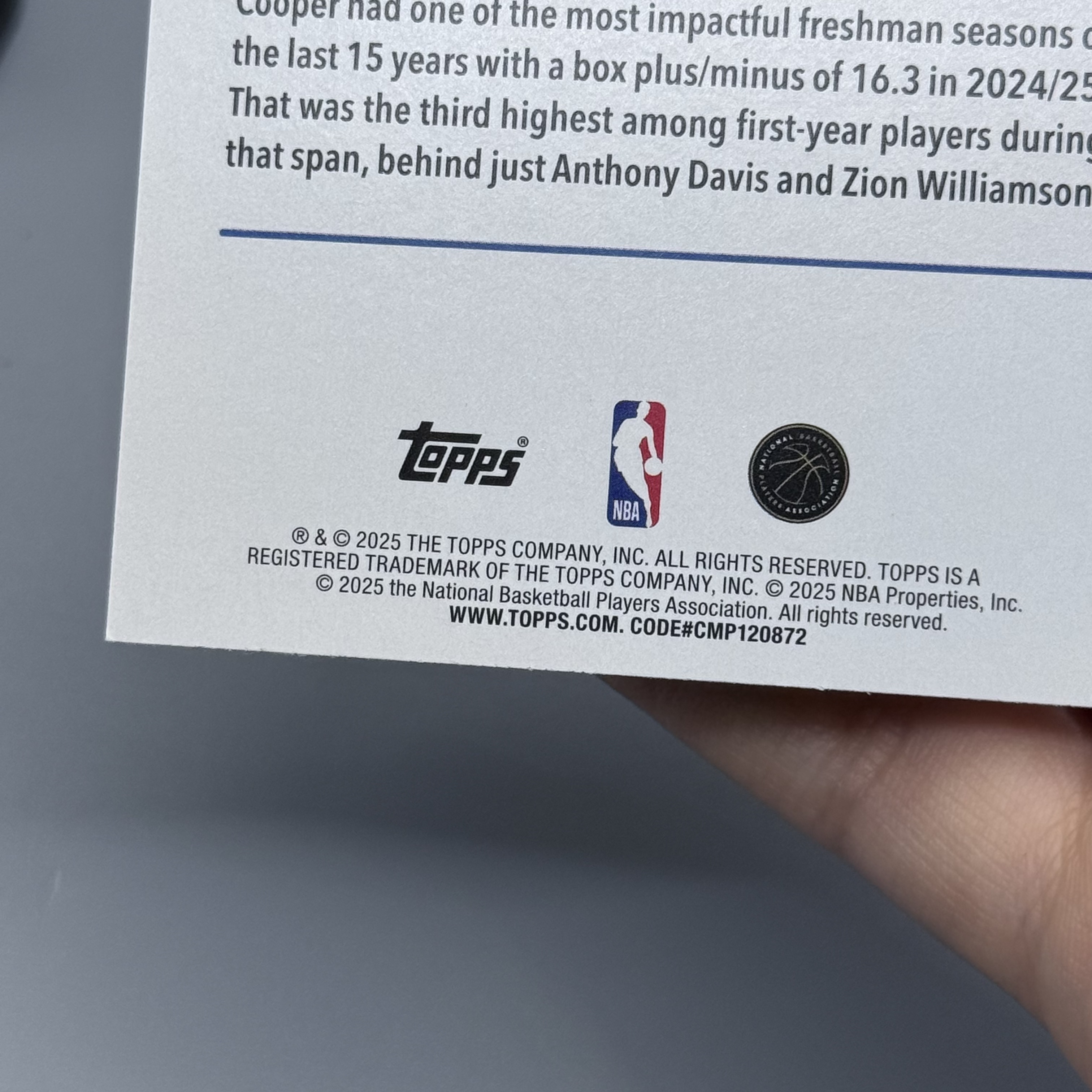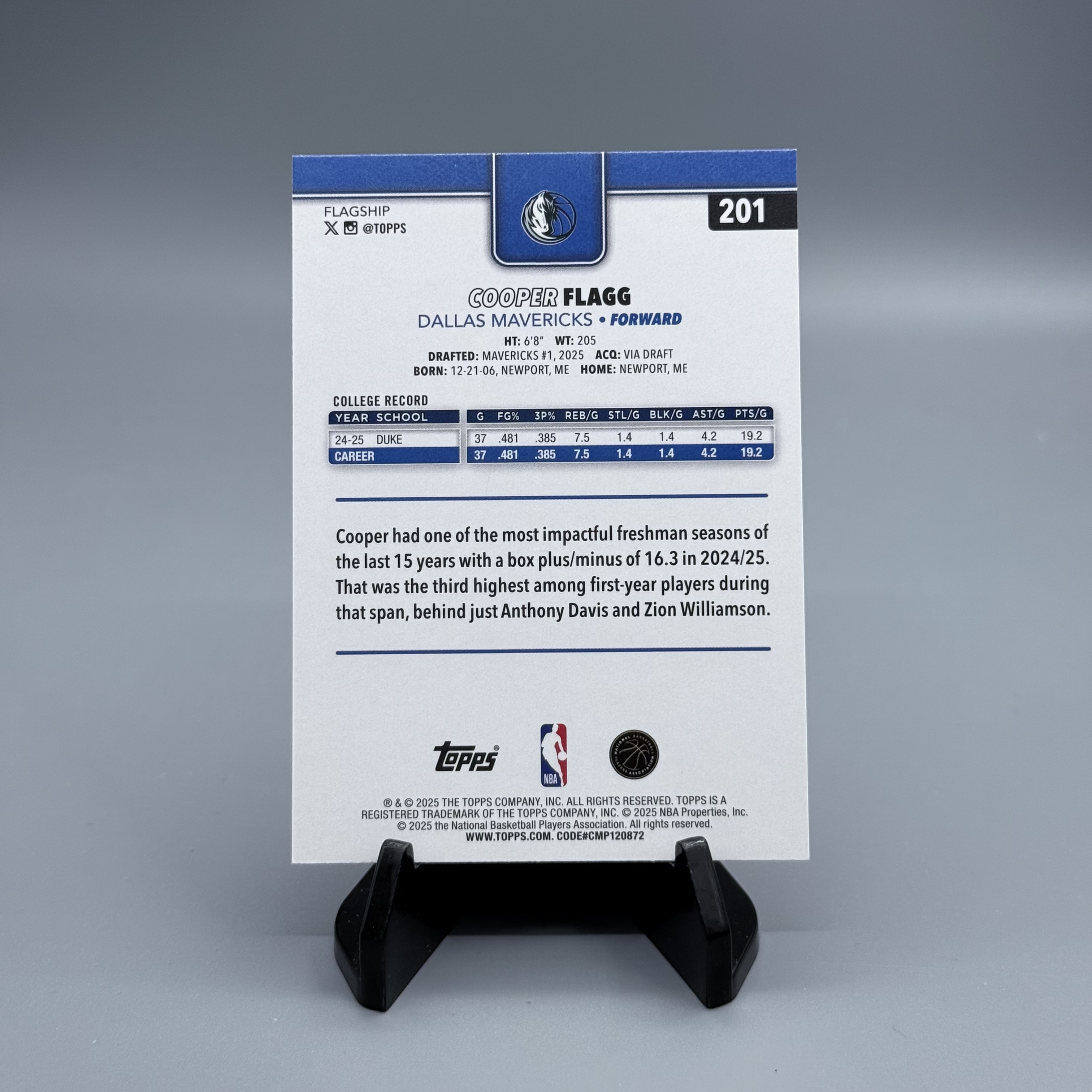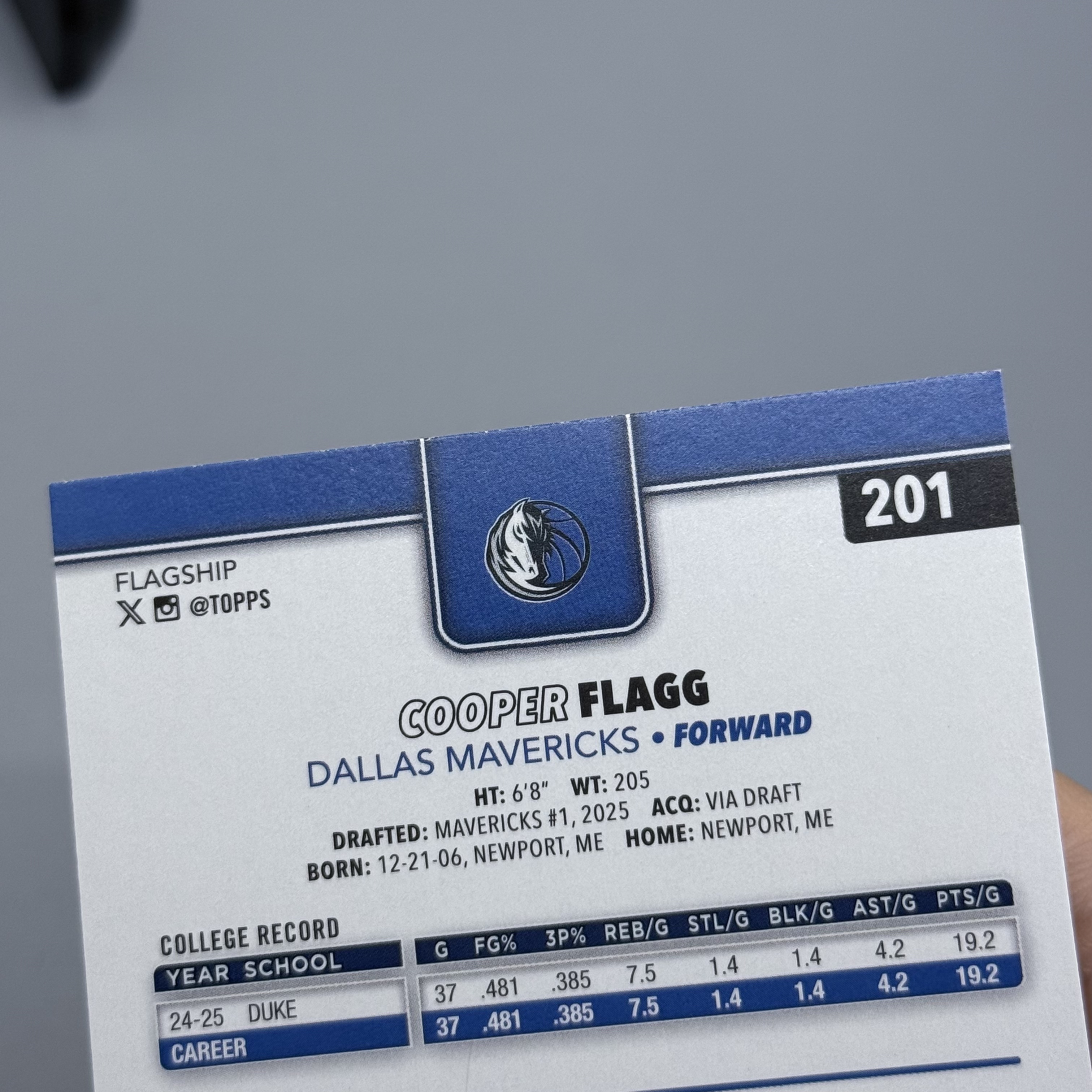 【UD拍卖-2482杨】2025-26 Topps NBA Cooper Flagg 库珀 弗拉格 独行侠 新秀 RC 状元 正Base #1 收藏必备 微瑕 卡品如图