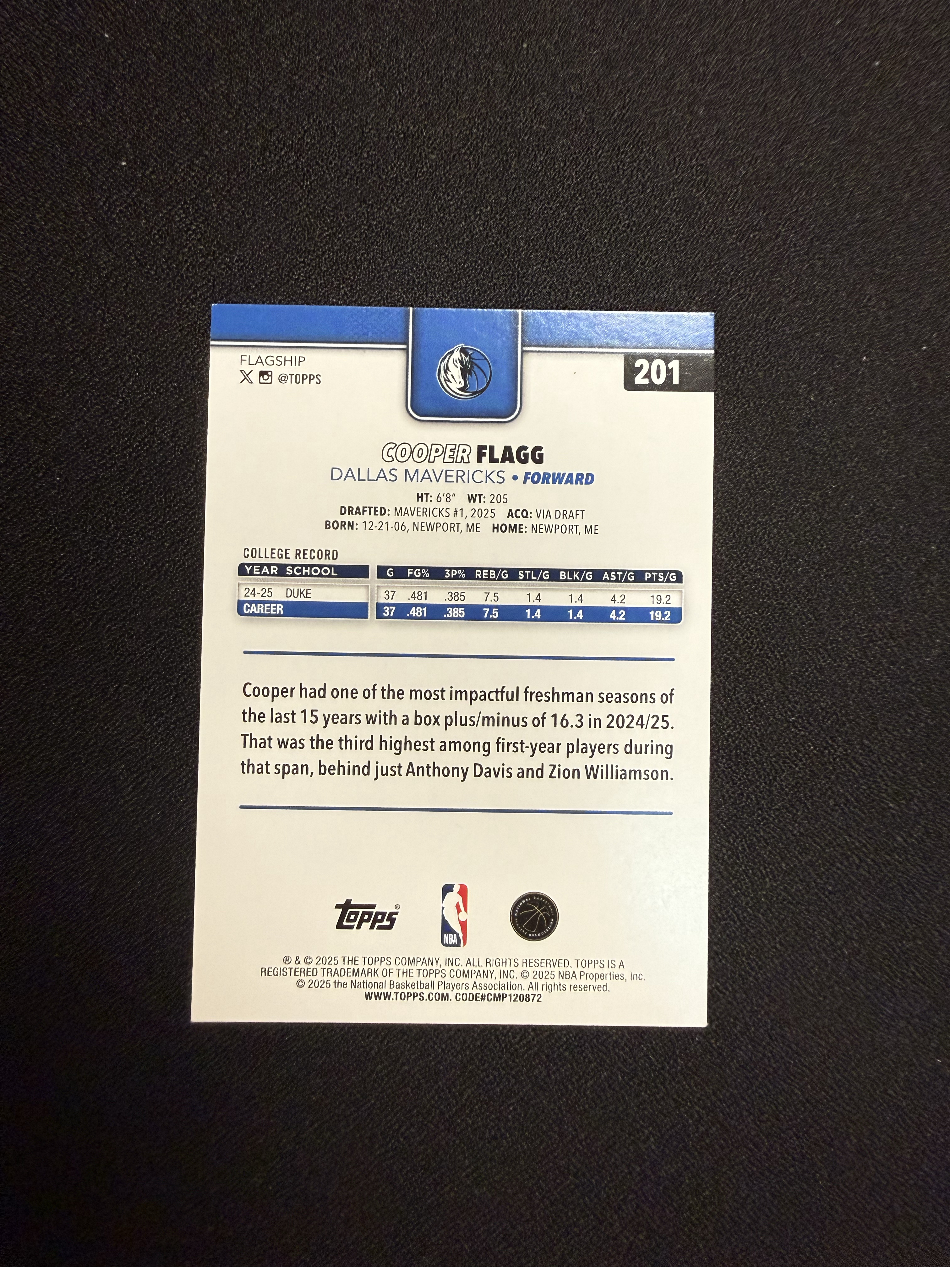 2025-26 Topps Flagship Cooper Flagg RC 库珀 弗拉格 棋盘折 脉冲折 方格折 折射 大比例 卡淘第一张 独行侠 新秀 美国之子 状元 箱货 欧文 浓眉队友