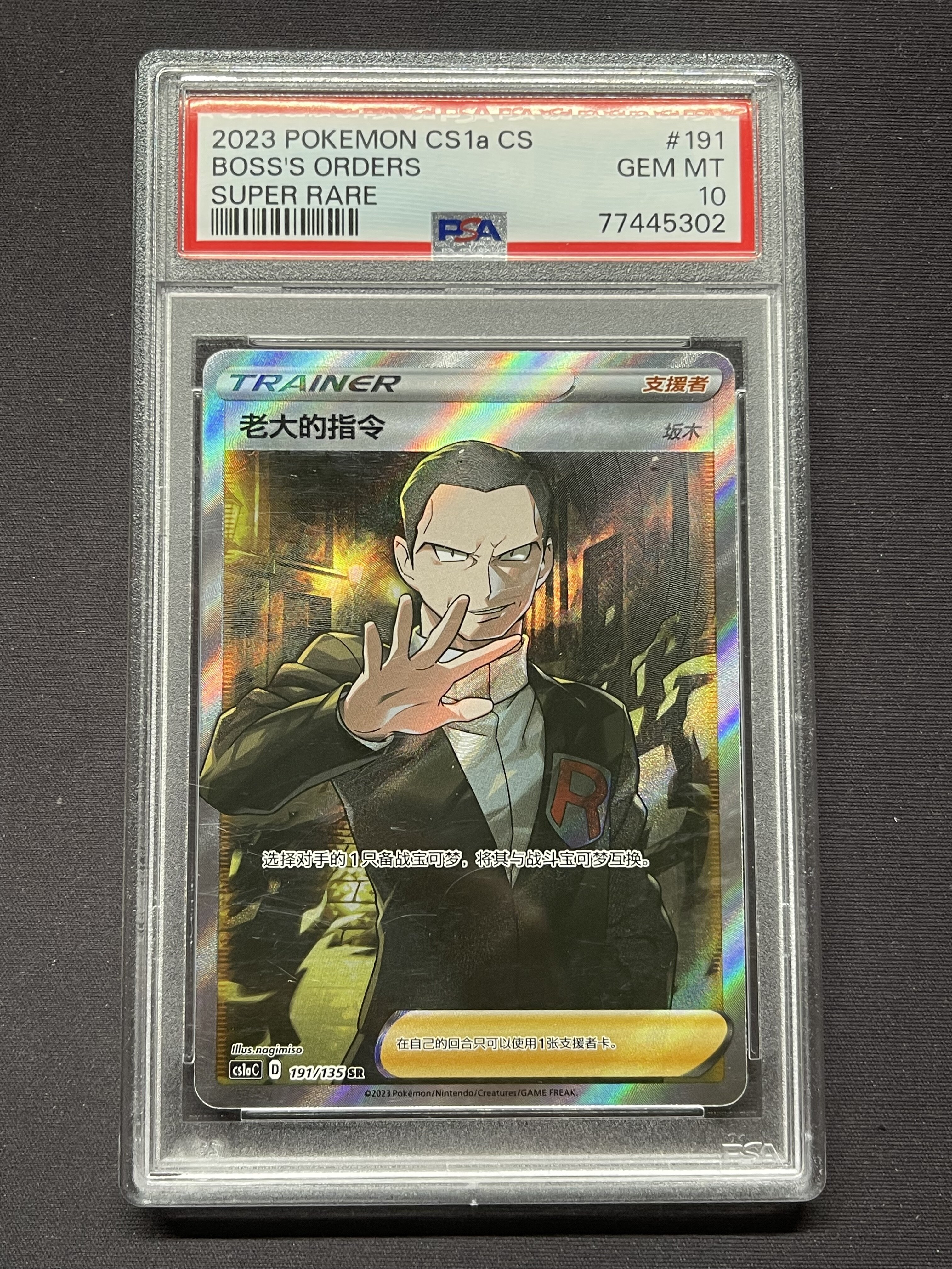 2023 Pokemon TCG 剑&盾 极巨争锋 雷 老大的指令 坂木 chs 宝可梦 简中 老大的指令 闪卡 全图闪 手绘 SR PSA10 不累计「老夫子」221