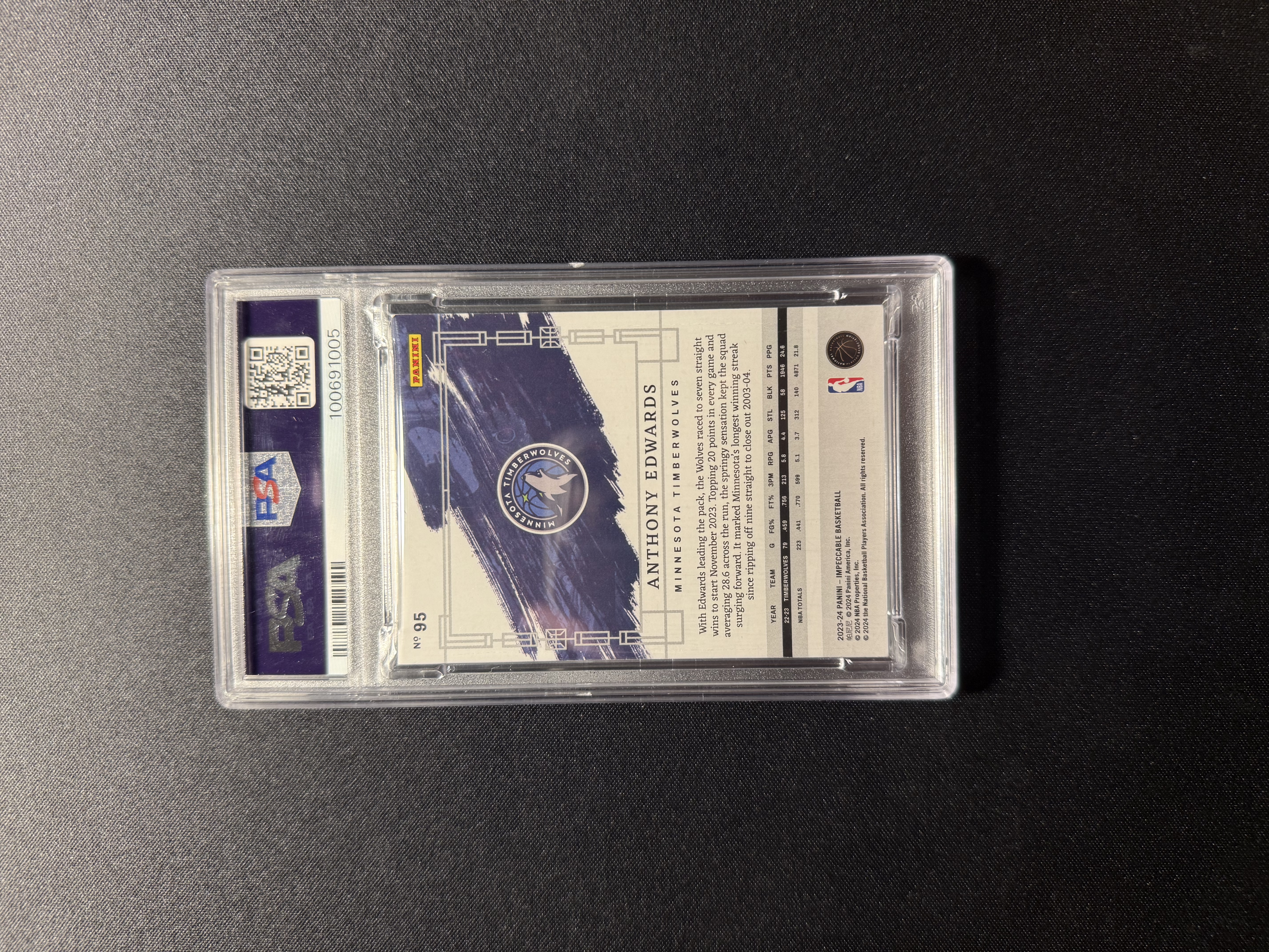 2023 Panini Impeccable Anthony Edwards PURPLE 小真金 base PSA8 安东尼 爱德华兹 华子 森林狼 5/5 紫折 超低编 尾编 三同背 收藏必备