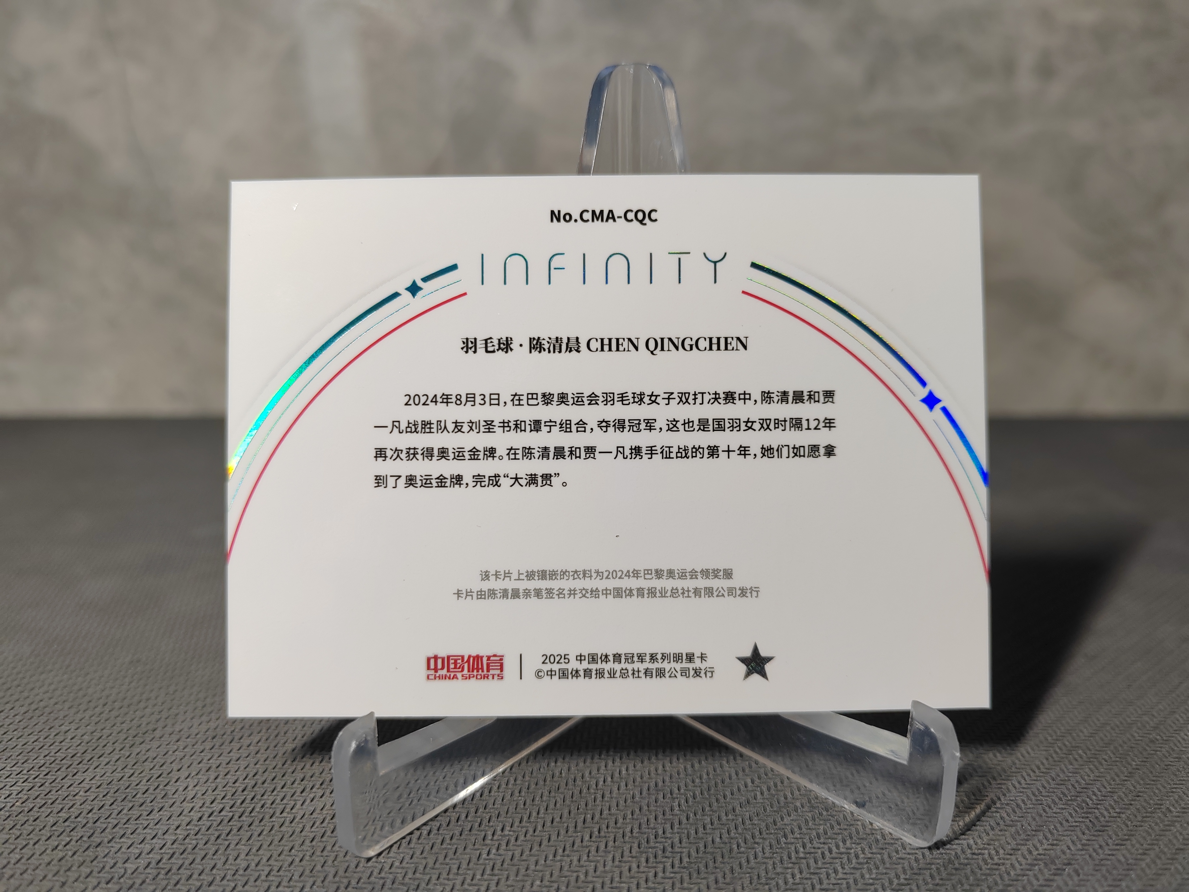 2025 奇卡 QICA 中国体育 无限 陈清晨 中国羽毛球队 超级大满贯 凡尘组合 世纪之约签字 超级暴力patch签字 1/1编 湖水蓝 2024巴黎奥运会领奖服(mcgrady116拍卖)