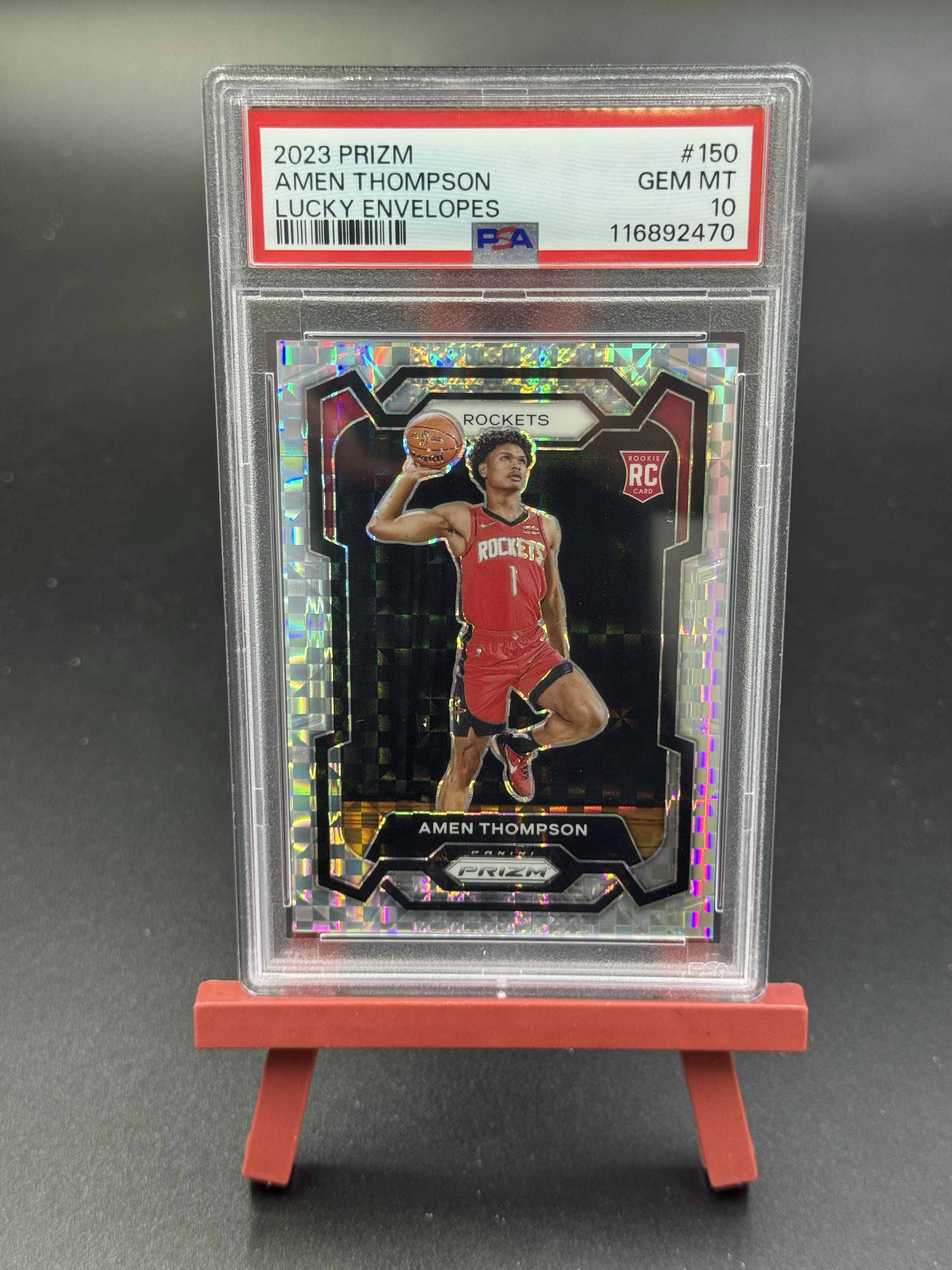2023-24 Prizm Amen Thompson 火箭 阿门 汤普森 新秀rc 银格子折 银棋盘折 信封折 折射 1/8编 首编 同背 相当于1/1 PSA10分评级卡 【优质折射专场】