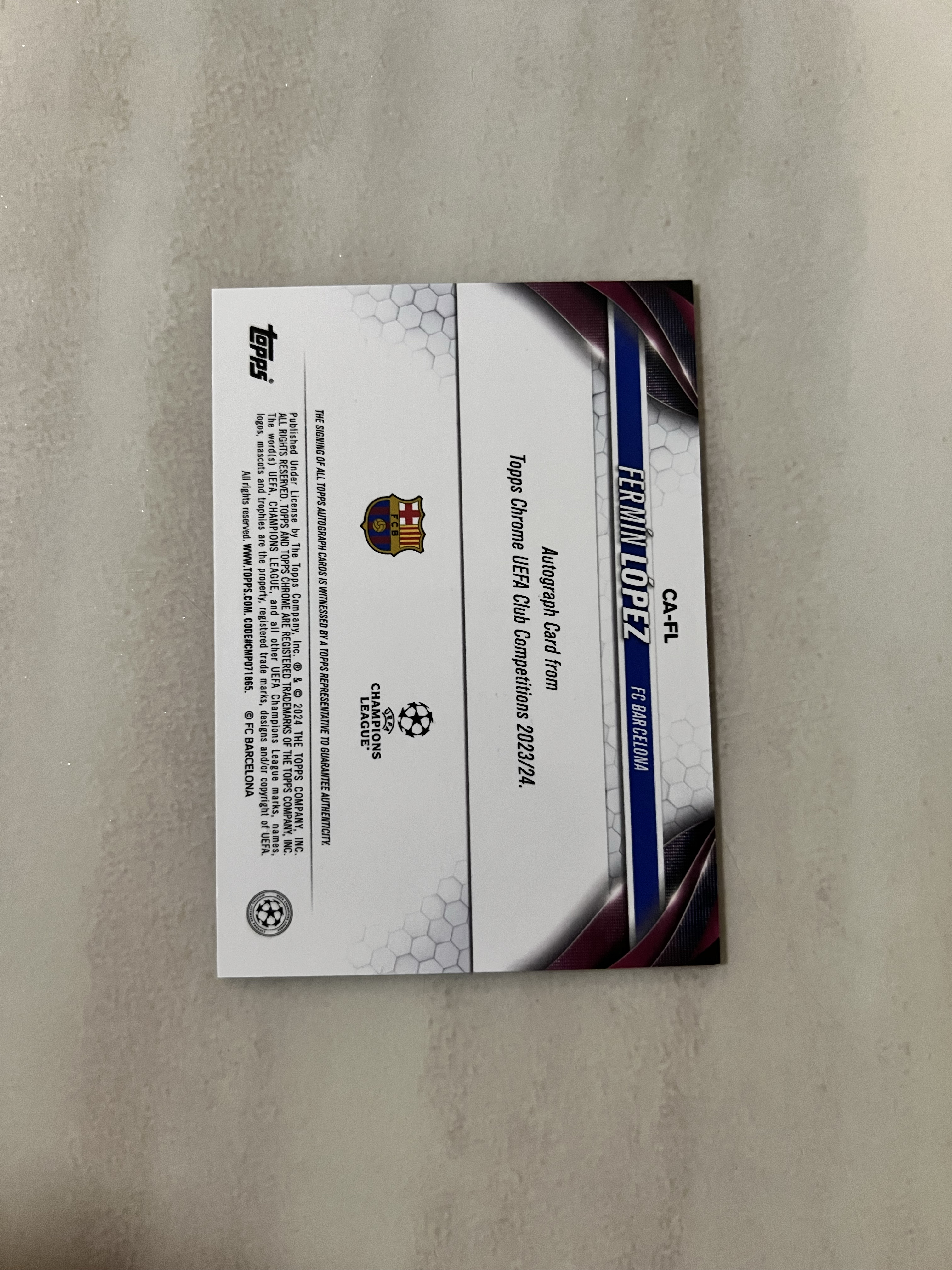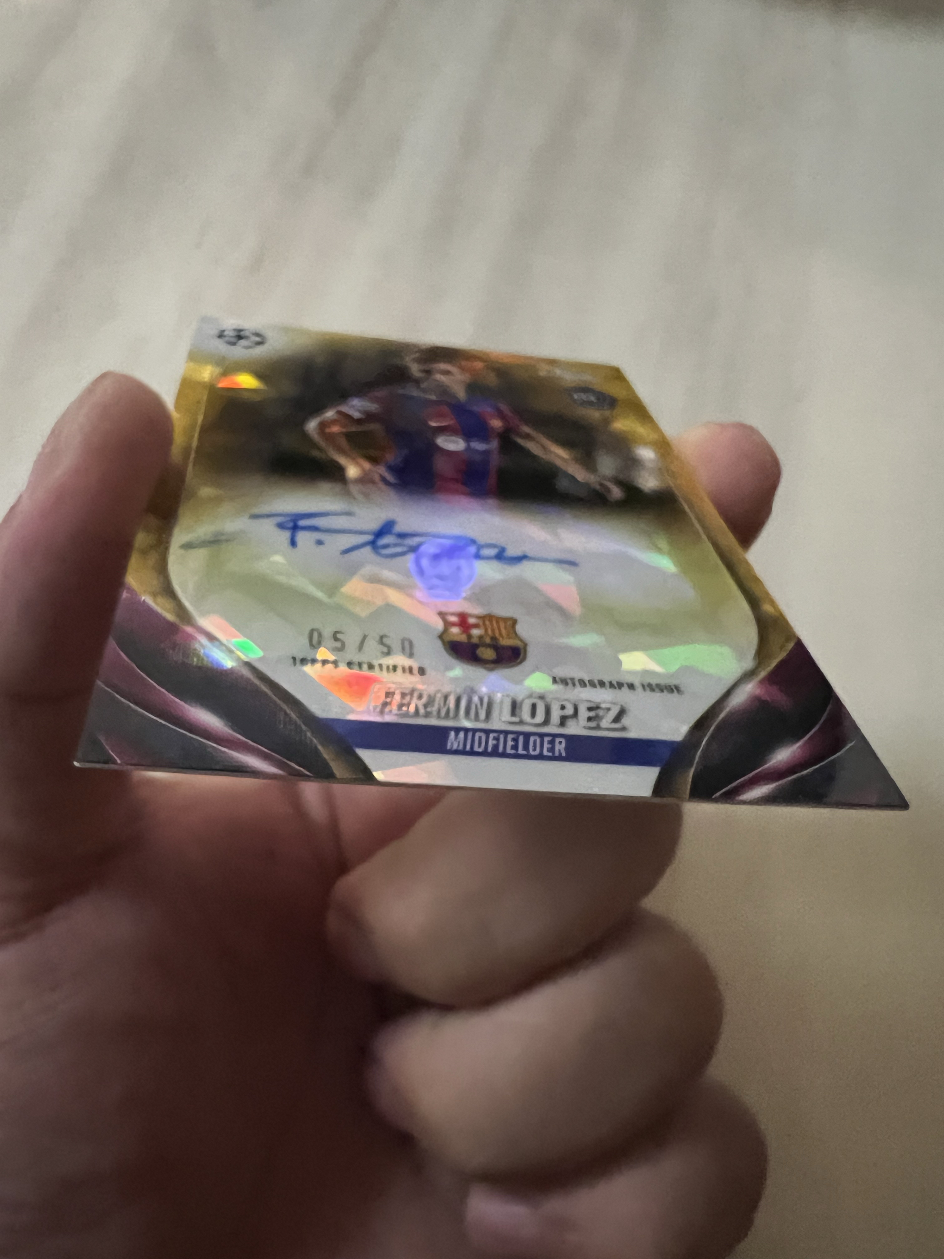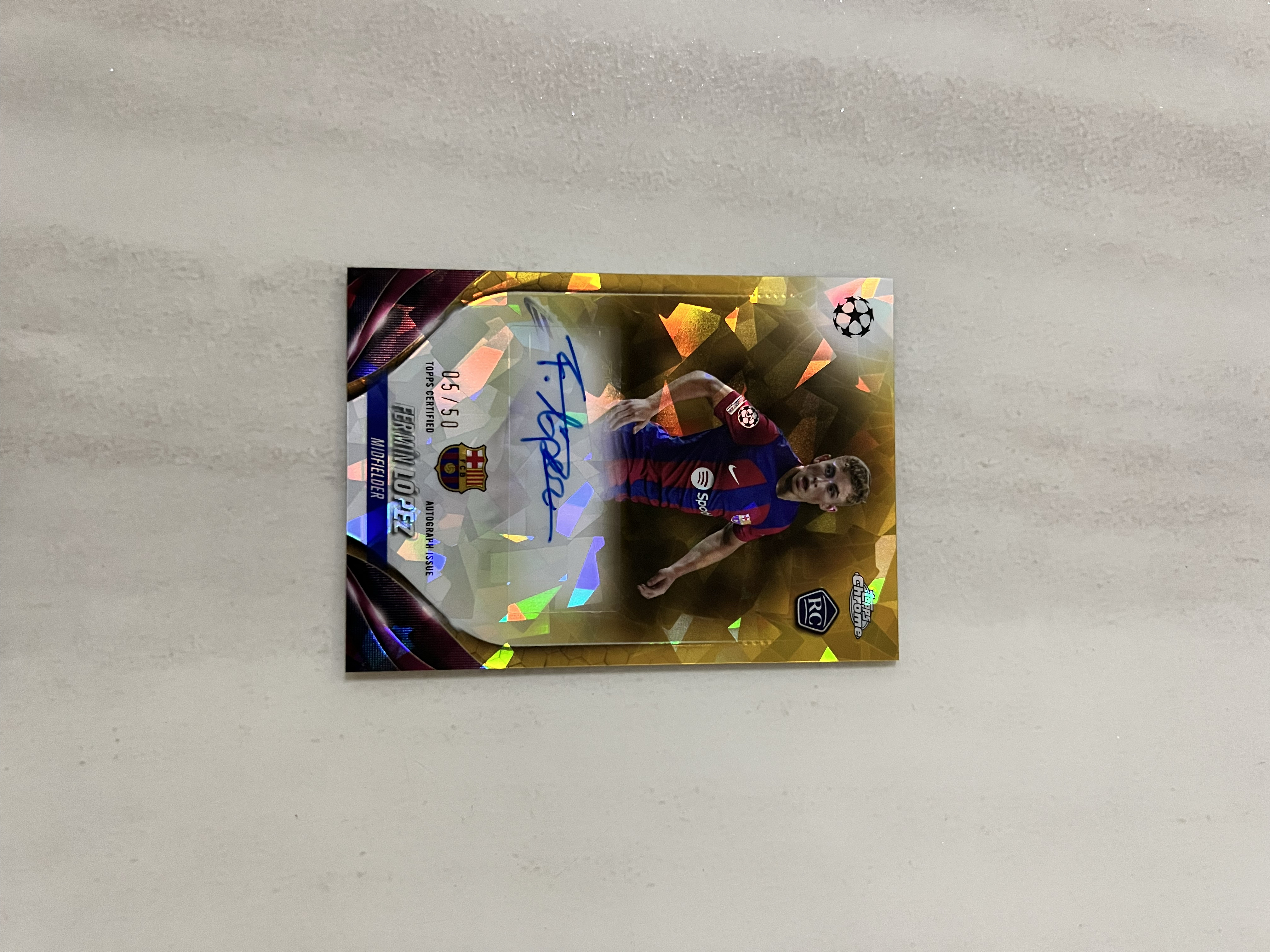 2023-24 Topps UEFA Champions League Fermín López RC 费尔明 洛佩兹 签字 西班牙 巴萨 巴塞罗那 新秀年 蓝宝石 金碎冰 5/50编 主力首发 罕见
