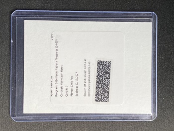 【关于卡品】:①出价即认同品相详情及拍卖规则,概不退换;②签字墨迹及卡片品相均如图,请看清楚细节图再拍,图片很清楚,需要细节图请提前咨询站内信或VX;③折射系列经常会有一道横线印刷线是出品印刷问题,不属于卡品残次范畴。国宝、IMM、NOIR等厚卡有轻微白边白角属于正常现象!镜面系列等卡面轻印划痕、印刷自带痕迹或覆膜不平起泡等卡片自身问题均为通行品。老卡有白边白角属于正常卡品。评级卡砖上的划痕和破损以及评级砖内的卡有卡品问题一律不属于品相问题。PZ、OP等各种折射系列表面的轻微划痕为正常卡品。关于以上卡品问题请确认无误再出价,介意者勿拍,要评级追求金标和10分者请直接购买评级卡。④快递过程中如出现包装破损、暴力变形、遗失等问题,请自行联系顺丰客服处理理赔,提供购买订单记录和物流记录给顺丰即可,如有高价卡有保价需求,请主动联系我们!⑤所有多卡打包lots标均不保卡品,品控和艺术家勿扰,感谢理解!【任何疑问请添加咨询VX:cglgzh01】