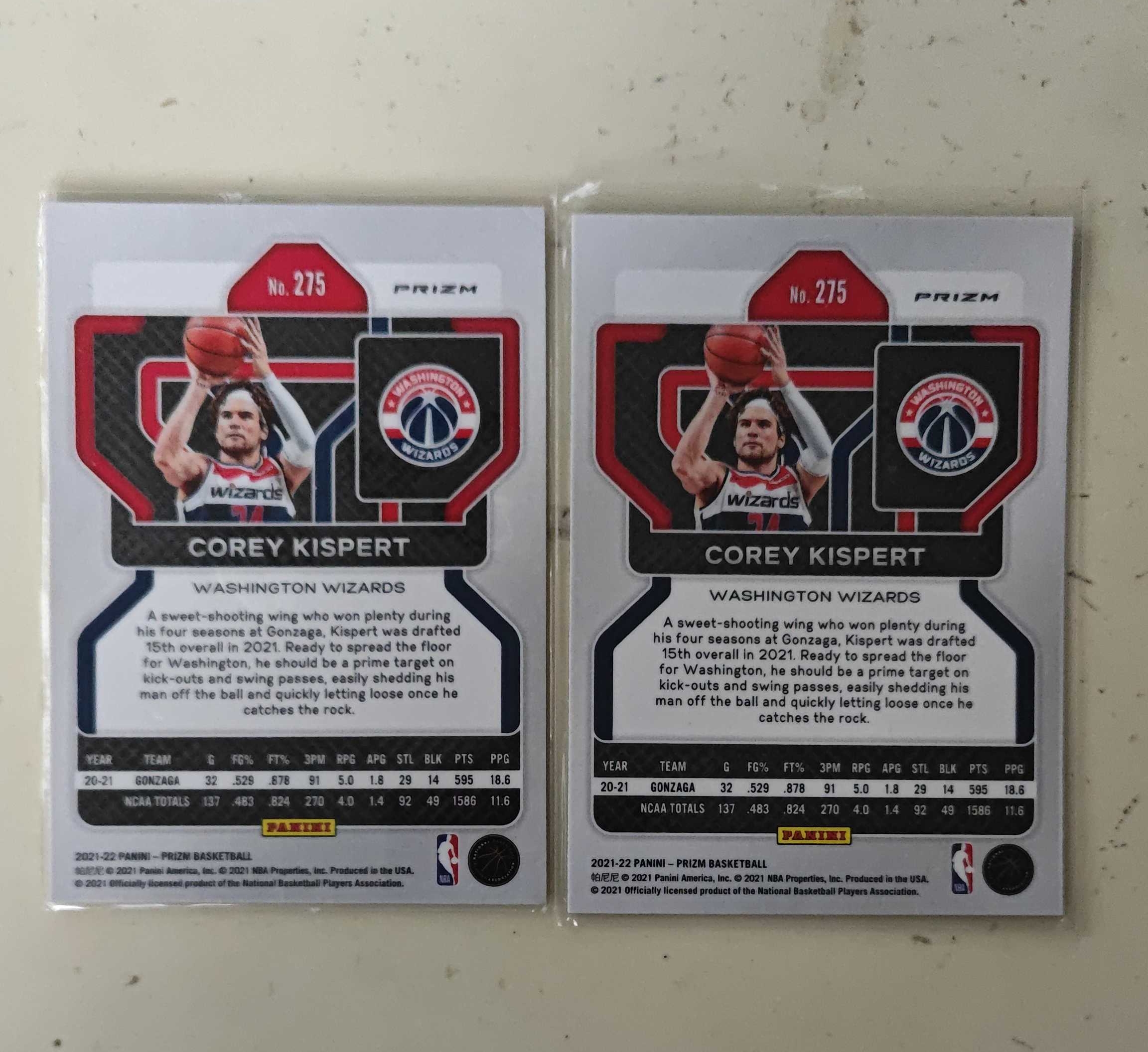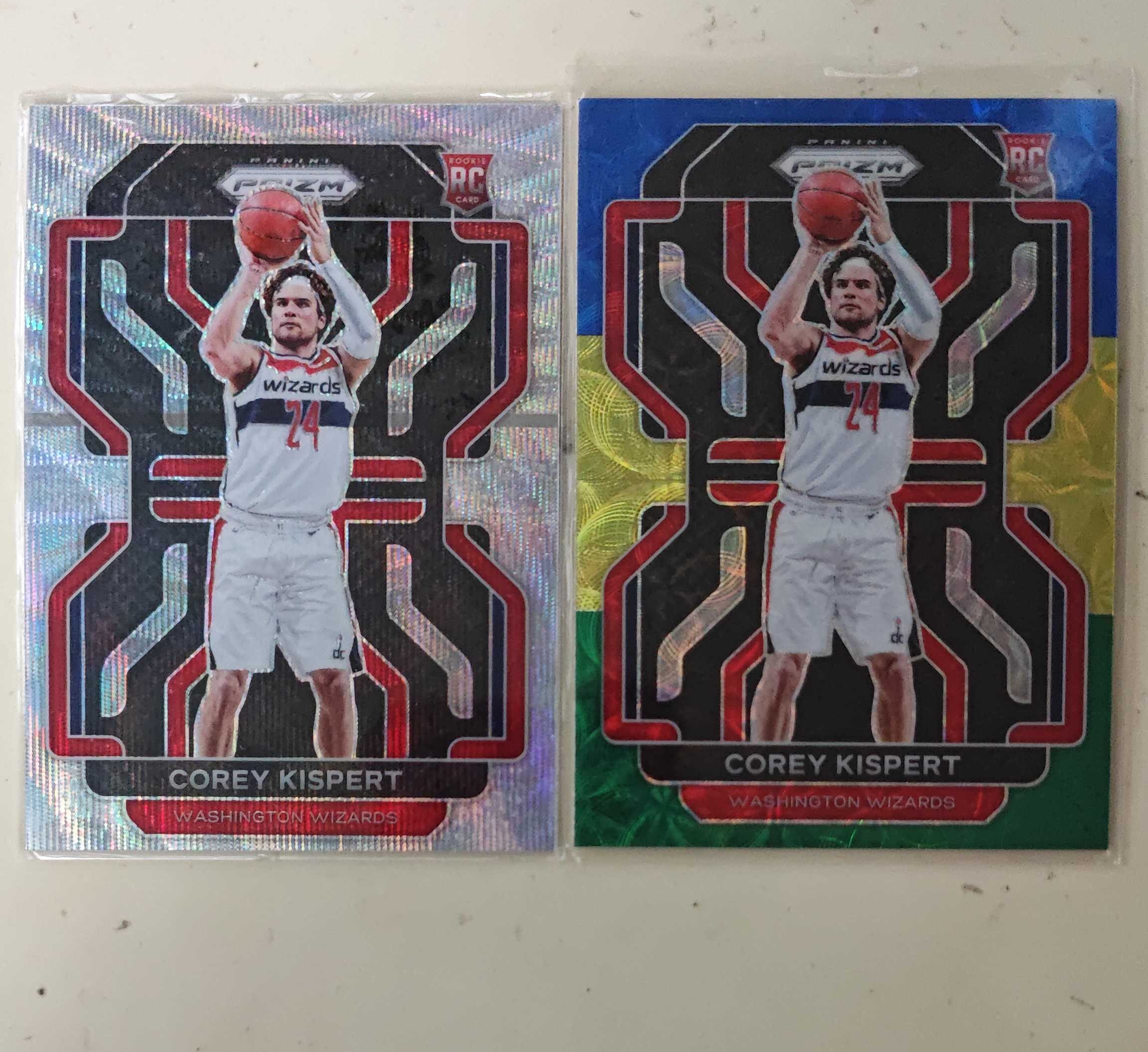 2021-22 Panini Prizm Corey Kispert RC 科里 基斯珀特 pz 新秀 三色折 黄瓜折 银波纹 折射 正base 奇才 2张lot 不保卡品 凑套必备