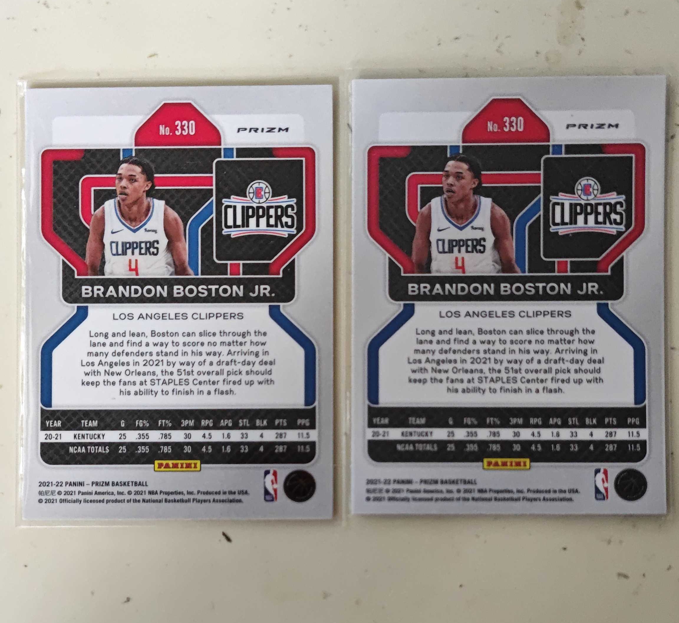 2021-22 Panini Prizm Brandon Boston Jr. RC 布兰登 波士顿 pz 新秀 银折 三色折 黄瓜折 正base 快船 2张lot 不保卡品 凑套必备