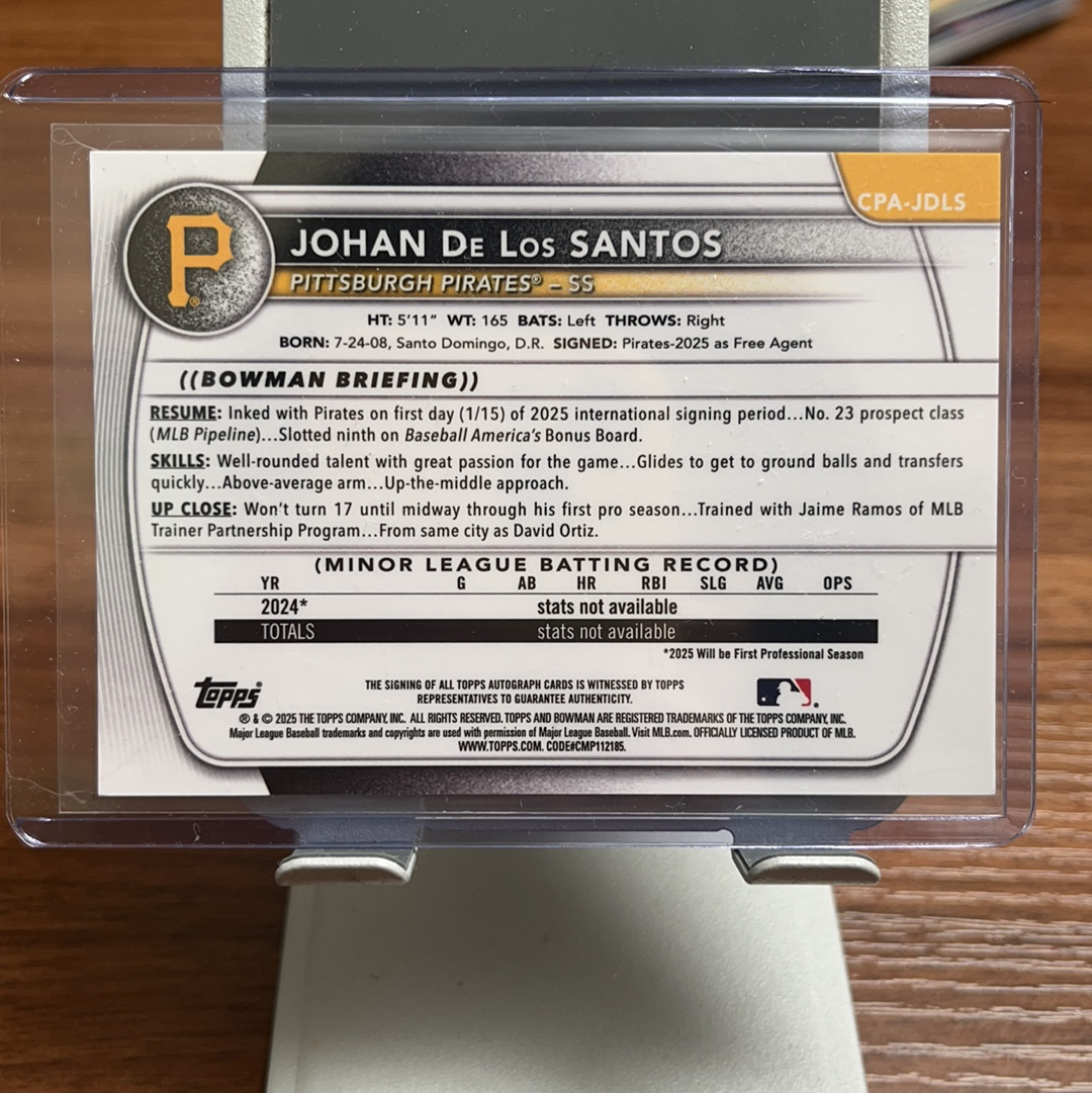 2025 Topps Bowman Chrome 新秀RC 1st Johan De La Cruz 海盗 德拉克鲁兹 签字 卡签 卡品如图