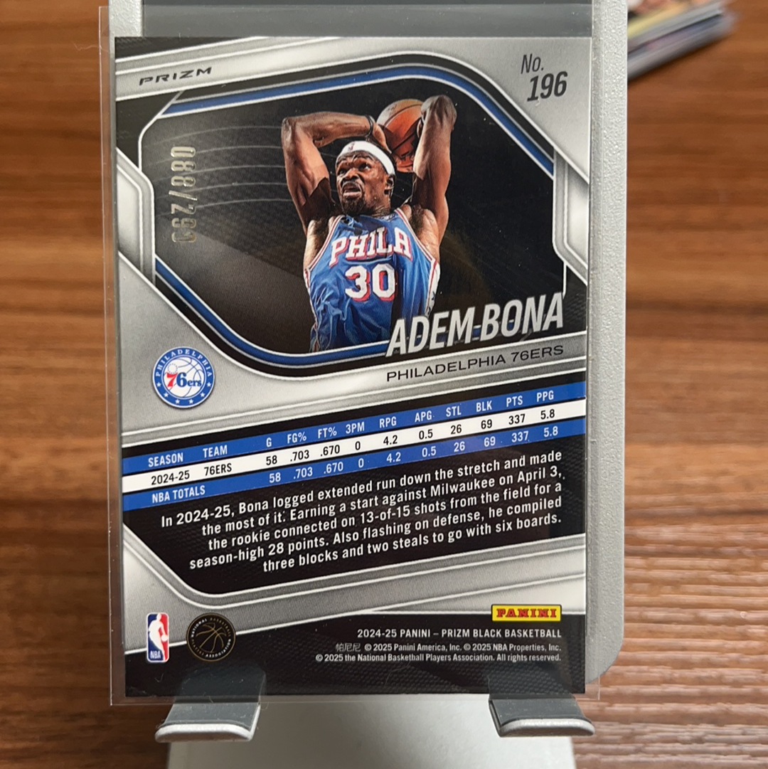2024-25 Panini Prizm Black Adem Bona PZ 阿德姆博纳 088/299编 RC新秀 红折 76人