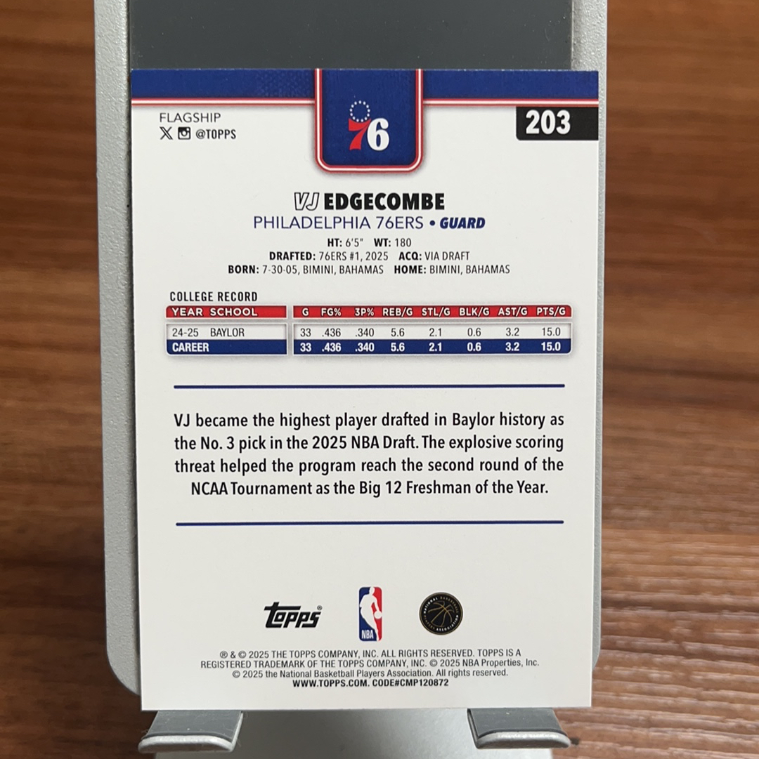 2025 Topps Topps Vj edgecombe RC Topps 76人 VJ 埃奇库姆 新秀 base 卡品如图 实卡精美