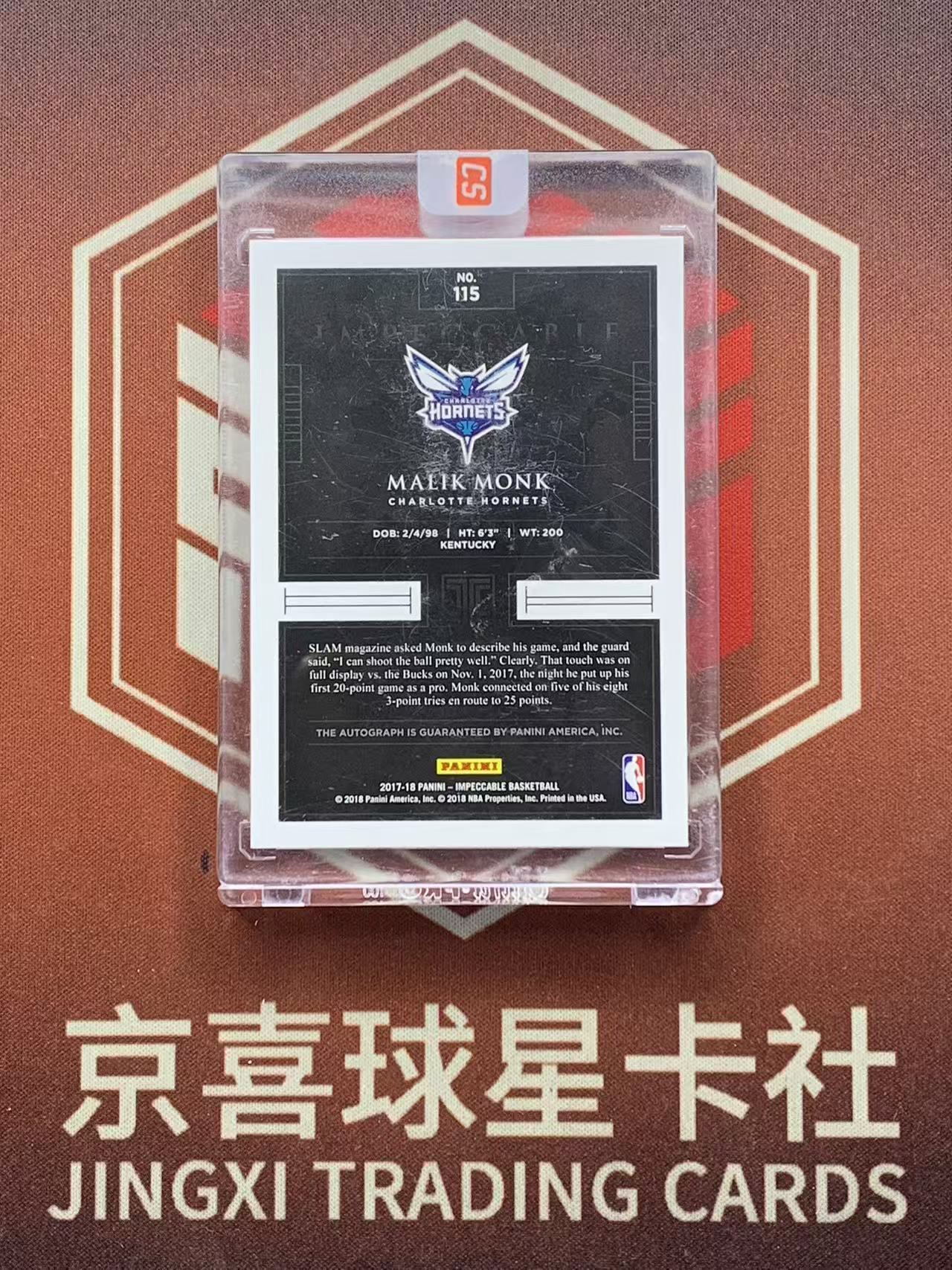 2017-18 Panini Impeccable Malik Monk RC 【京喜代拍-大帝门徒】小真金系列 马利克 蒙克 新秀 黄蜂时期 新秀签字 卡签 99编 原封砖 卡品如图 收藏必备
