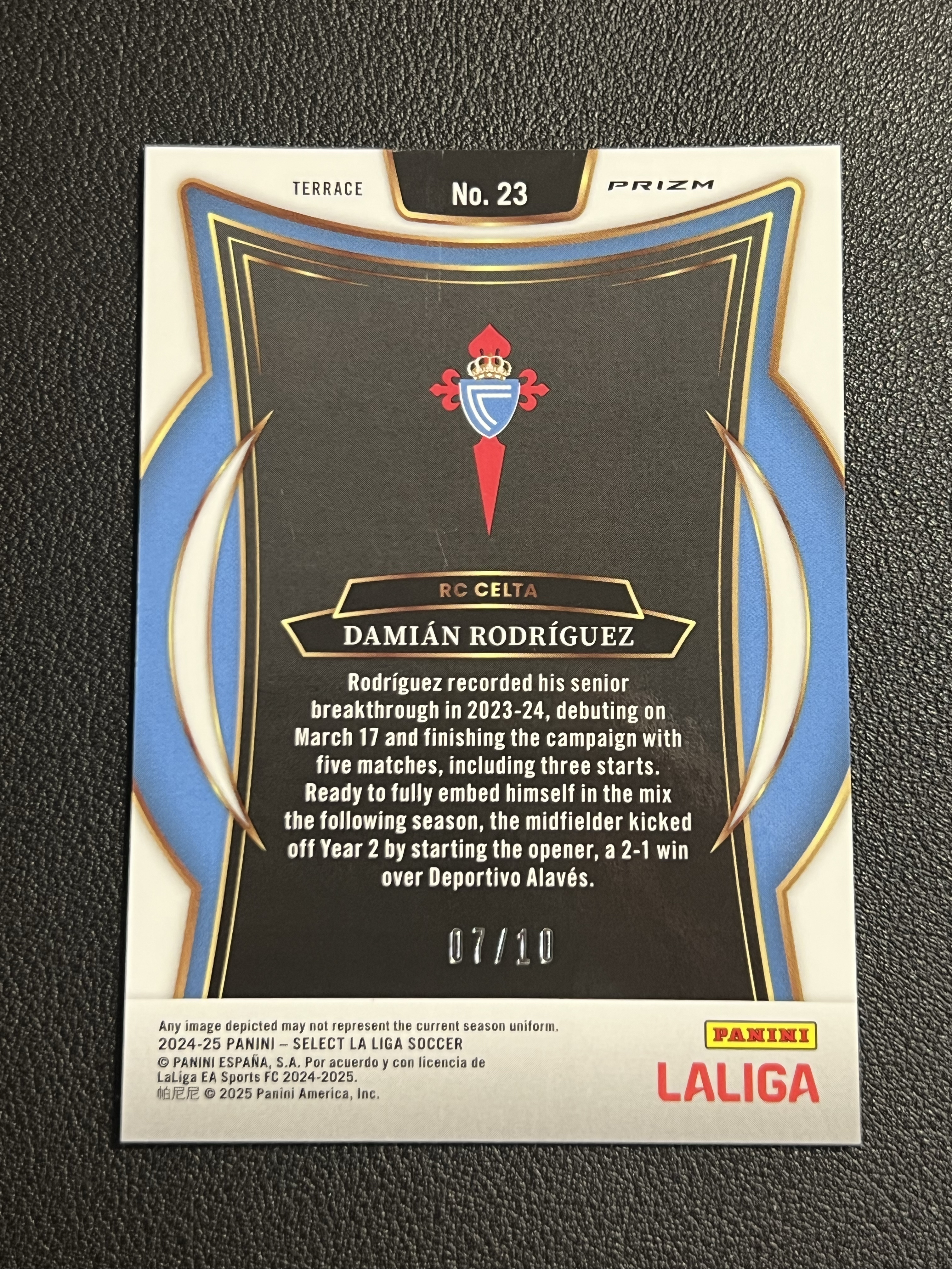 2025 Panini Select DAMIAN RODRIGUEZ RC 罗德里格斯 一级新秀 TC 7/10 金波纹 超低编 西班牙 塞尔塔 收藏必备