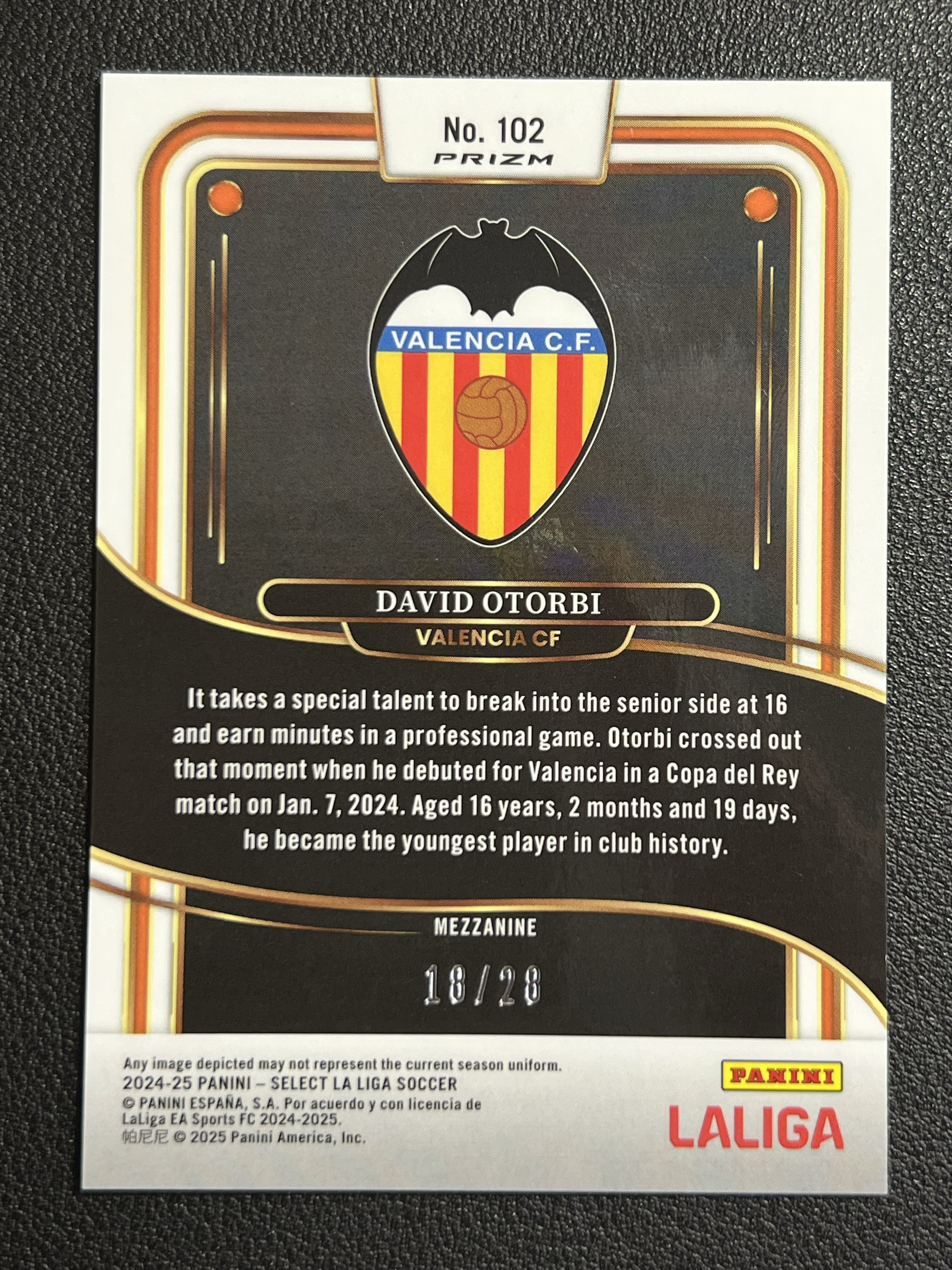 2024-25 Panini Select OTORBI RC 大卫 奥托尔比 新秀 28编 RC 孔雀折 2级 西班牙 瓦伦西亚 未来可期