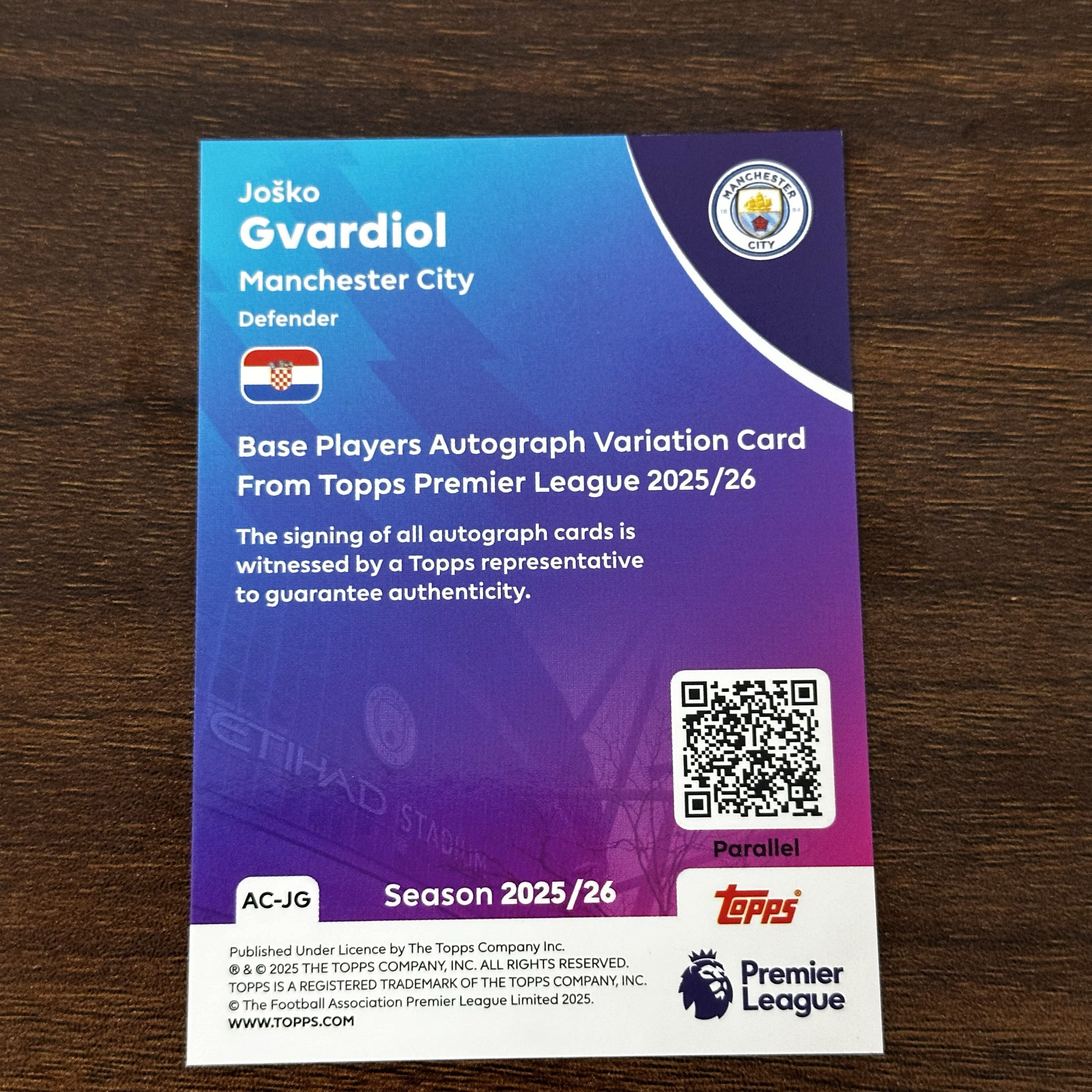 2025 Topps 英超 josko gvardiol 格瓦迪奥尔 黑白折签字 折射 75编 实卡好看 收藏必备 多图已拍 仔细看图