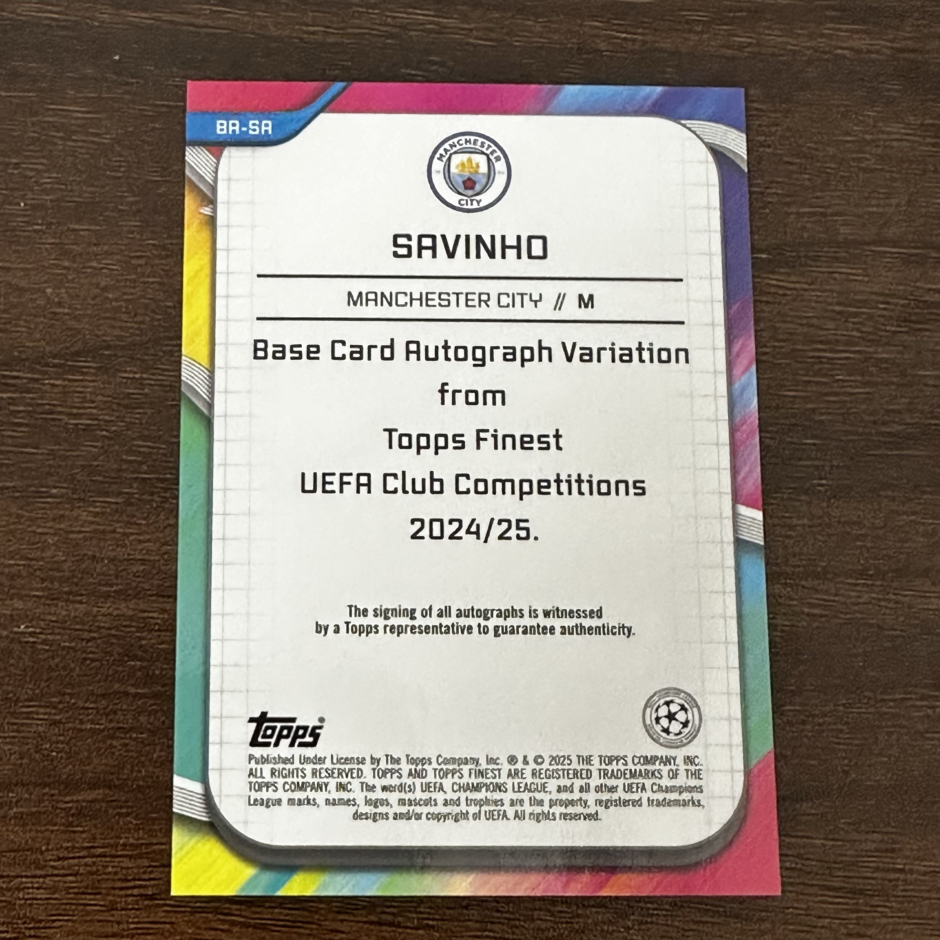 2025 Topps Finest savinho 欧冠 Finest 曼城 萨维尼奥 99编 签字 绿波纹 折射 凑套 卡品如图