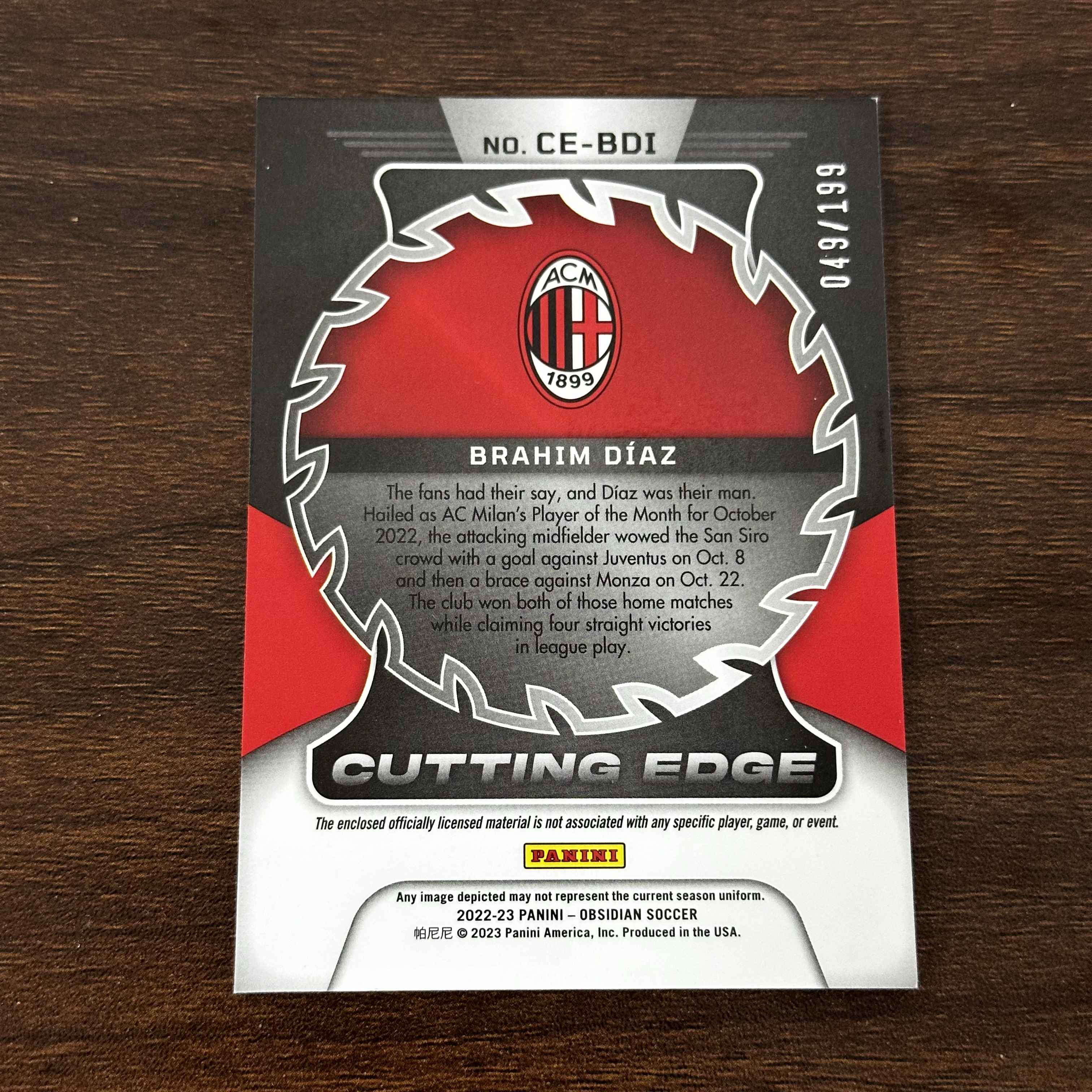 2022-23 Panini Obsidian Brahim Díaz 布拉西姆 卜拉欣 迪亚斯 西班牙 皇家马德里 皇马 黑曜石 199编 Cutting Edge 尖端物料 双窗球衣 卡品如图