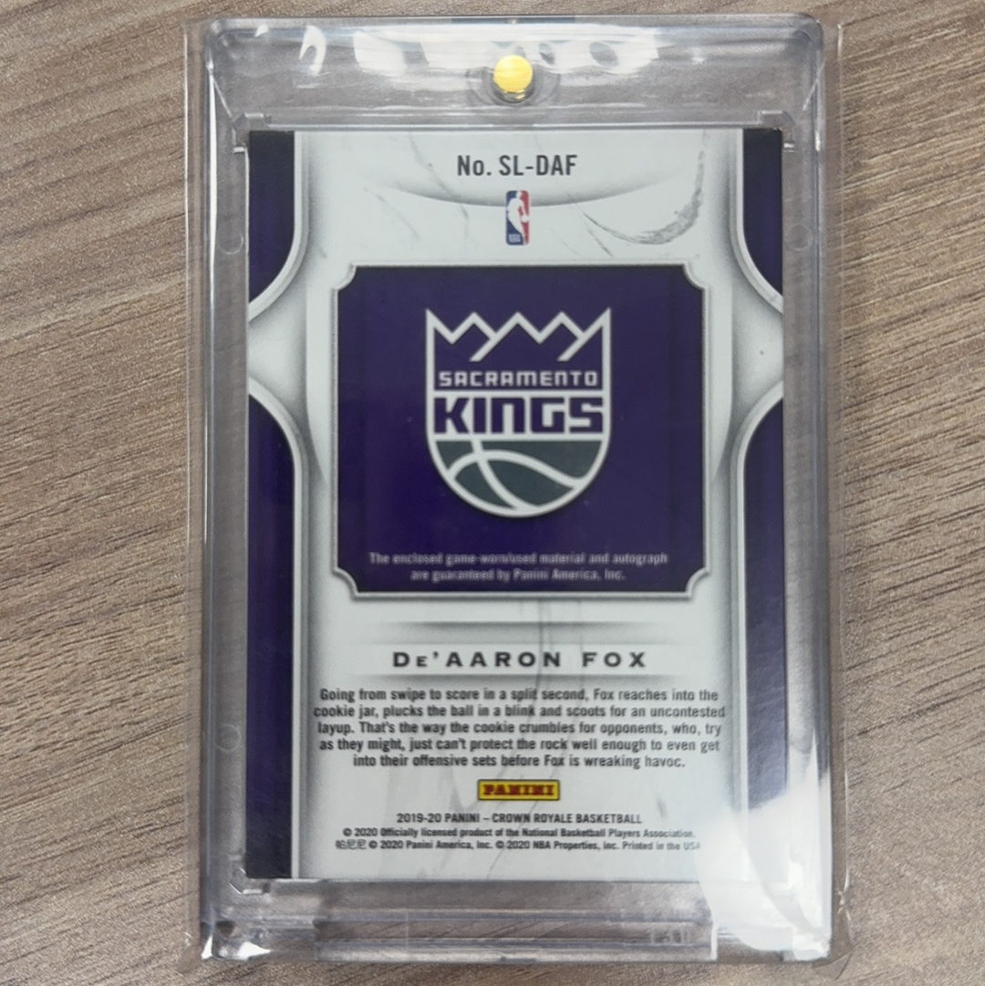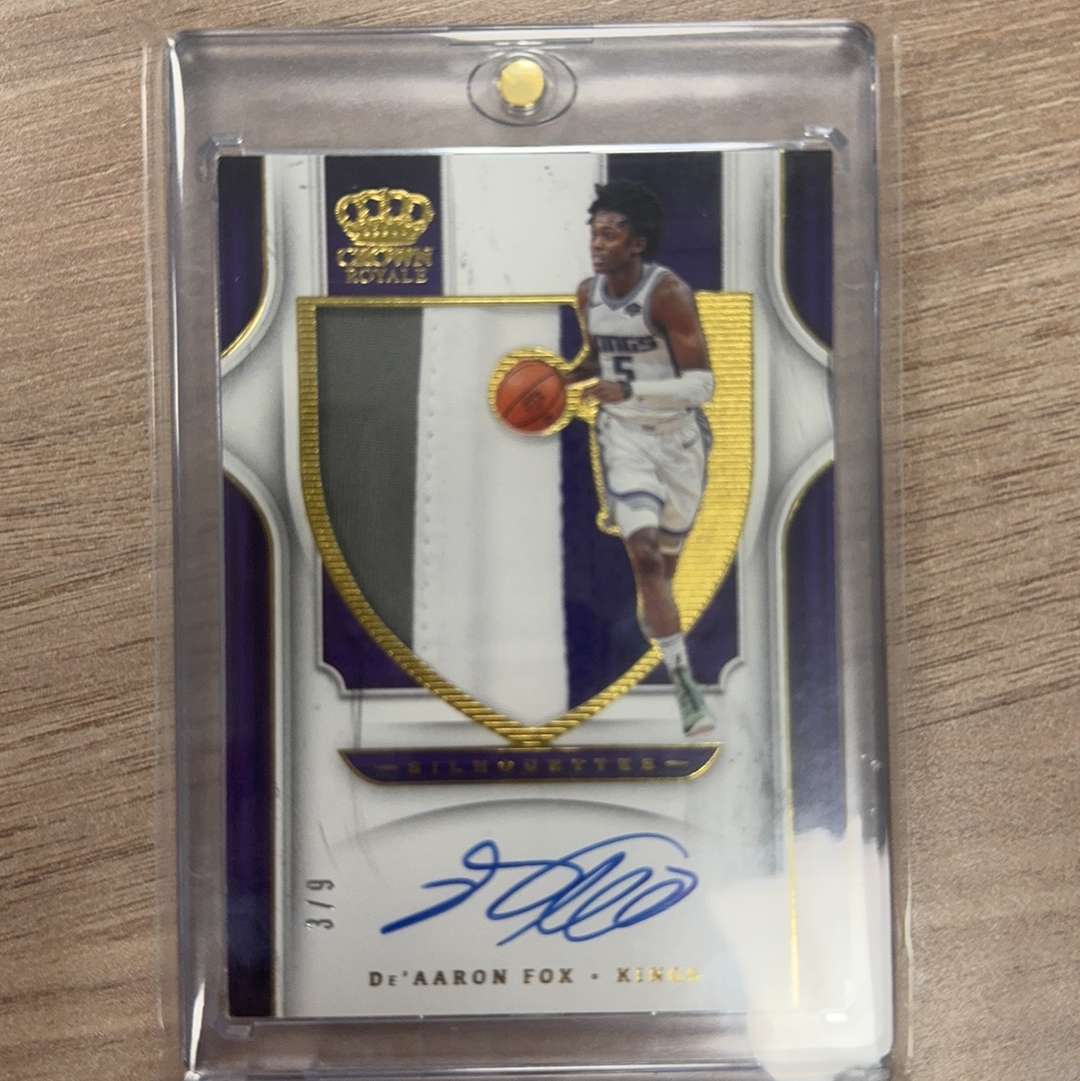 2019-20 Panini Crown Royale De'Aaron Fox 达龙福克斯 小狐狸 国王选图 皇冠系列 3/9编 大窗剪影 PA 三色球衣 物料 暴力切割 大HIT 签字 卡签 PP
