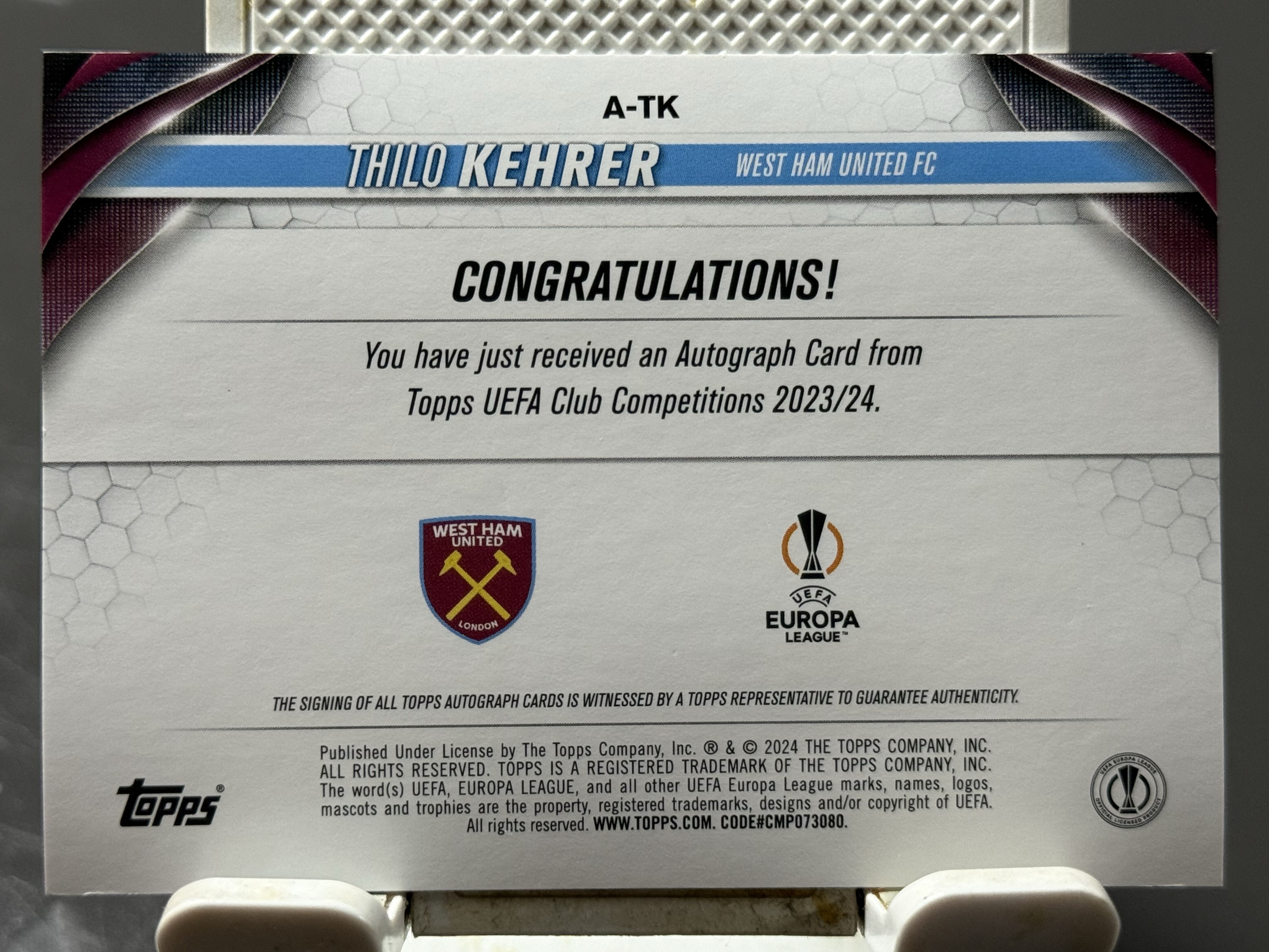 2024 Topps 碧玉 Thilo Kehrer 【K星代拍】蒂洛 科雷尔 签字 碧玉 折射 西汉姆联 足球