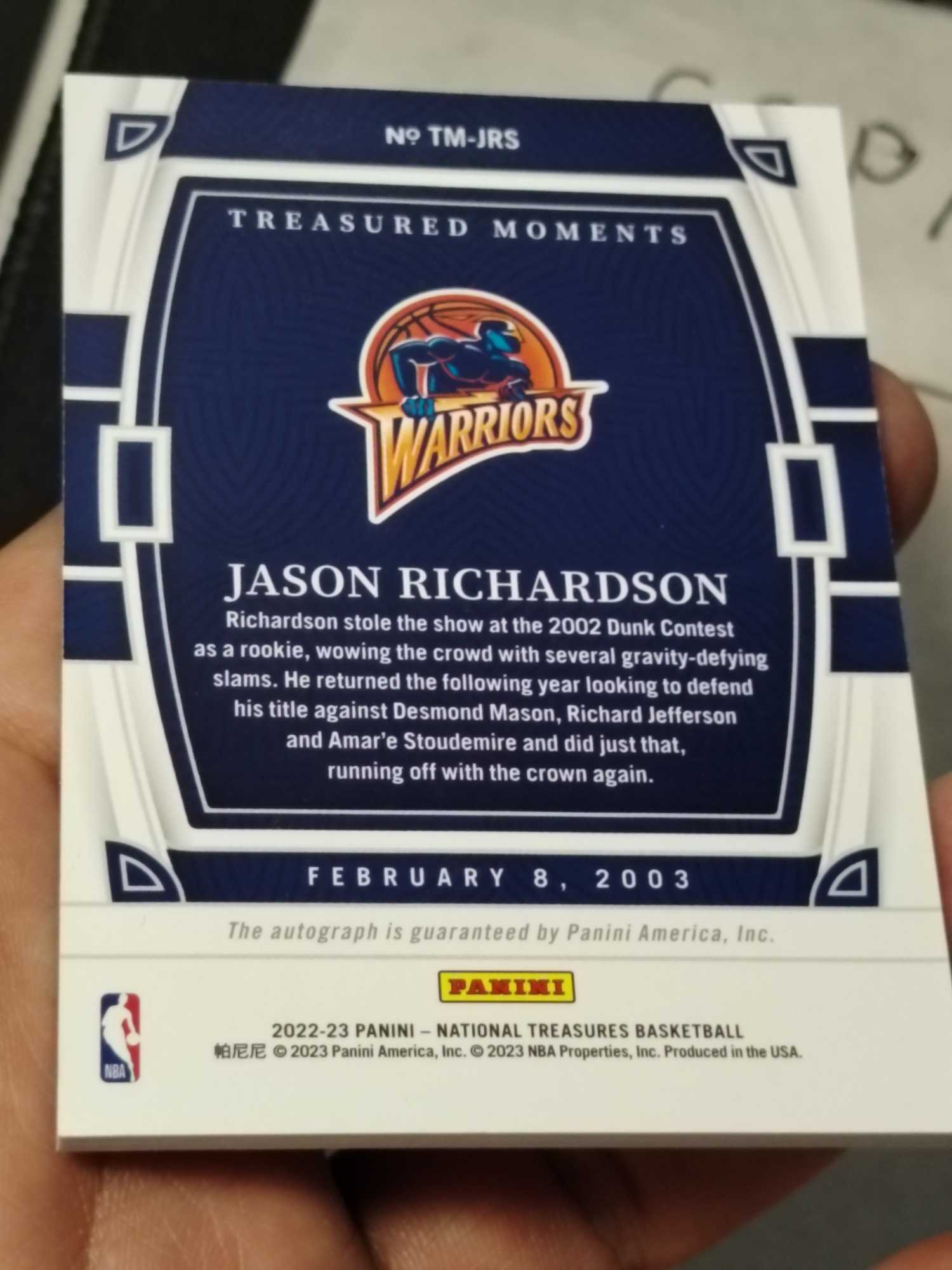 2022-23 Panini National Treasures Jason Richardson auto 签字 75/99 2 time slam dunk champions