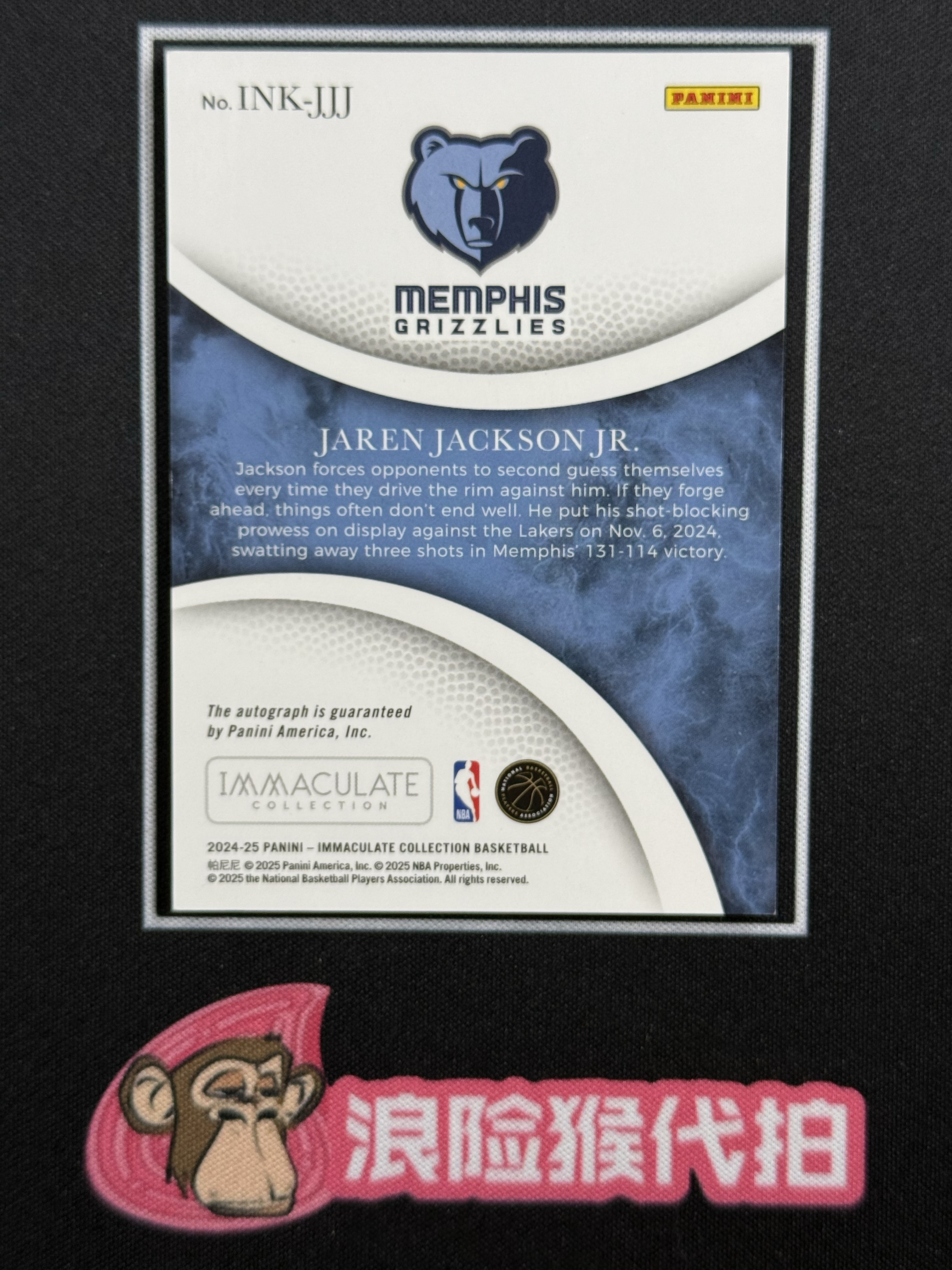 【浪险猴🐒代拍】E07 2024-25 Panini Immaculate Jaren Jackson 爱咪咪 灰熊 贾伦 杰克逊 JJJ 签字卡签 09/49编 莫兰特队友 卡品如图 刘哥