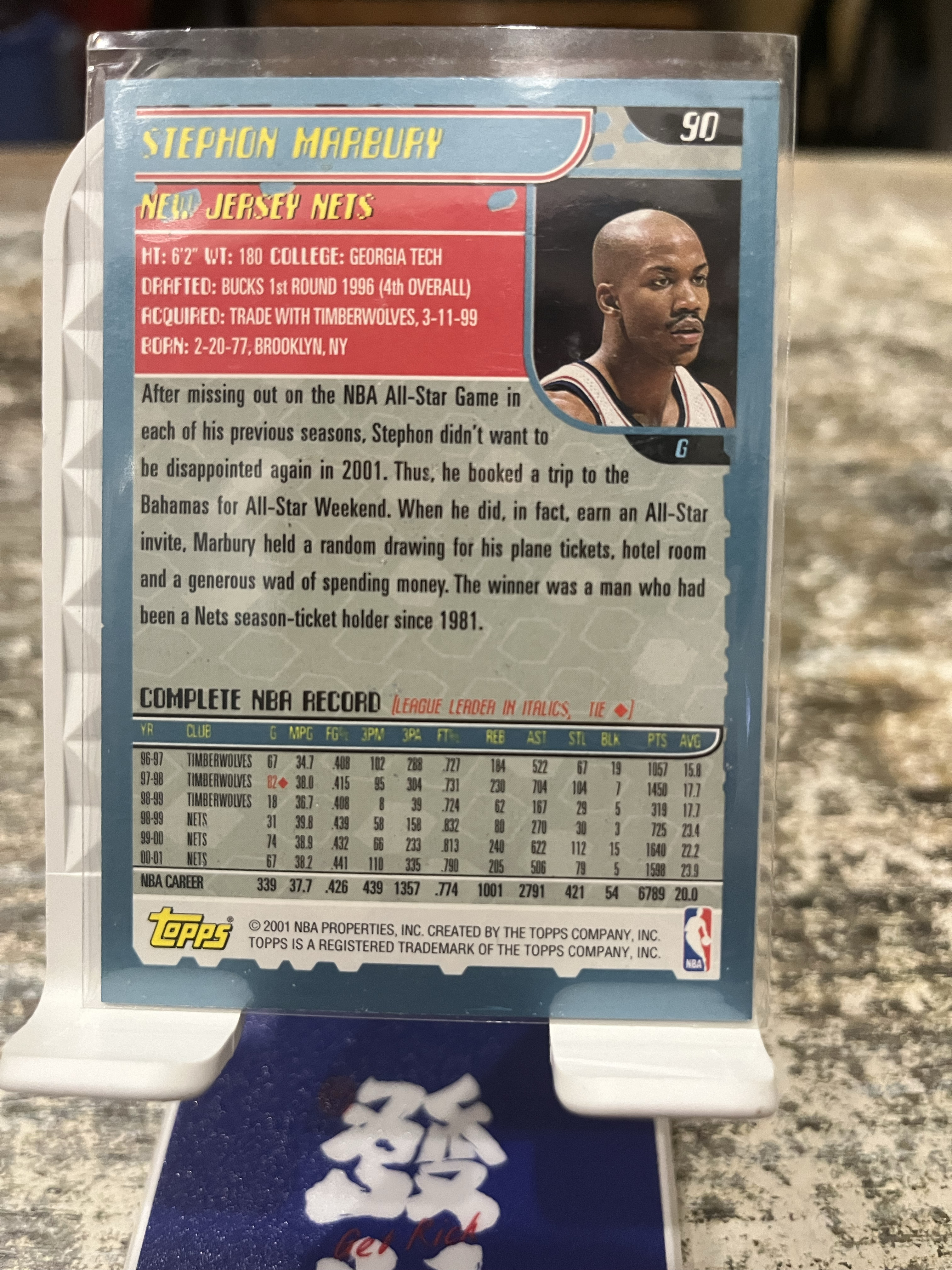 A3 2001 Topps Stephon Marbury 森林狼队 独狼  篮网 CBA外援名宿 马布里 贵包 老卡稀少可以收藏投资