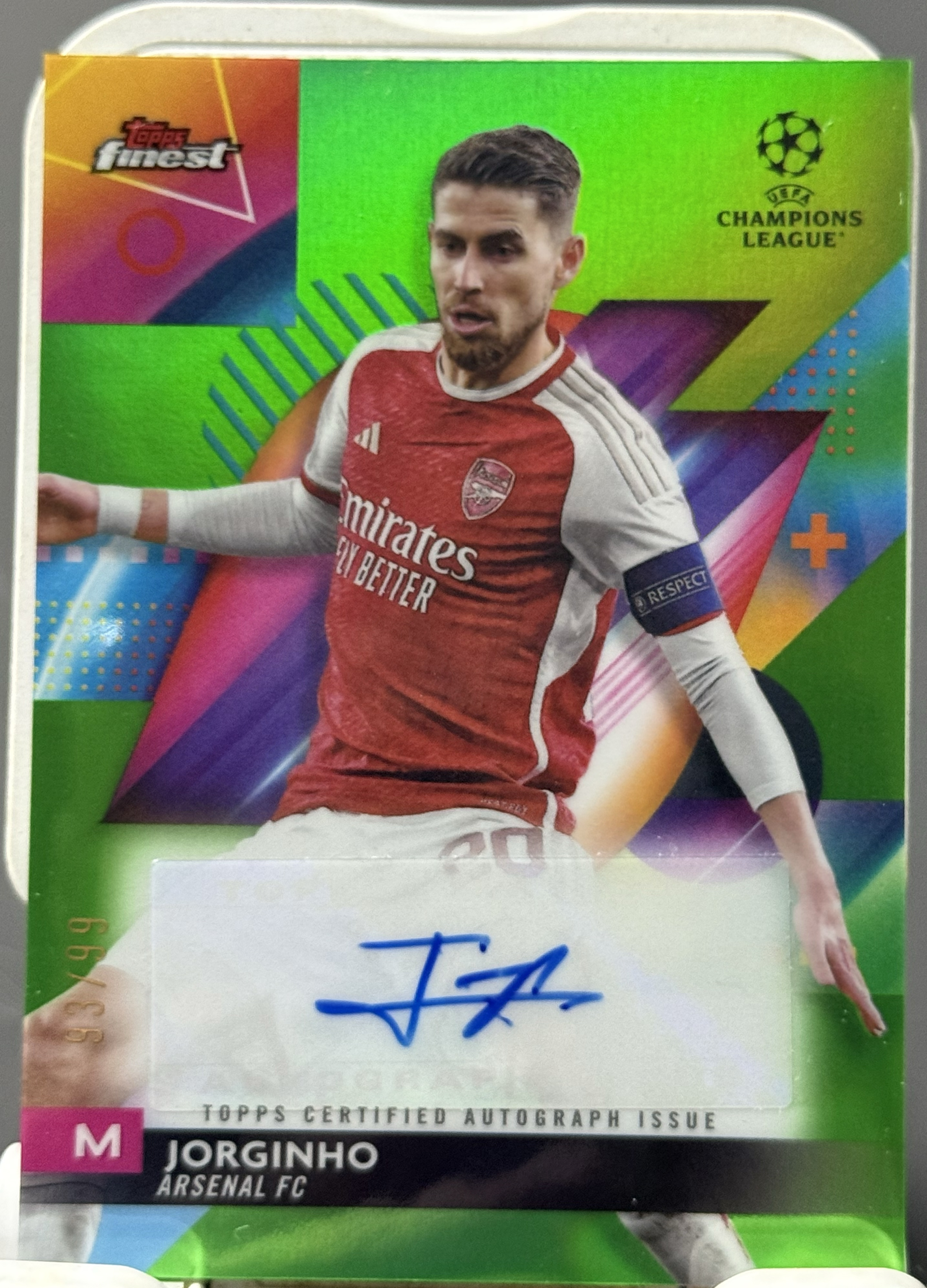 2024 Topps Chrome . 【K星代拍】jorginho Jorginho 若日尼奥 阿森纳 欧冠 签字 /99编 绿波纹折 极具收藏价格 未来必涨