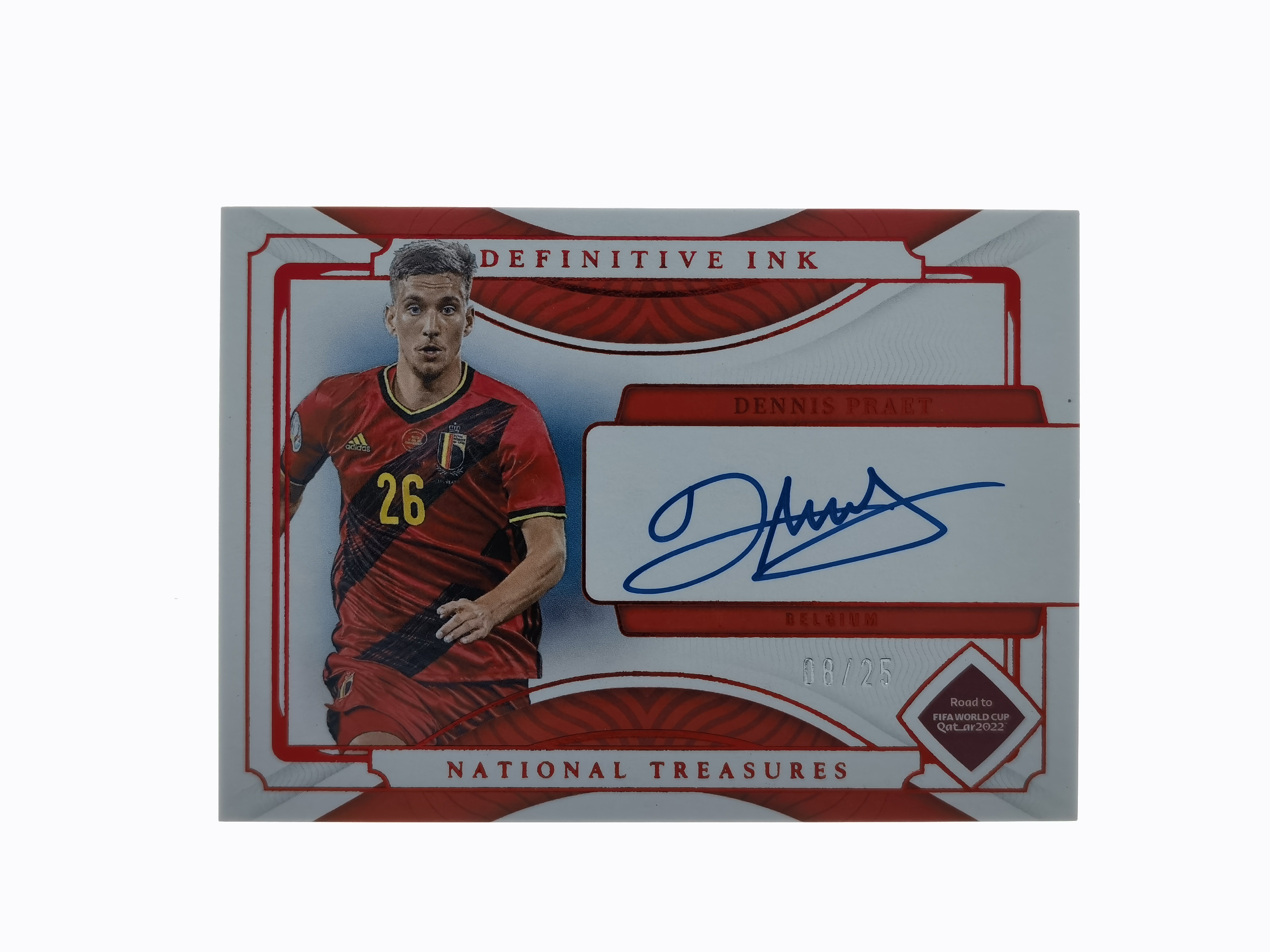 2022 Panini National Treasures Dennis Praet 比利时队 丹尼斯 普拉耶特 普拉特 国宝 08/25 卡签 完美签字 厚卡边角白边微瑕 介意勿拍
