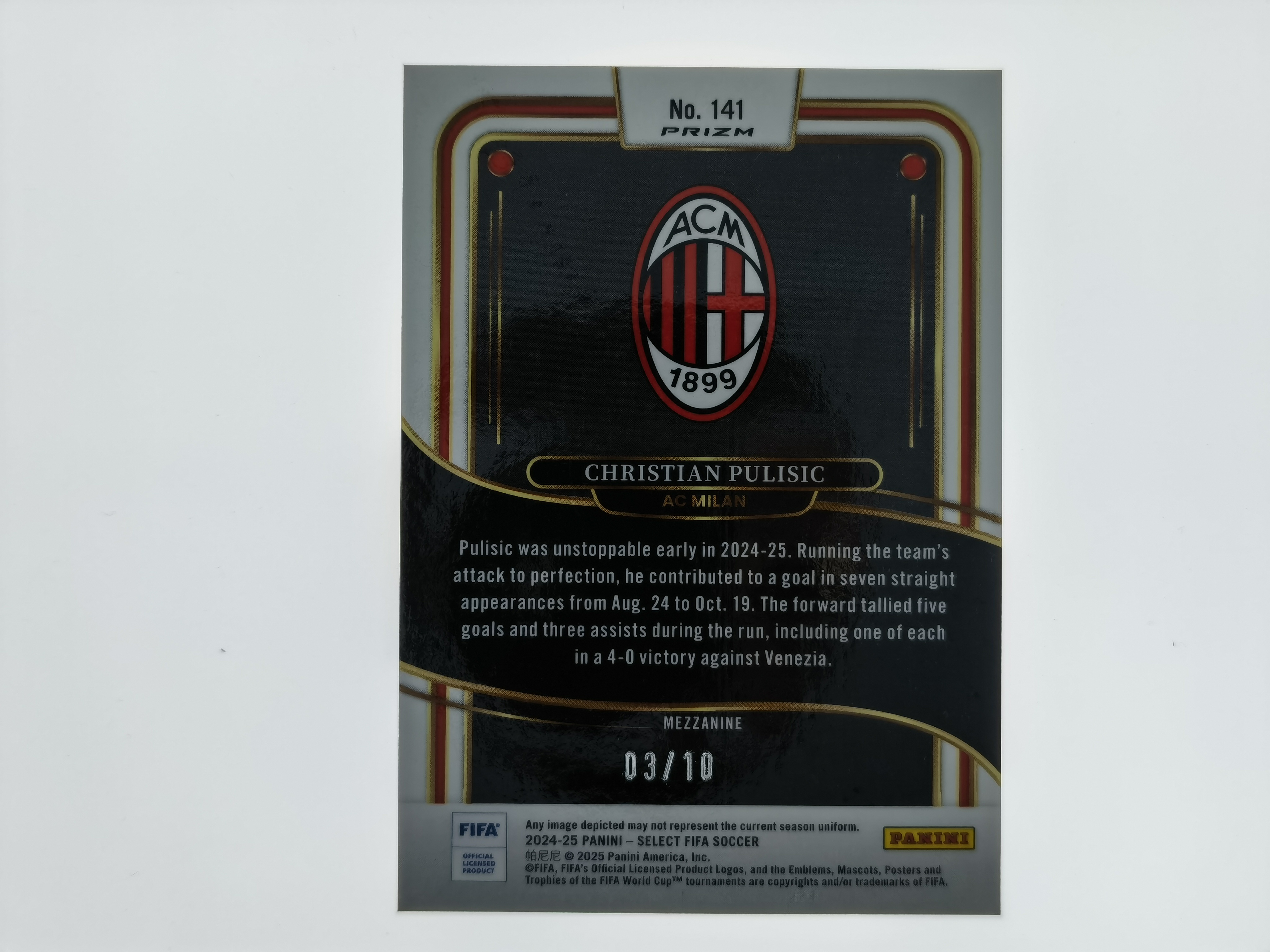 2024-25 Panini Select Christian Pulišić AC米兰 美国队 克里斯蒂安 普利希奇 美国队长 select 03/10 金折 莫德里奇队友 通行卡品 拍前看描述