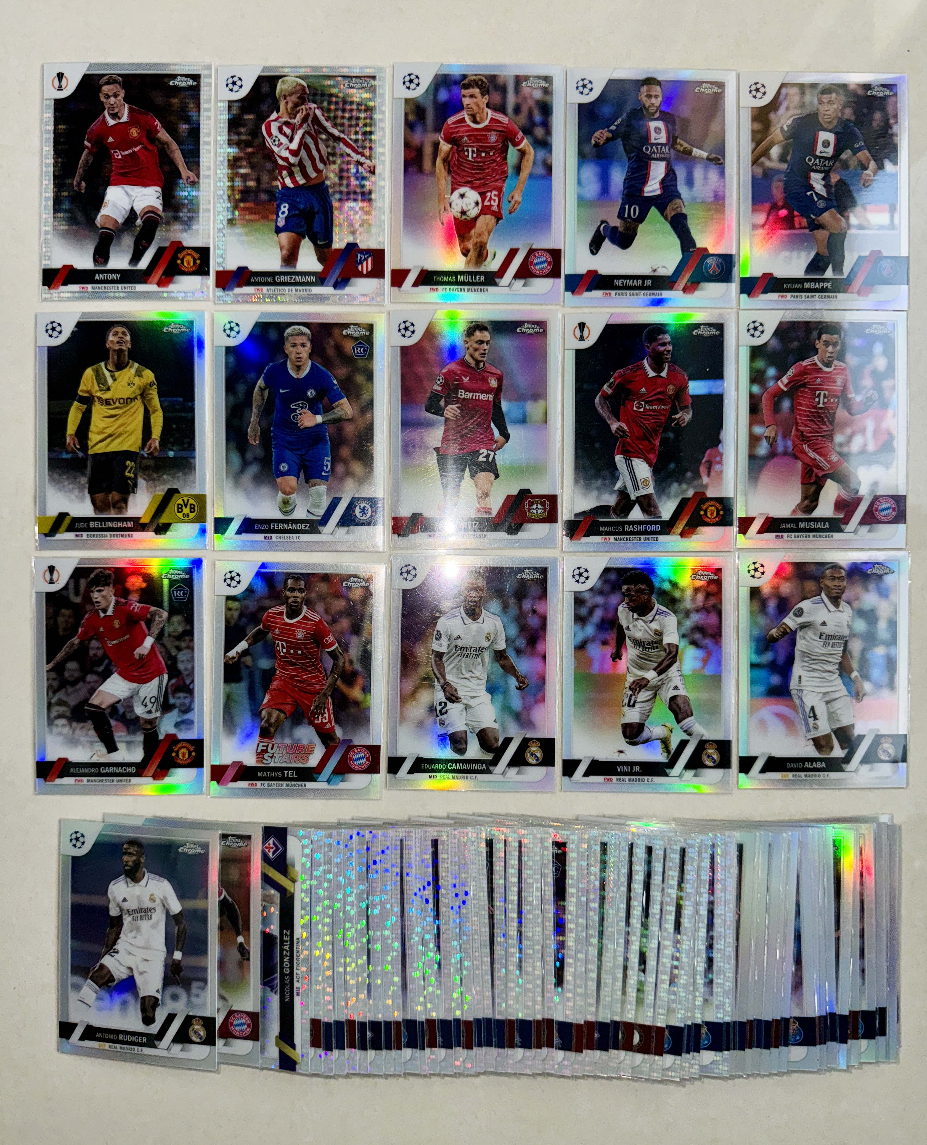 2023 Topps Chrome 欧战新秀 RC 大巴黎巴萨切尔西皇马拜仁尤文 穆勒 姆巴佩 姆巴佩 格列兹曼 安东尼 贝林厄姆 穆西亚拉 维尔茨 拉什福德 恩佐等银脉冲鱼鳞银折折射70张不保卡品