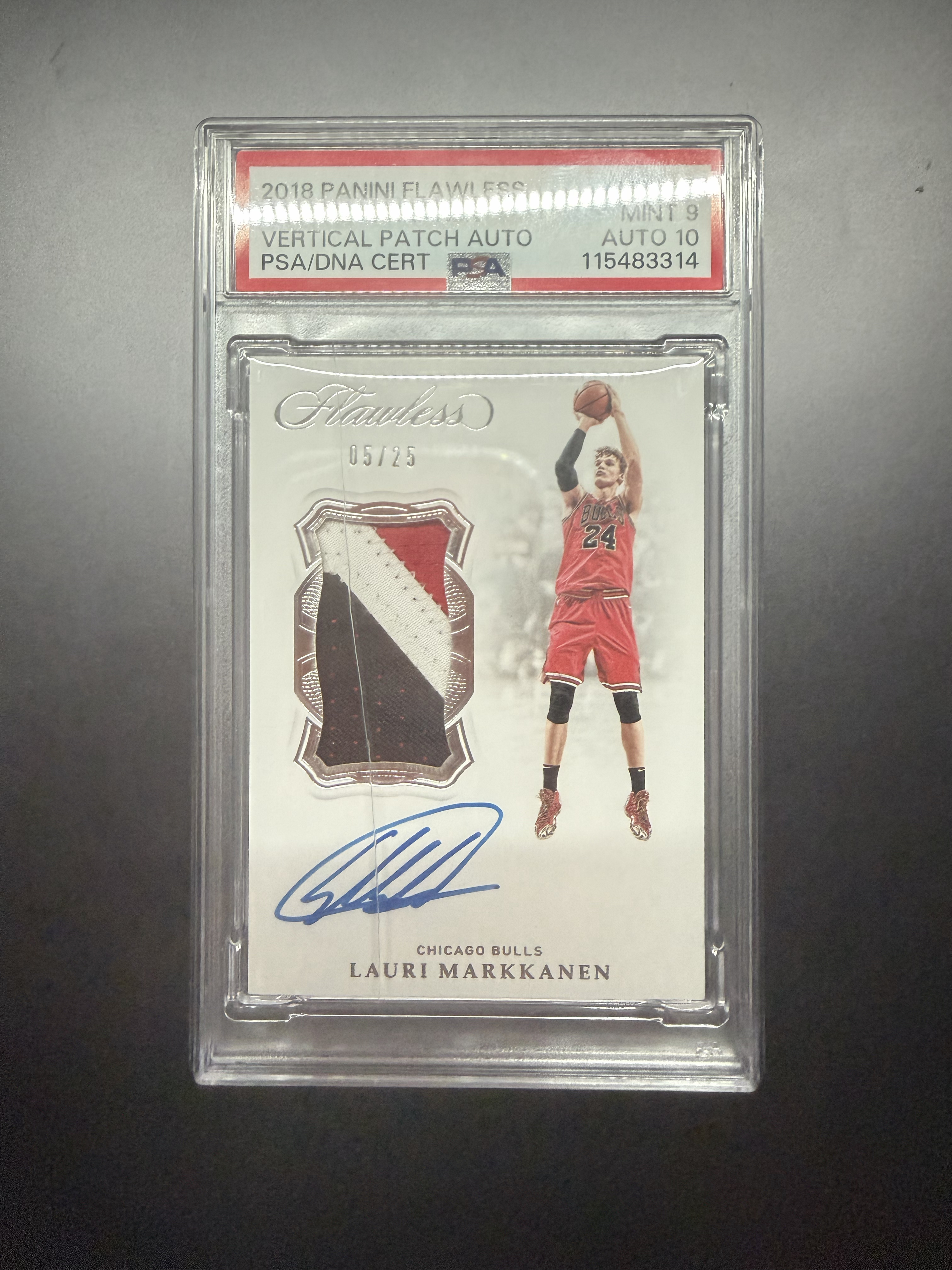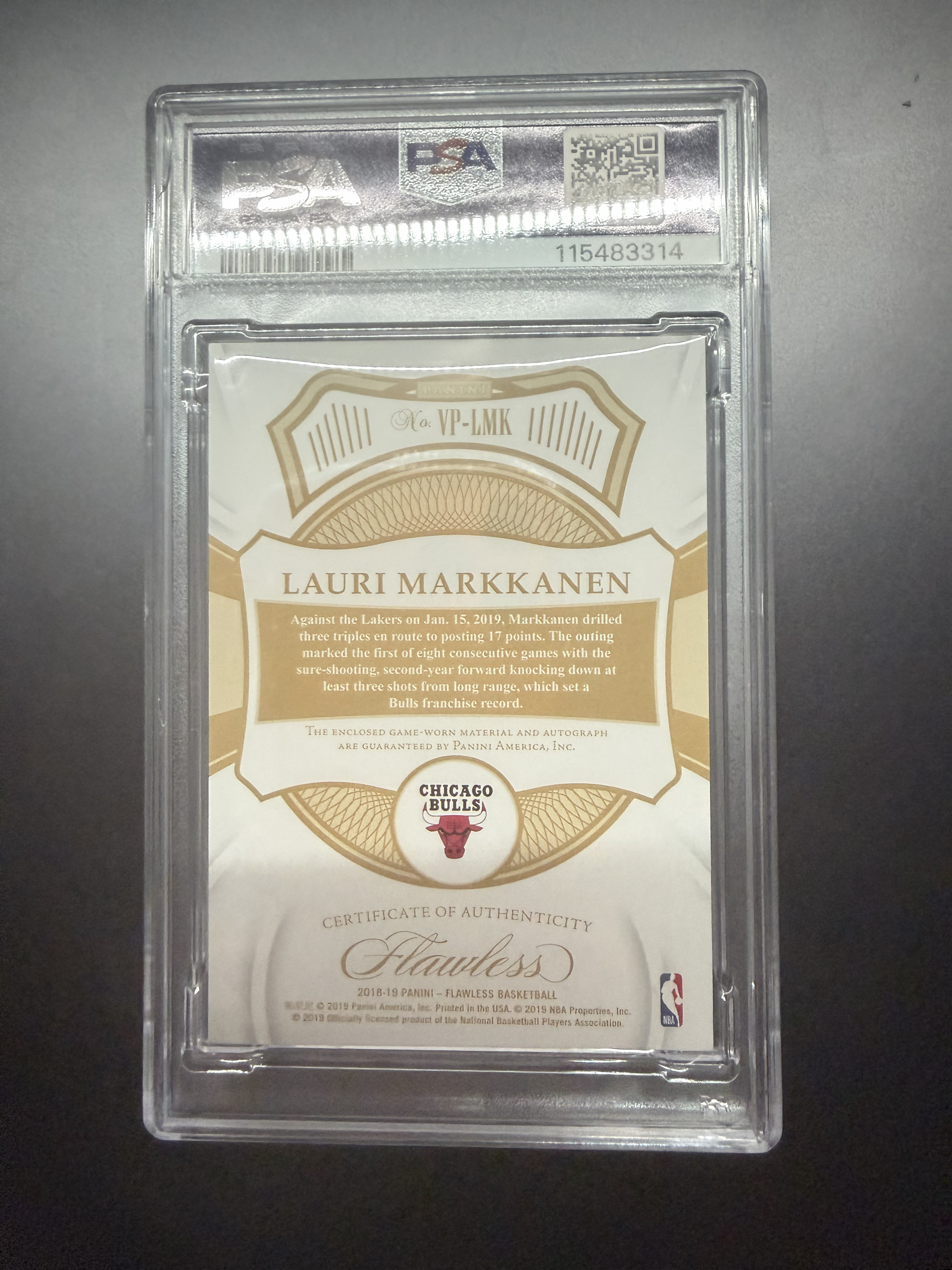 2018 Panini Flawless Lauri Markkanen 手提 劳里 马儿卡宁 新秀次年 VPA 签字 物料 PSA9 评级卡 签字10分 专收必备 卡壳有微裂如图 卡品完好