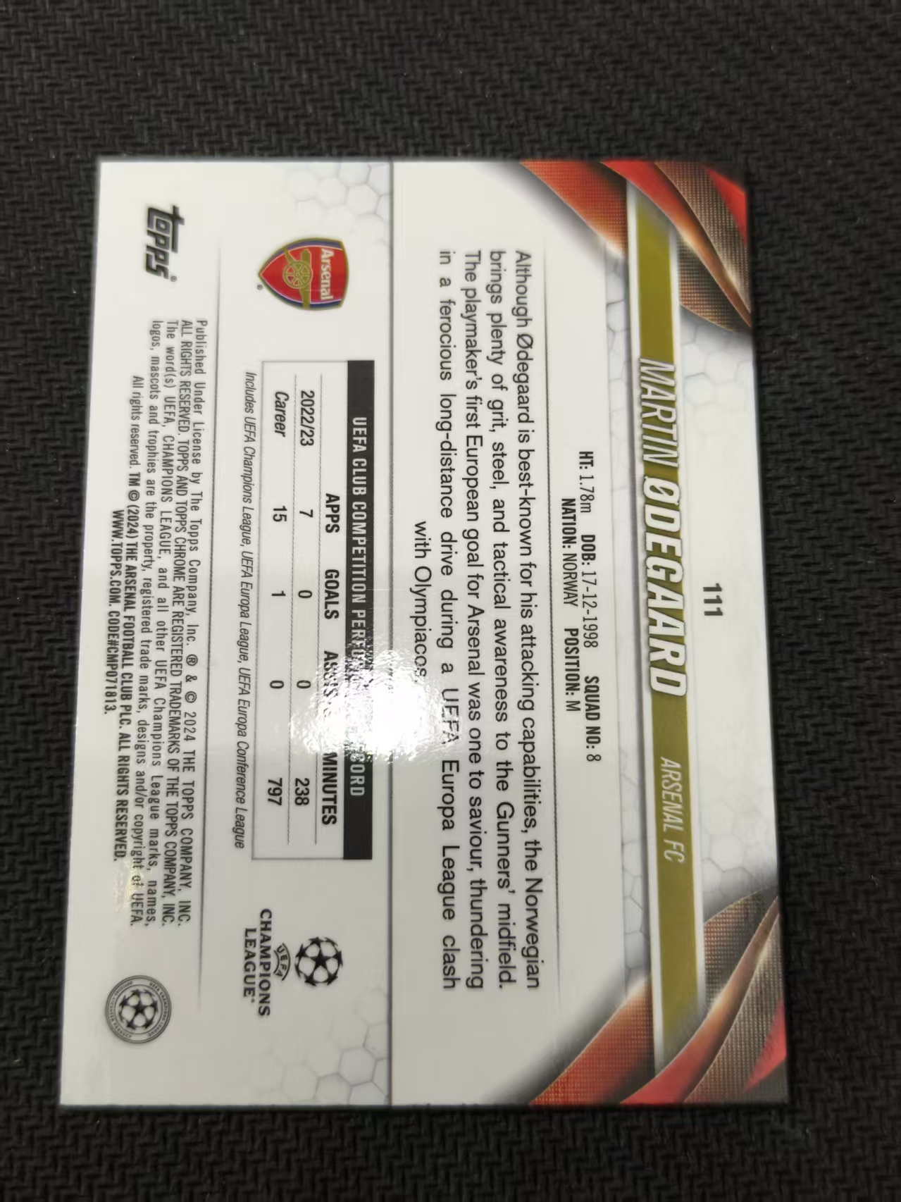 2024 Topps Chrome Martin Odegaard 欧冠 厄德高 99编 粉折 折射 #牛头