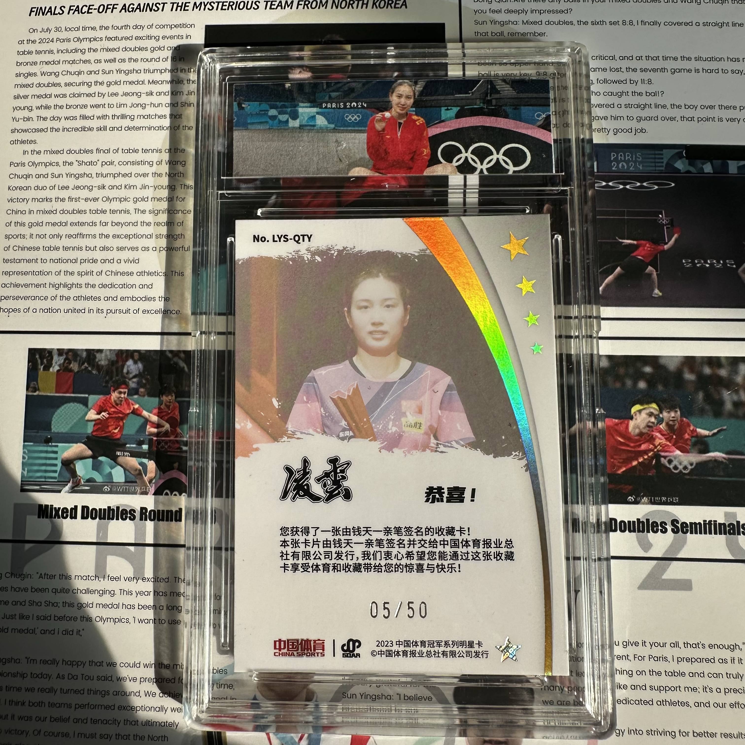 2023 奇卡 QICA 中国体育 凌云 钱天一 FS 新秀 未来之星 单人凌云签 完美签字 红碎冰折 50编 乒乓球 孙颖莎 王楚钦 林高远 林诗栋 队友 卡品如图 不保卡品 非 评级 带卡砖