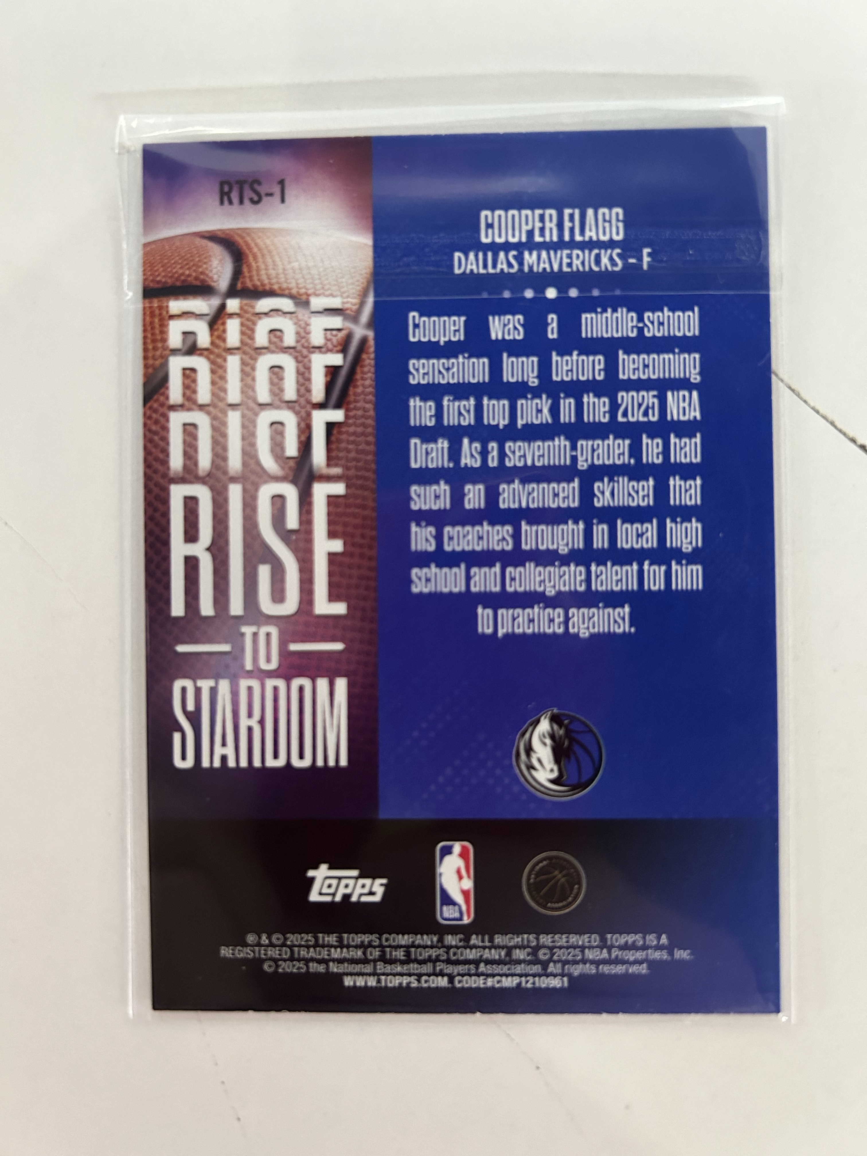 2025 Topps Flagship Cooper Flagg RC 库珀 弗拉格 rise to staroom特卡 新秀 独行侠 卡品如图