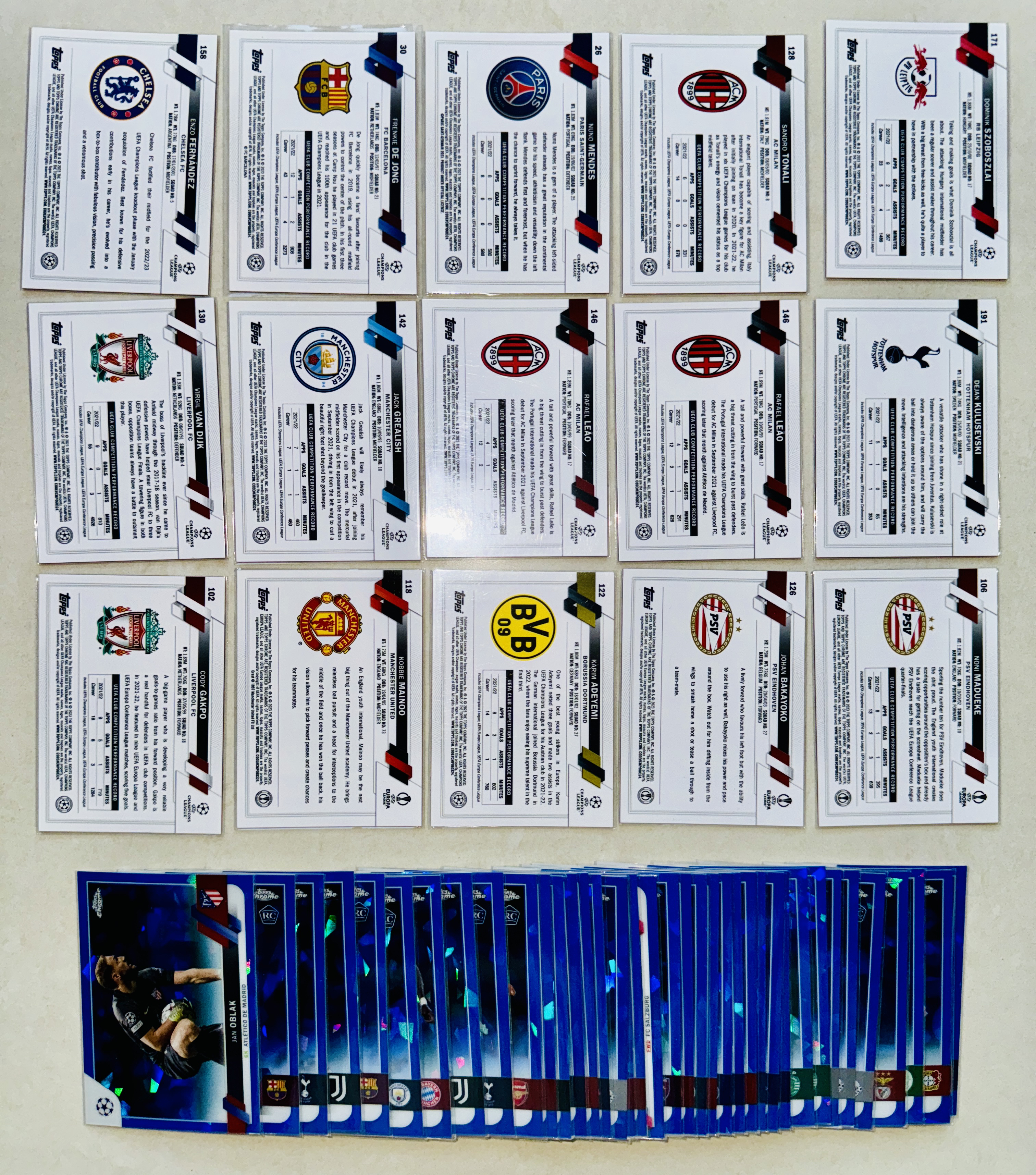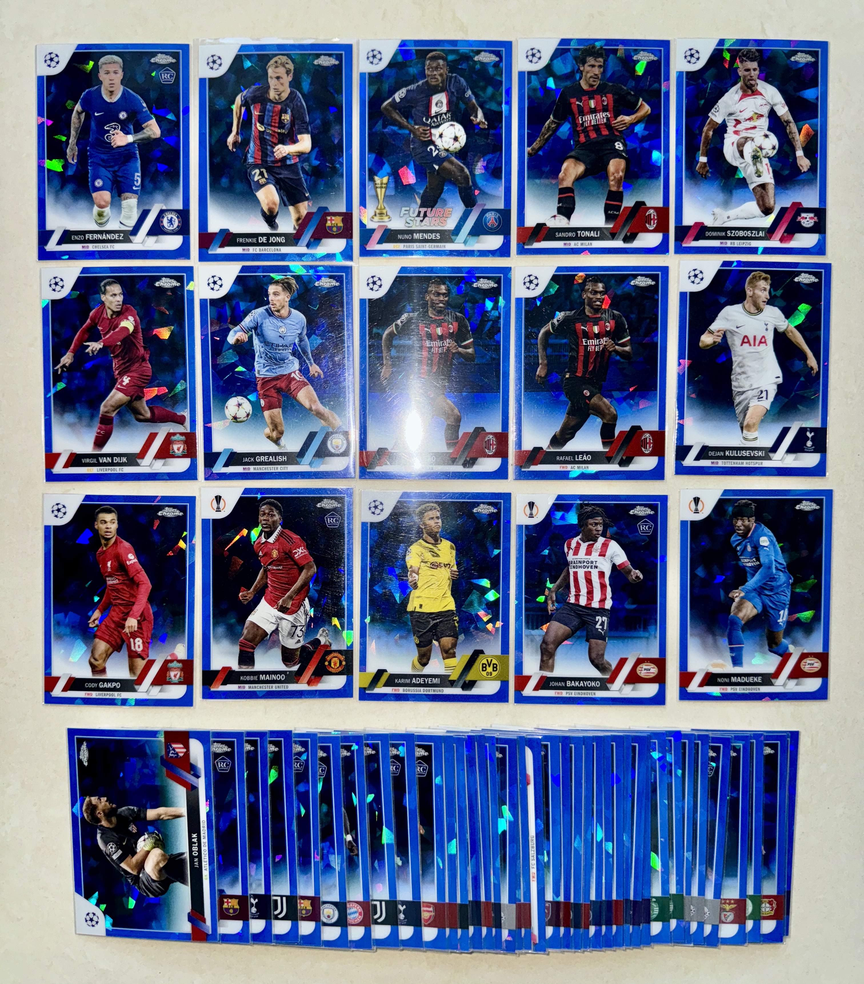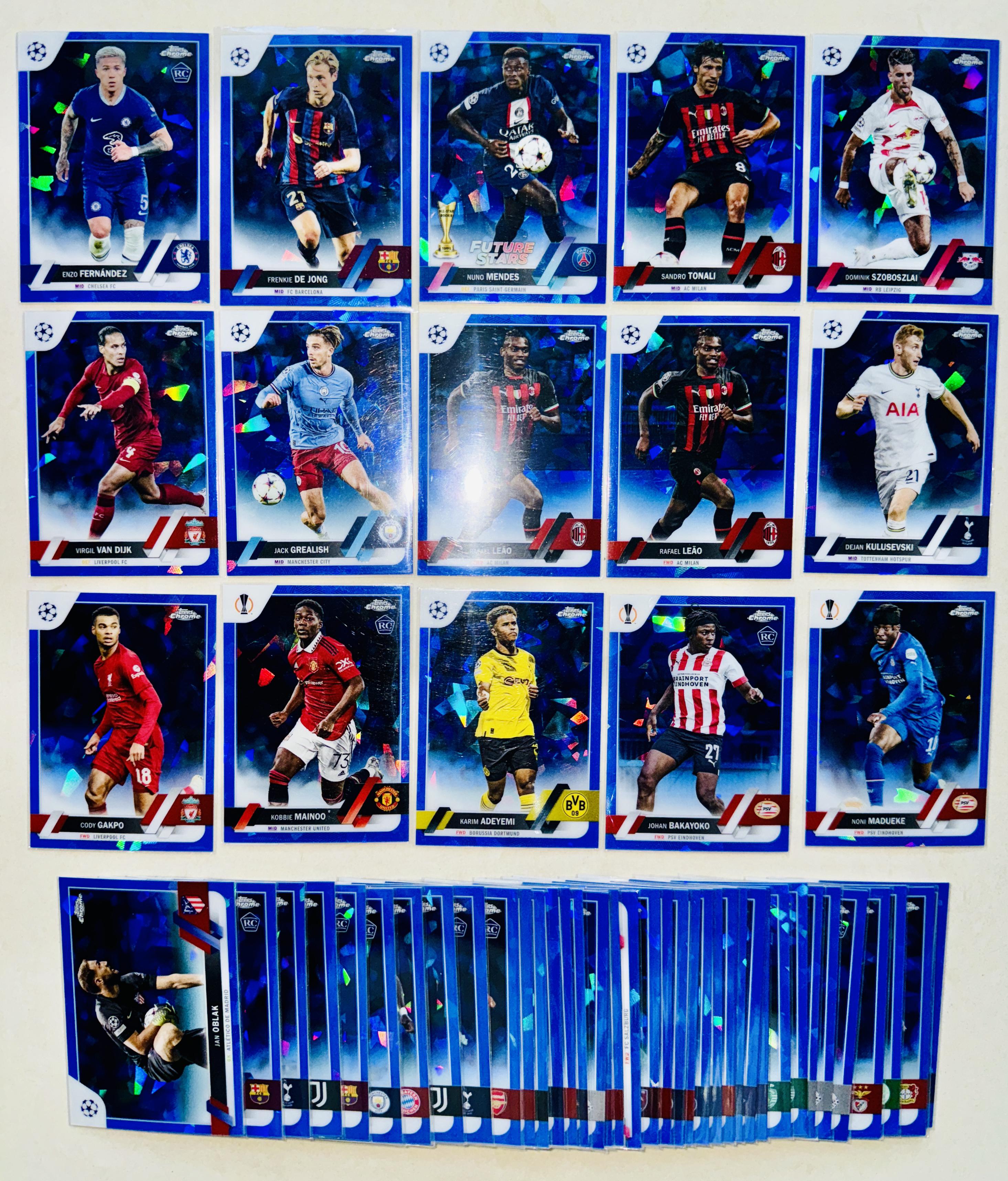2023 Topps Chrome 蓝宝石盒 蓝碎冰 RC 巴萨大巴黎米兰多特利物浦切尔西阿森纳尤文 恩佐 德容 门德斯 索博 梅努 范戴克 格拉利什 莱奥 加克波等50张以上保40个不同球员不保卡品