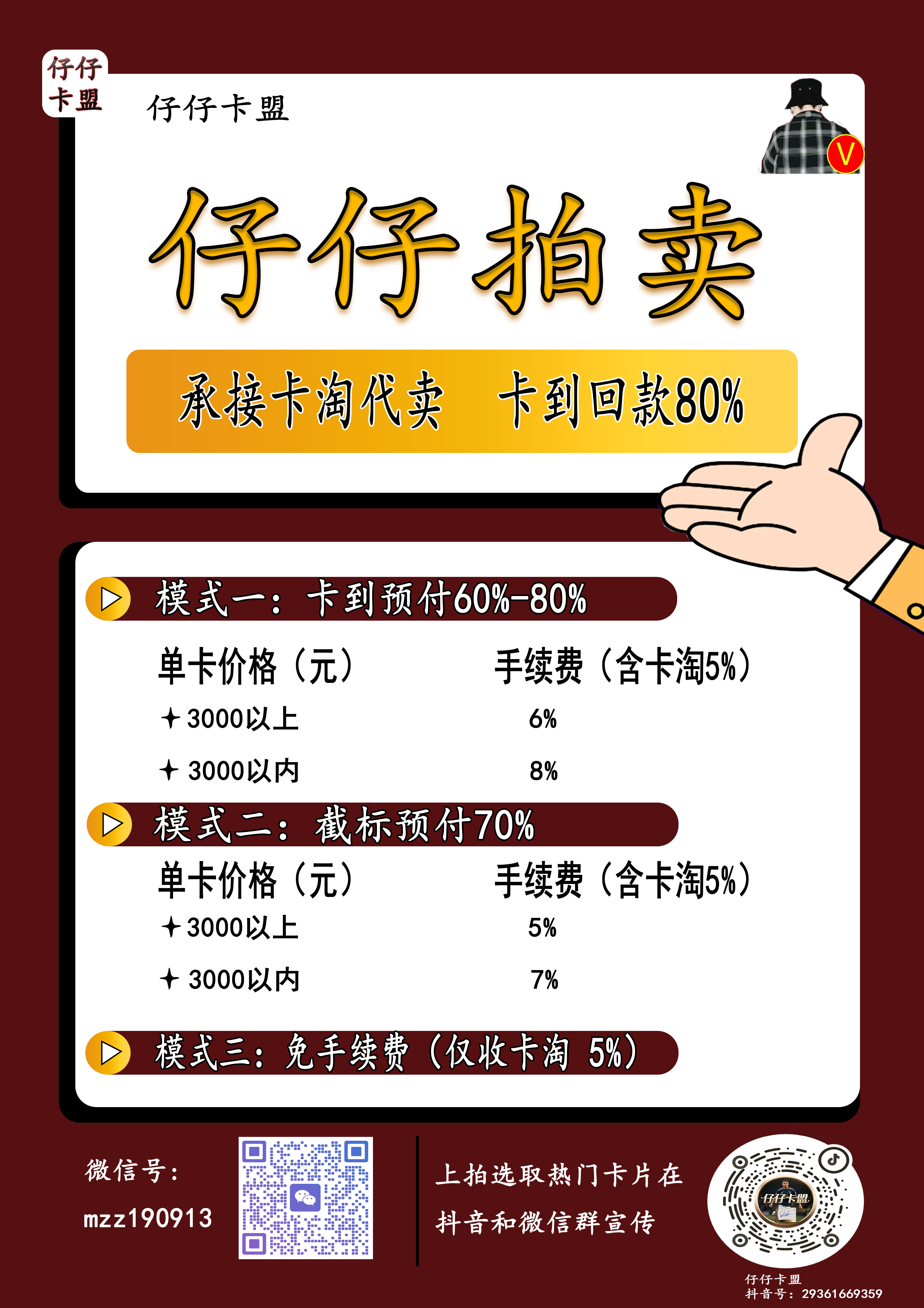 仔仔球星卡社免费接拍卖,急速上拍,微信【mzz190913】,承接一切代卖,欢迎加V。
