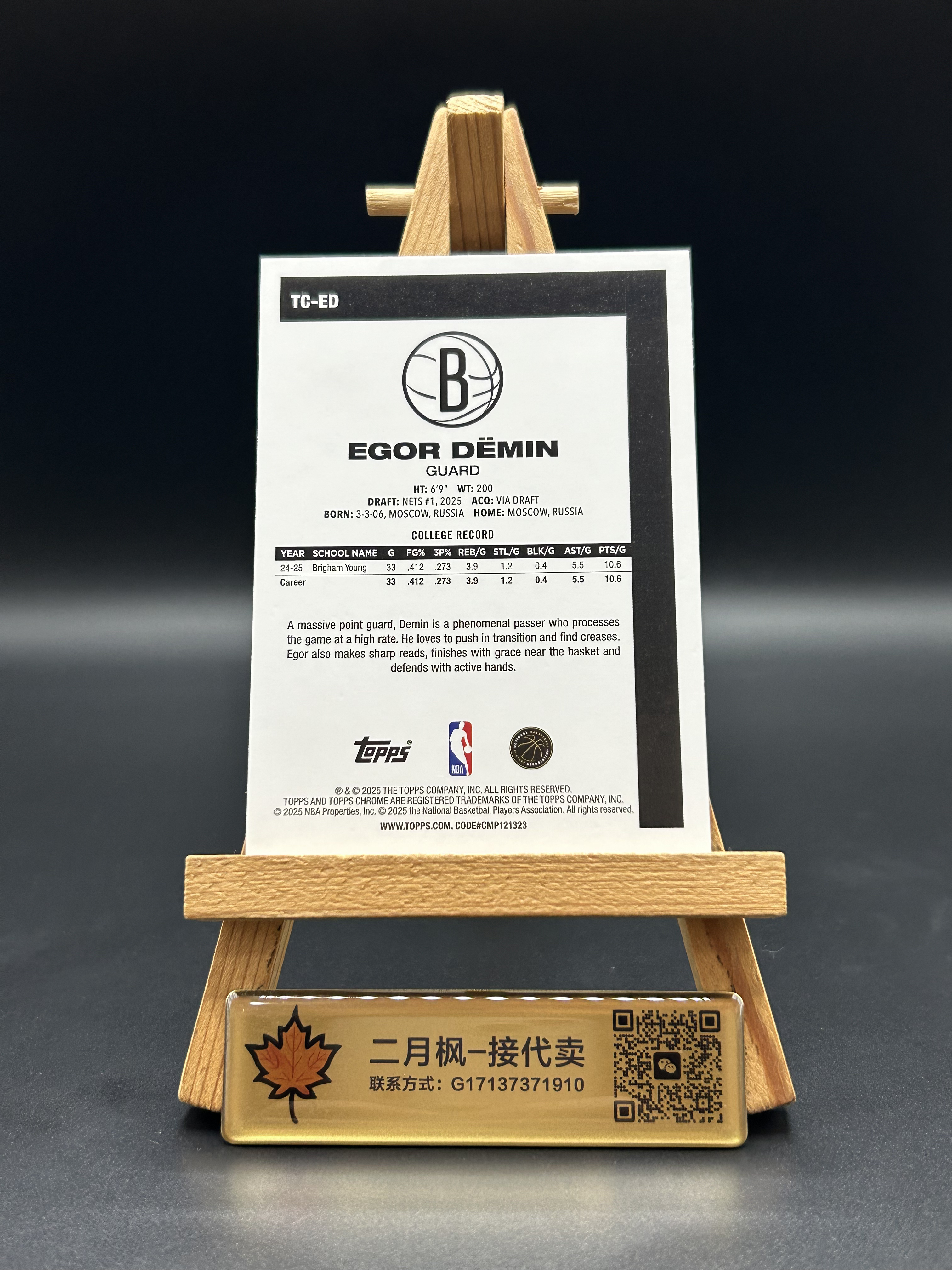 【二月枫-承接代卖】2025 Topps Chrome 篮球TC 篮网 Egor Demin 叶戈尔 杰明 新秀RC 折射 青Mojo折 青迷宫折 199编 专收凑套必备 #陈彬