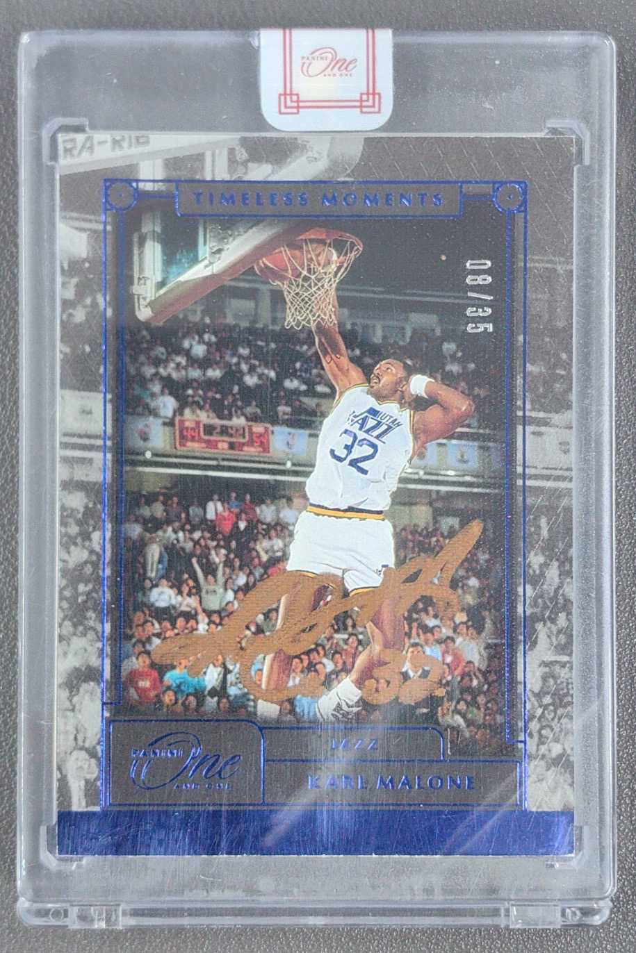 2020-21 Panini One and One Karl Malone 卡尔 马龙 邮差 08/35编 签字 卡签 背号签 时刻 OAO 爵士 篮球 瑕疵看图 原封砖